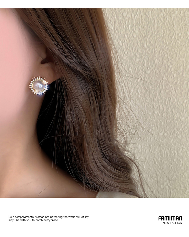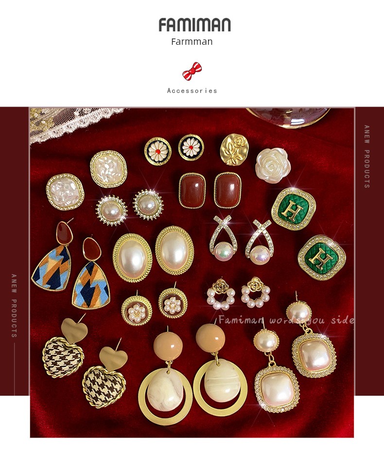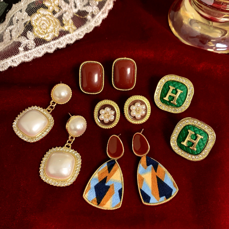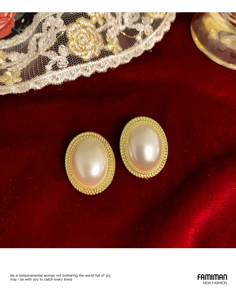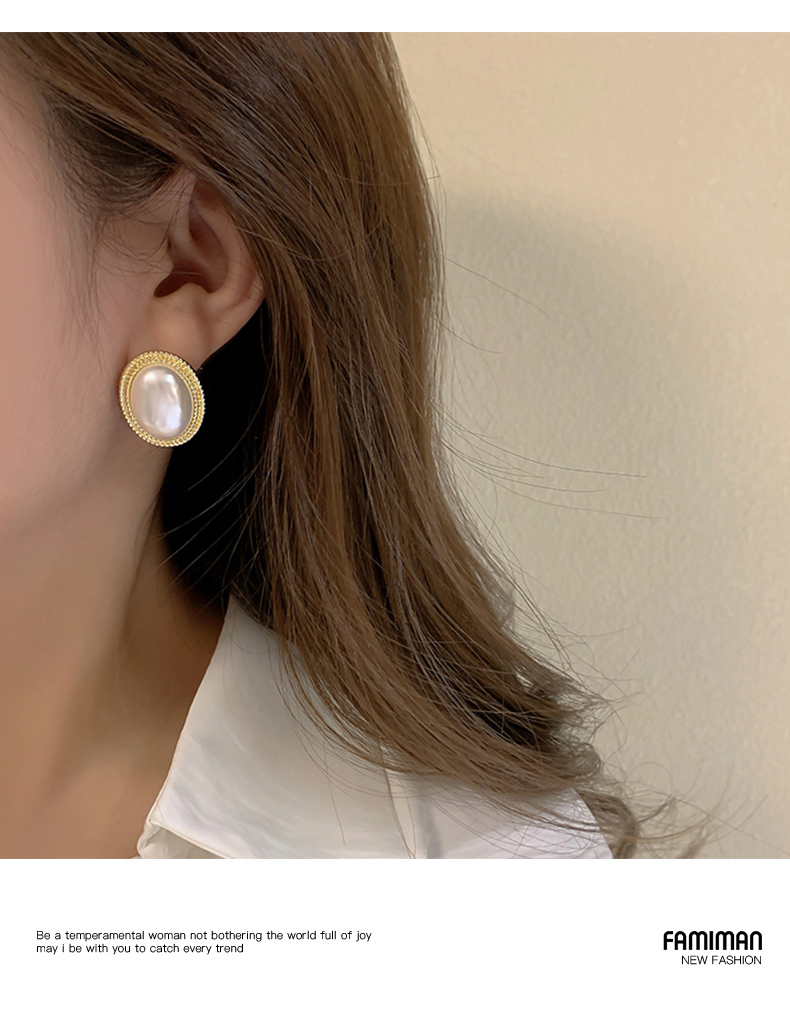 Retro Hong Kong Style Hepburn Earrings for Women Fancy Elegant Palace Style Baroque Pearl Earrings French Minority Earrings