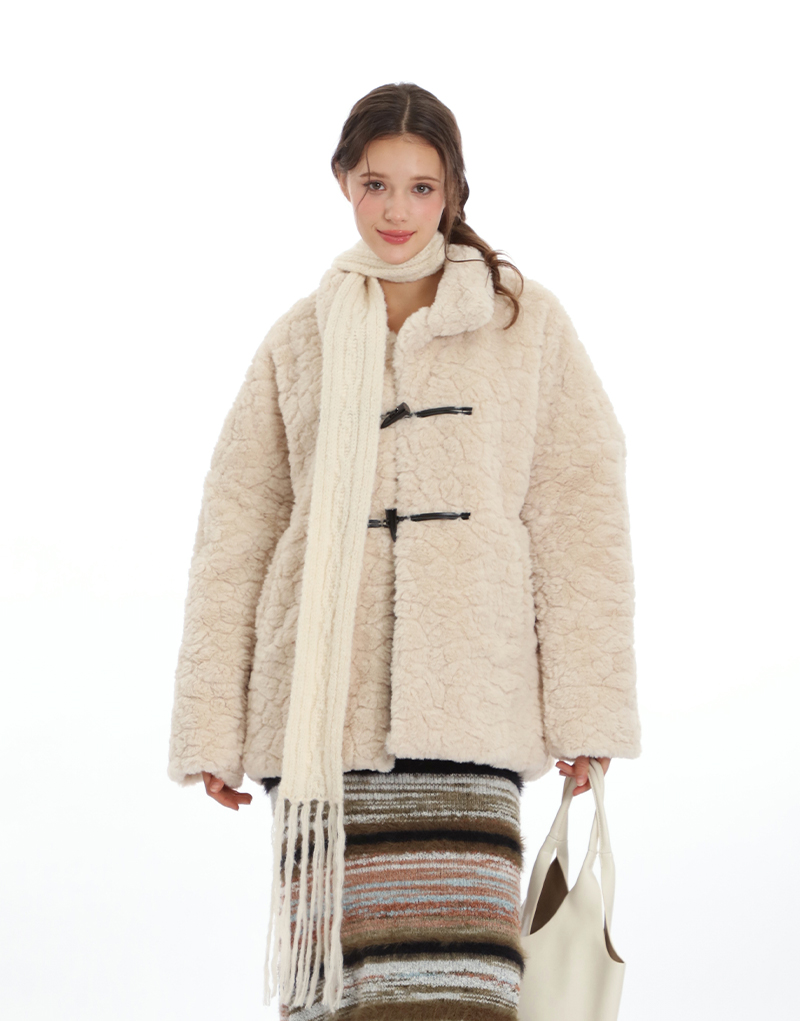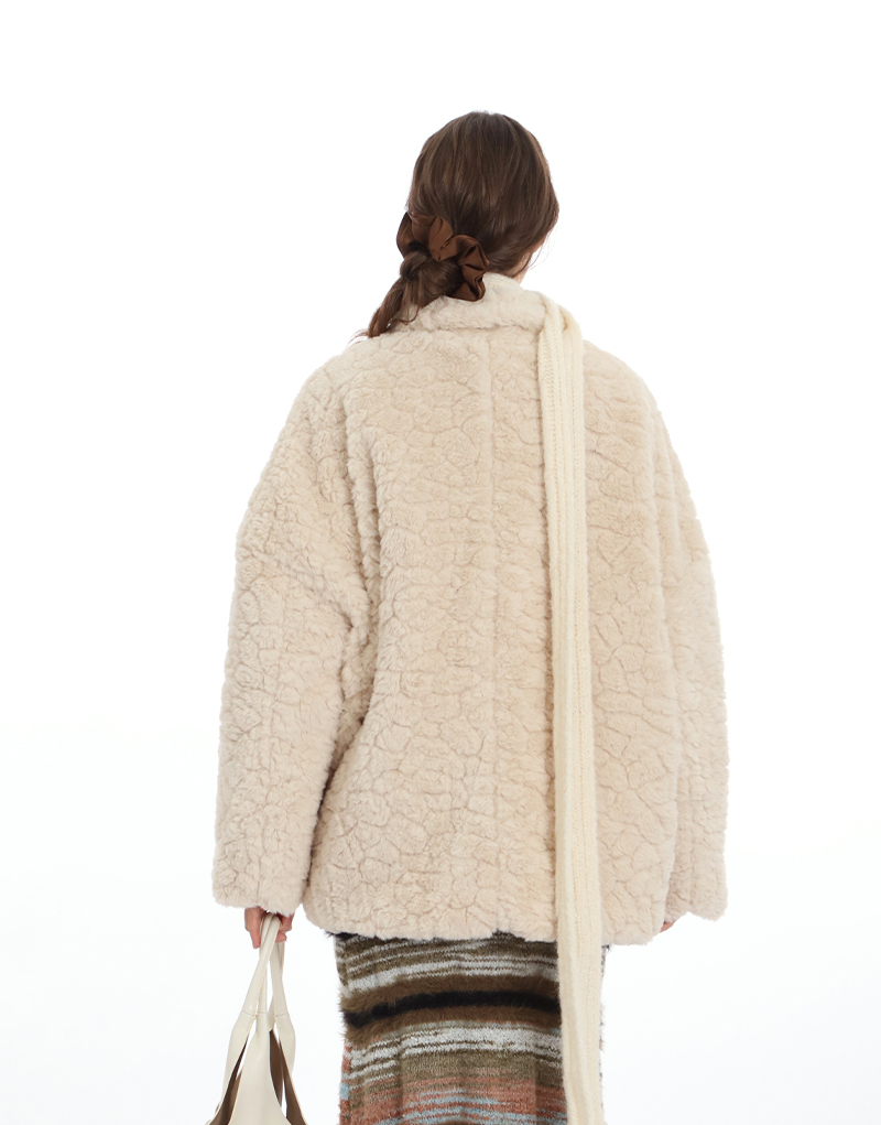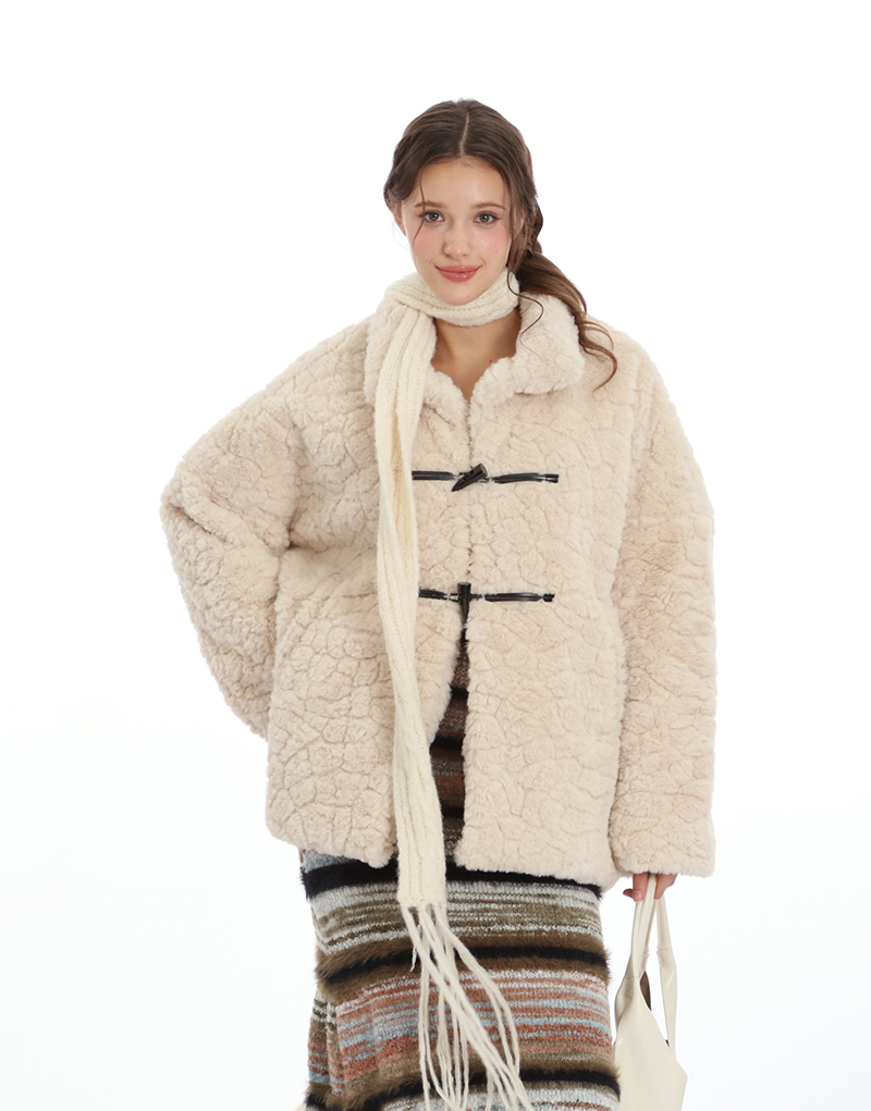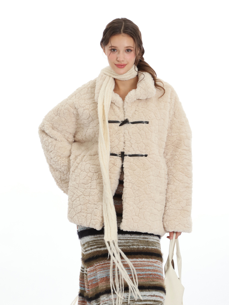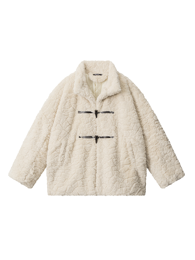 Retro Horn Button Stand Collar Faux Lamb Fur Coat Female 2025 New Arrival Elegant All-Matching Thick Warm Cotton Padded Coat