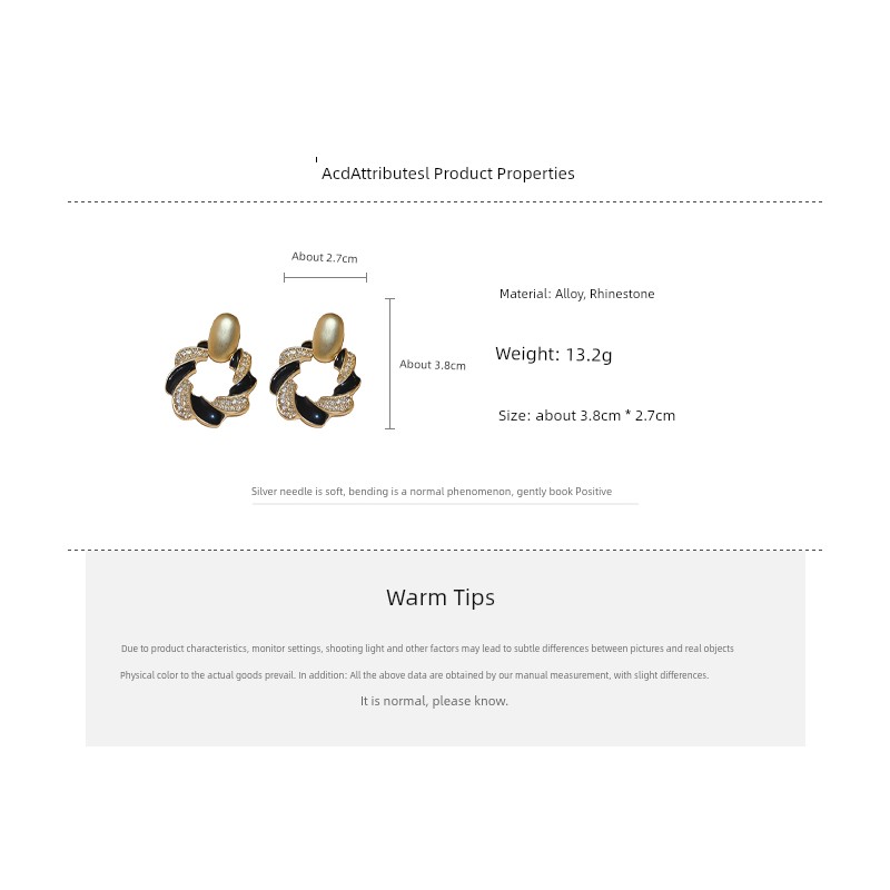 Retro Rhinestone round Spiral Stud Earrings Accessible Luxury Fancy Elegant Generous Earrings Fashion All-Match Delicate Earrings Women