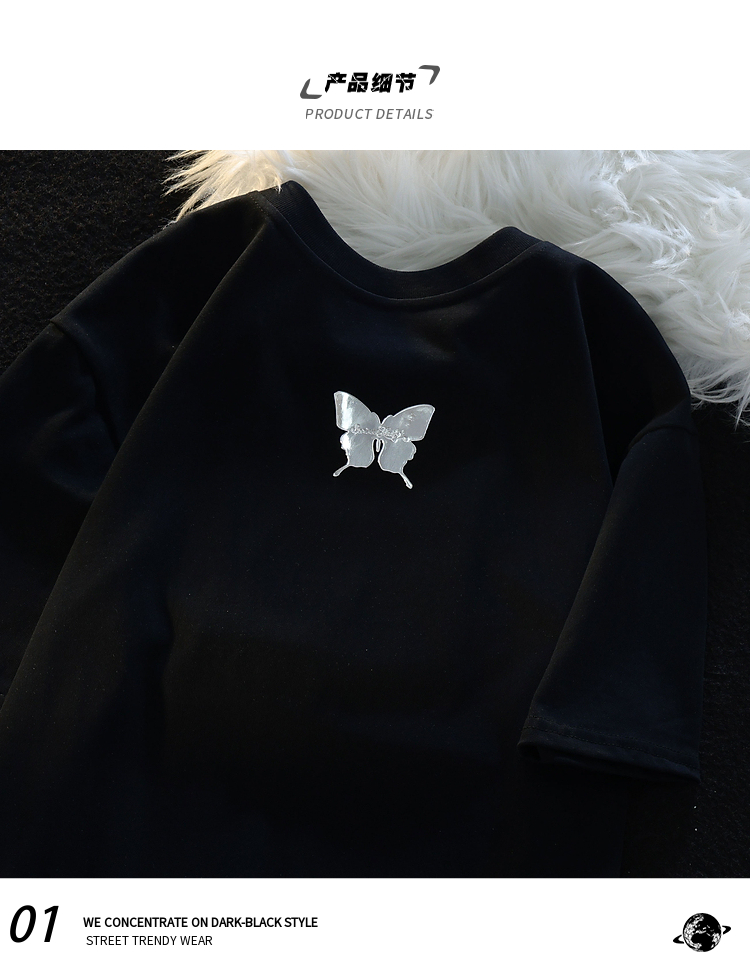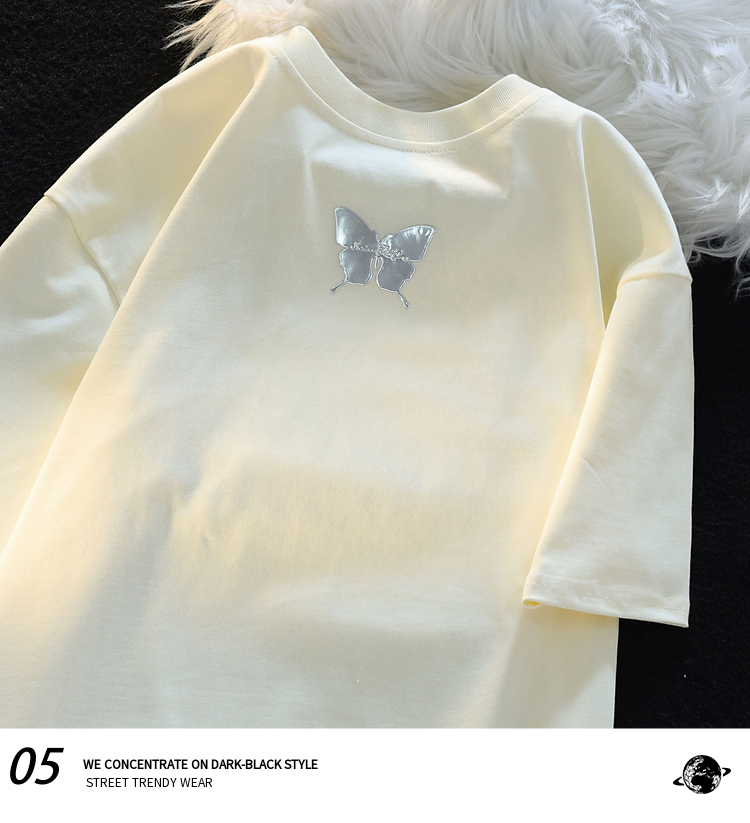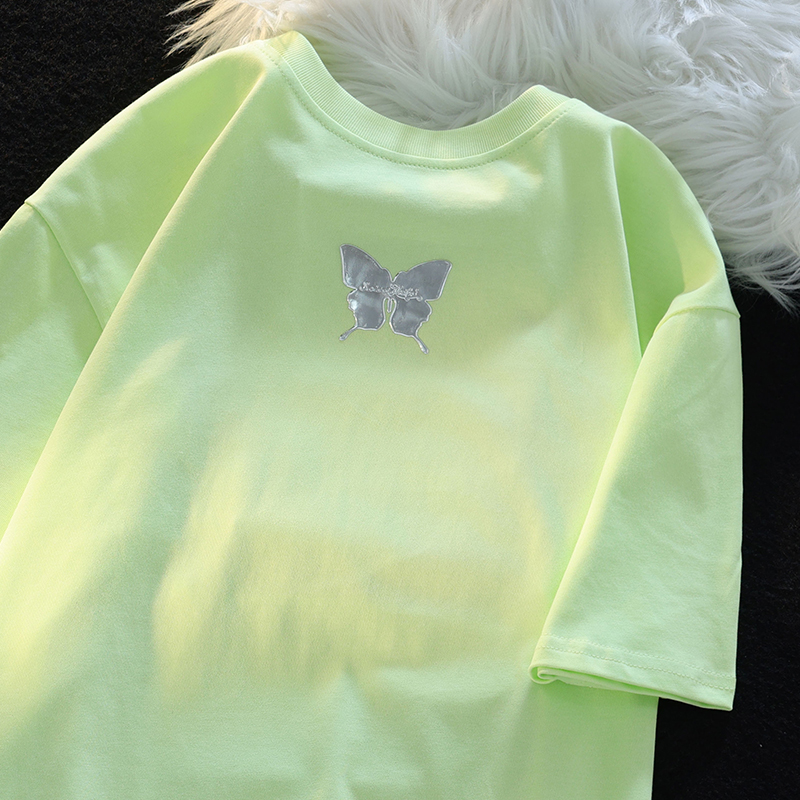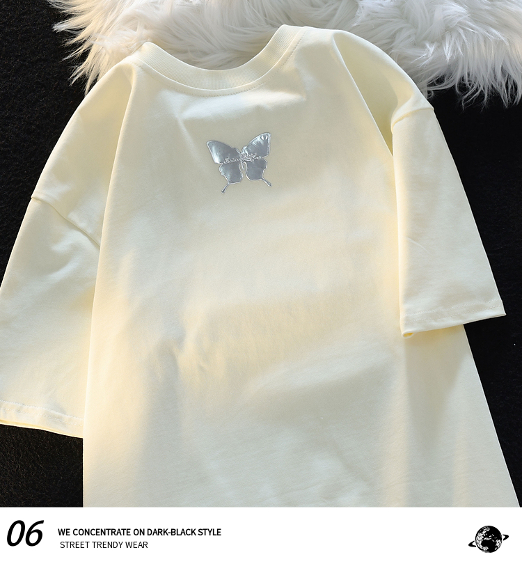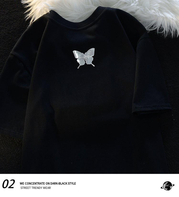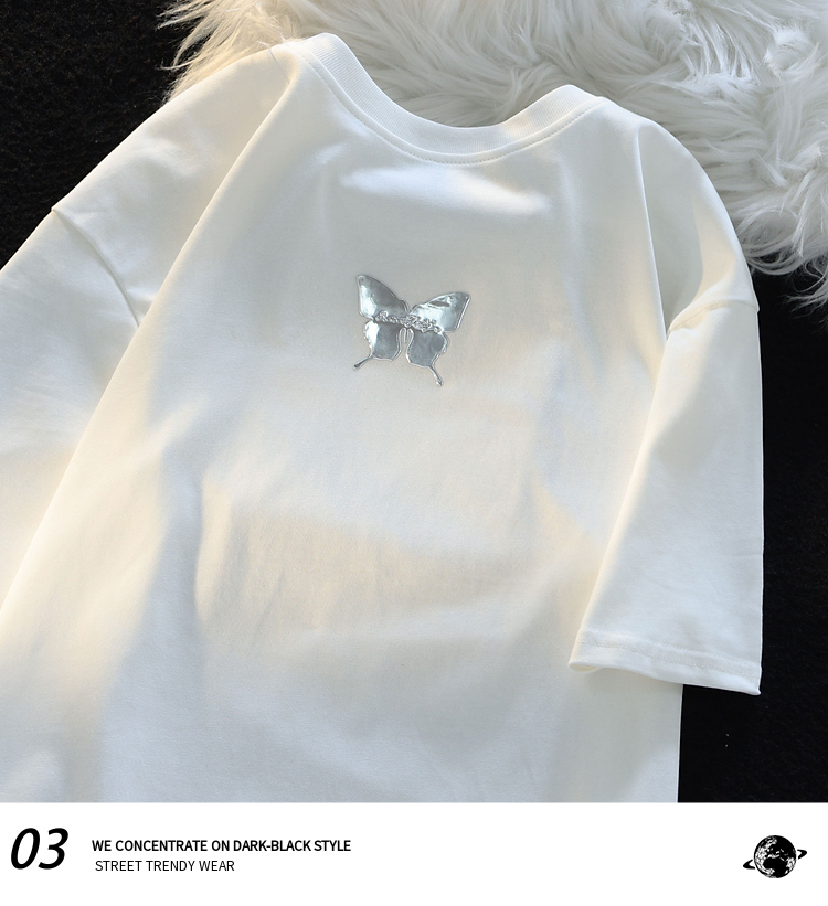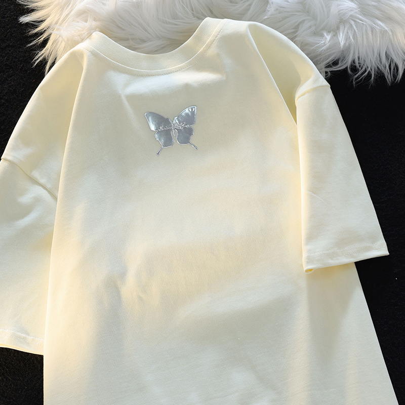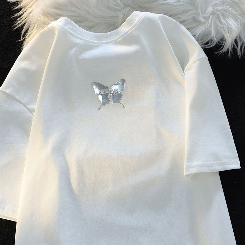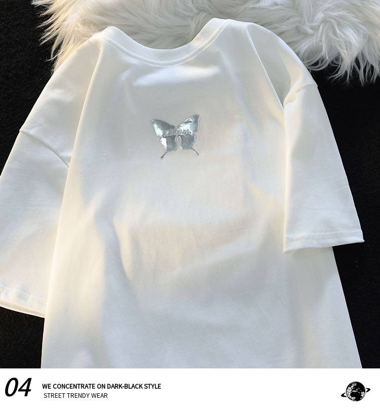 Retro Three-Dimensional Butterfly Casual round Neck Short Sleeves T-shirt