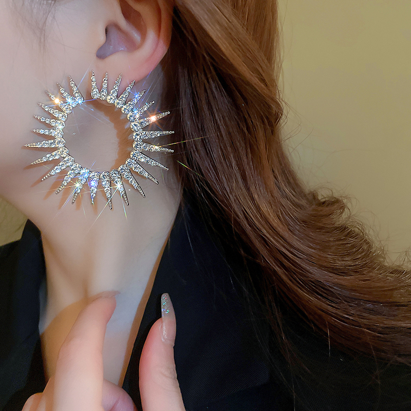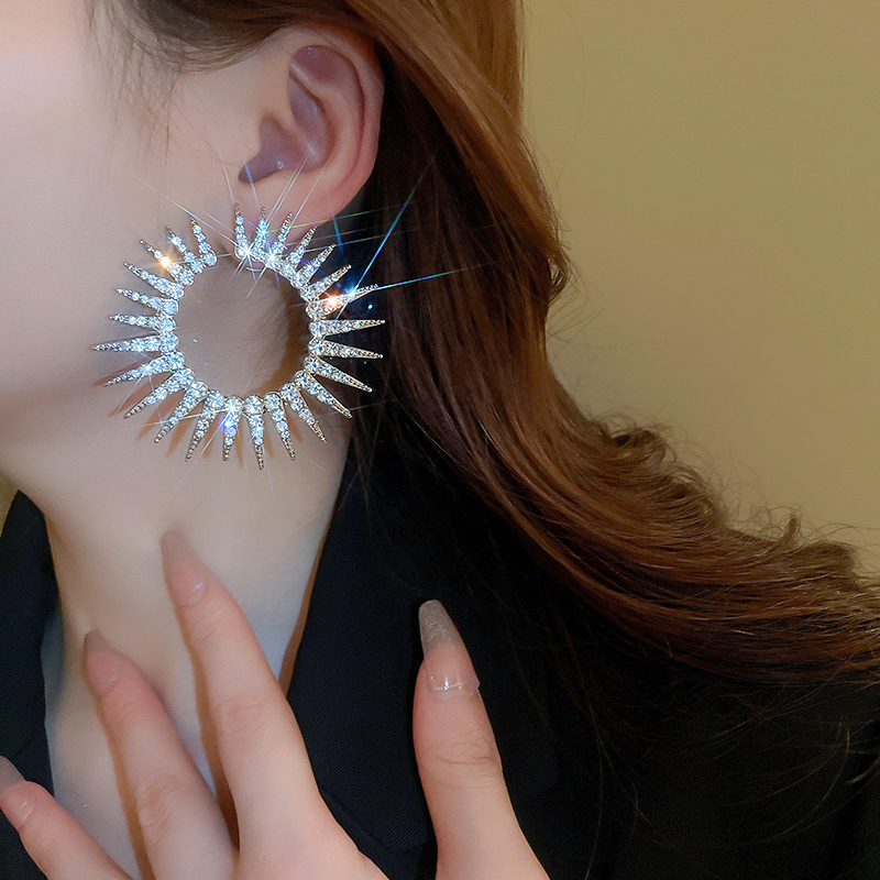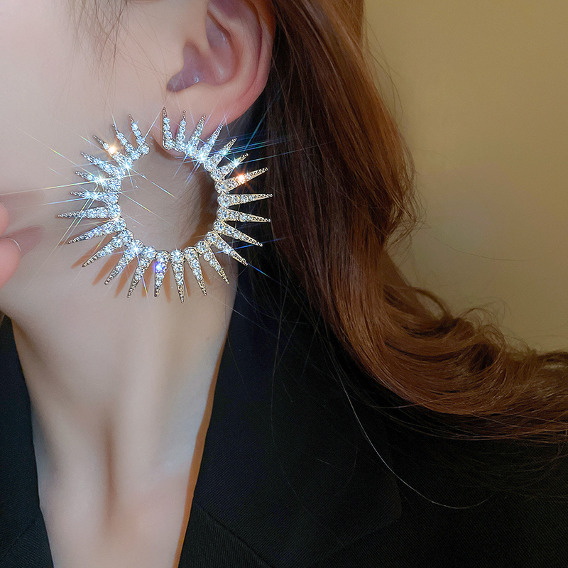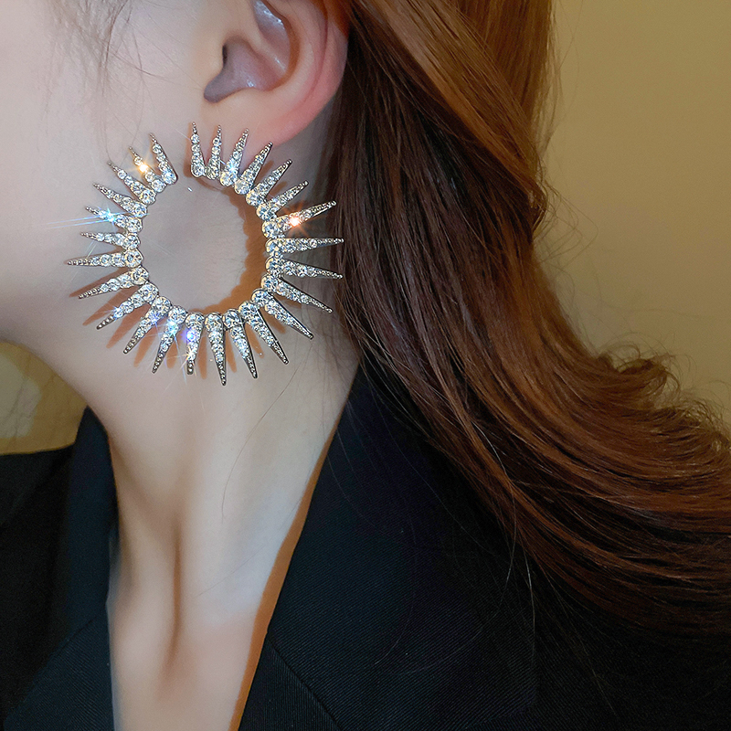 Rhinestone Big Ear Stud Women's Niche Design Unique Earrings Exaggerated Fancy 2025 New Arrival Best Selling Graceful Earrings