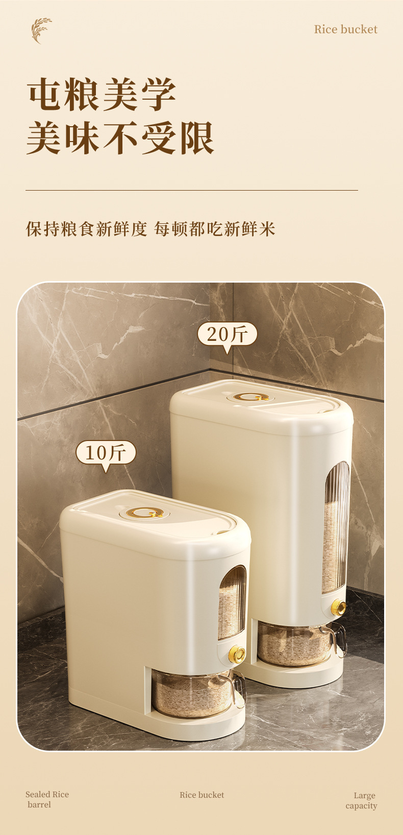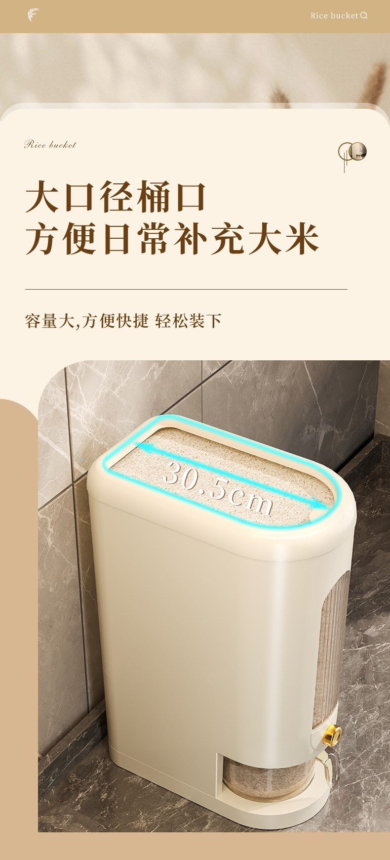 Rice Bucket Household Insect-Proof Moisture-Proof Sealed Canned Rice Pot Rice Storage Box Rice Storage Box Food Grade Barrel Flour 10.00kg