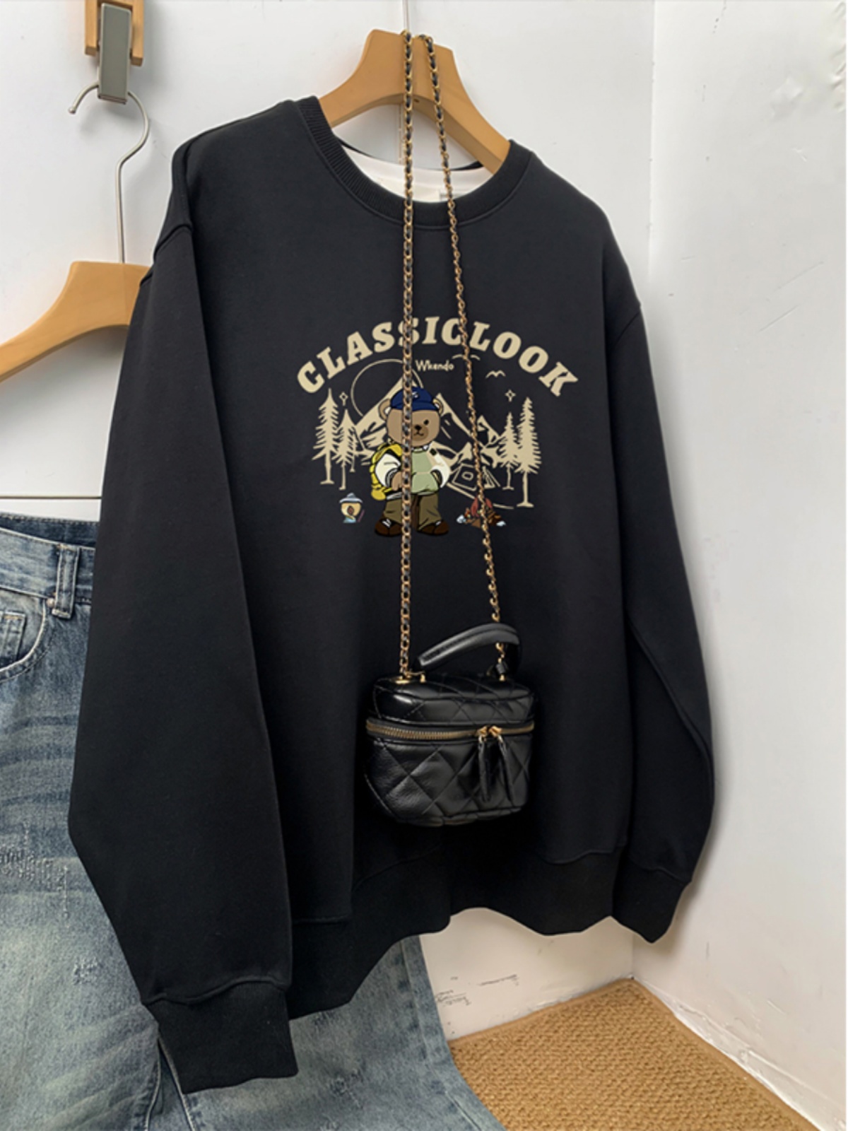 round Neck Plus Size Fall and Winter Fleece-lined Lazy Style Sweatshirt Female 2025 New Arrival Plus Size Ladies American Retro Small Coat Tide