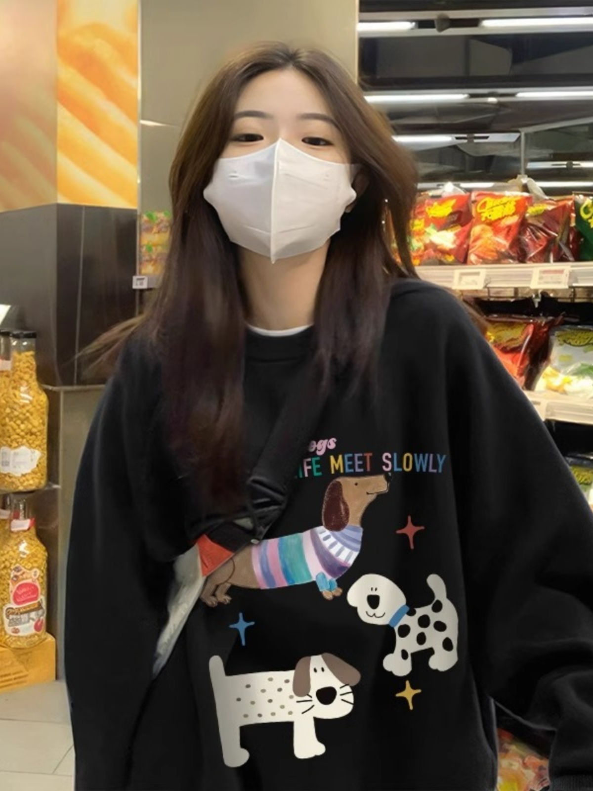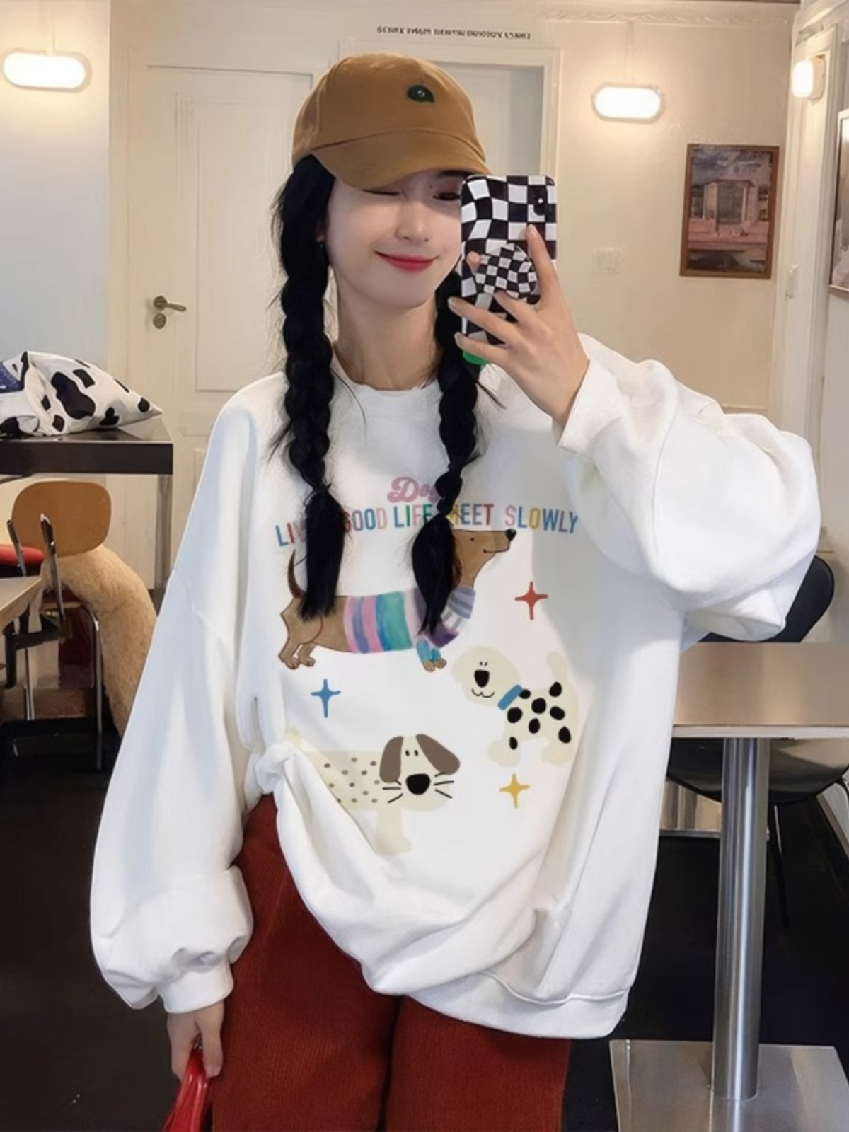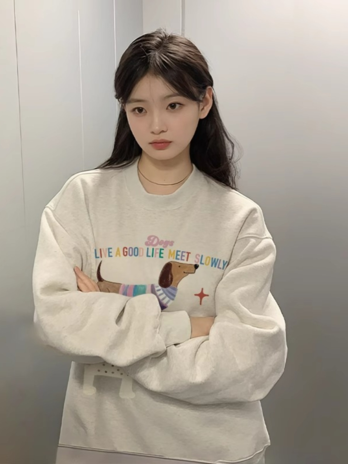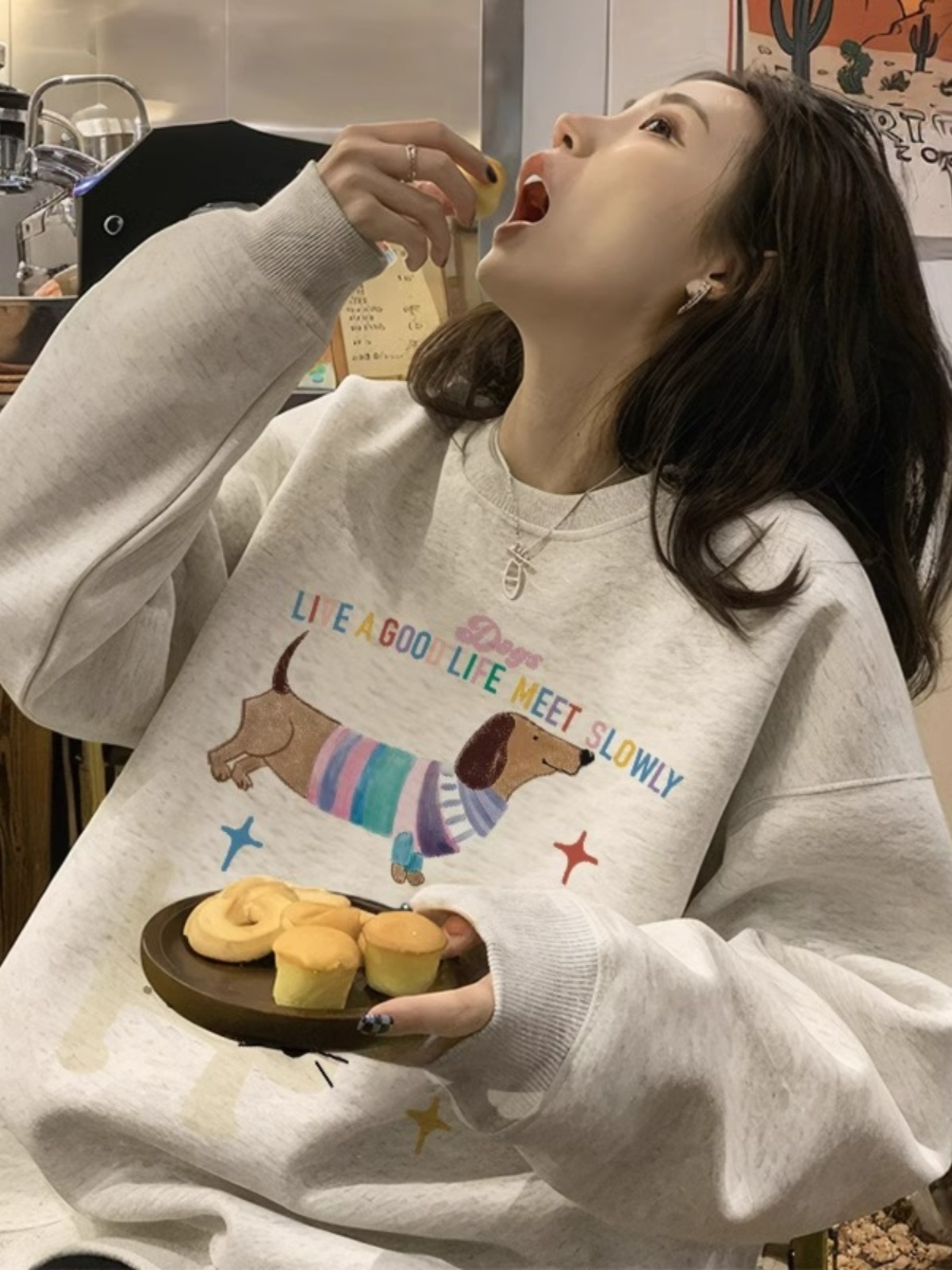 round Neck Sweatshirt Women 2025 New Arrival Best Selling Spring and Autumn Light Gray Long Sleeves Outwear Spring and Autumn Velvet Padded Thickened Top