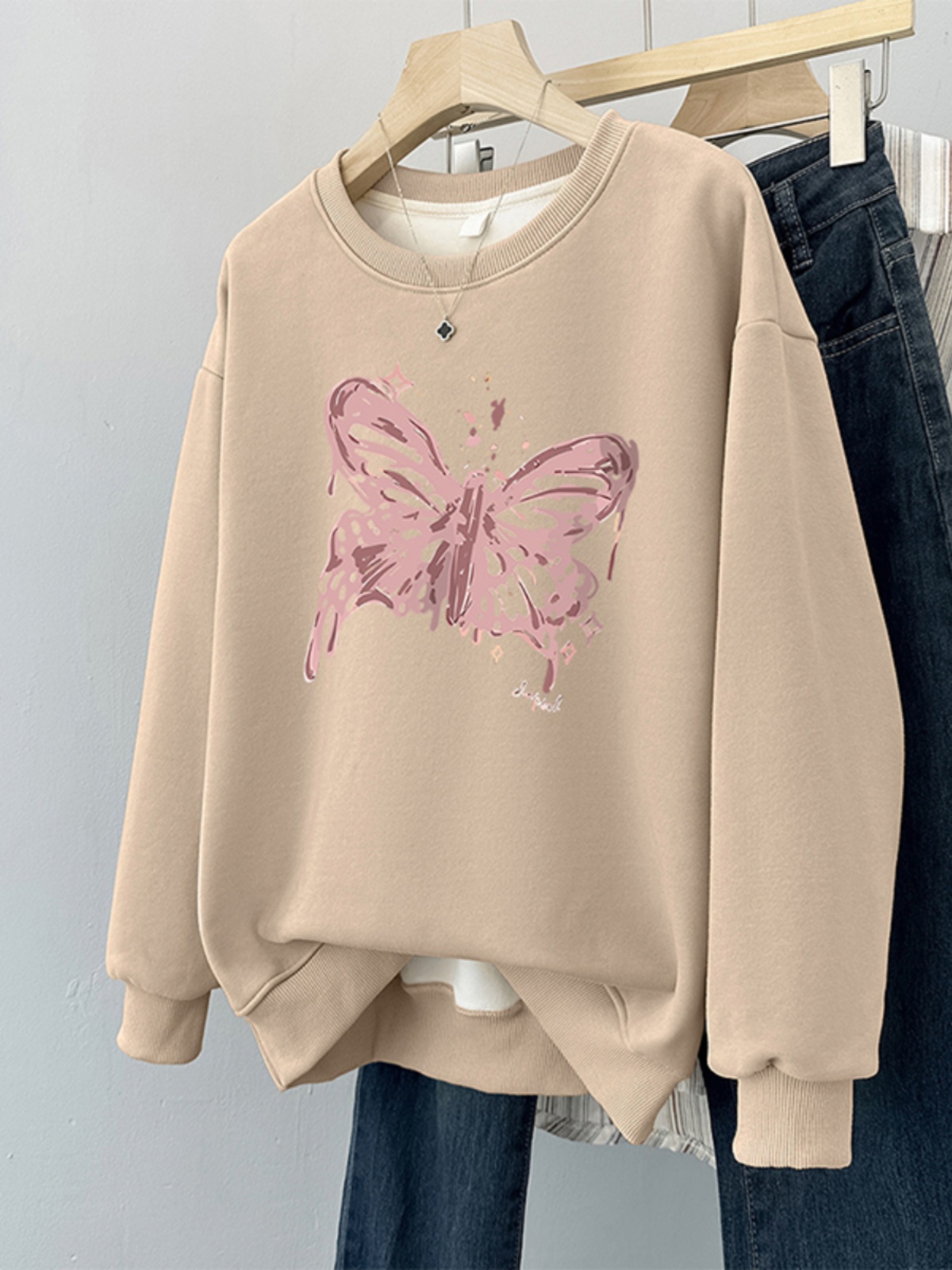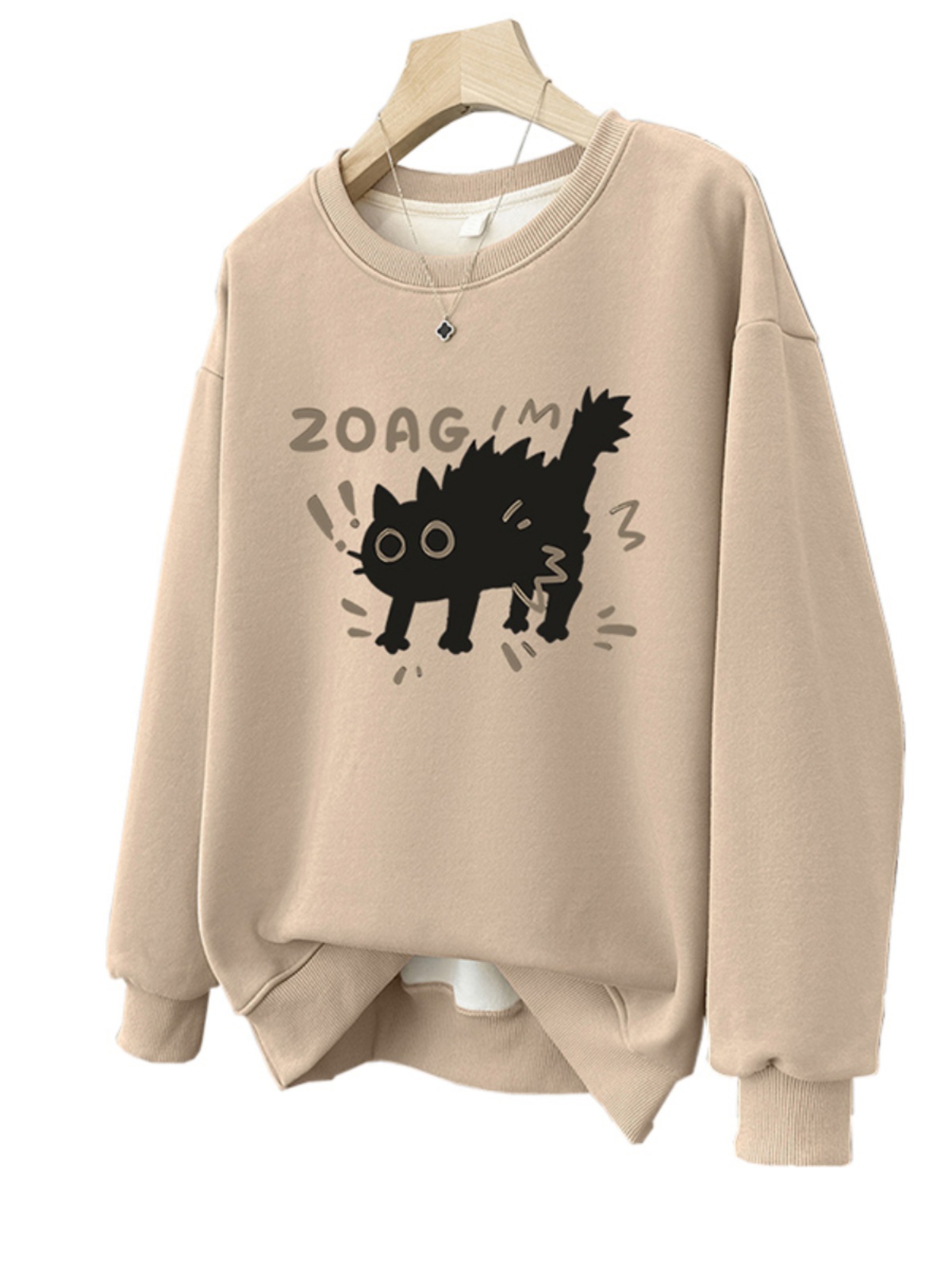 round Neck Sweatshirt Women 2025 New Arrival Fall and Winter Niche Design Retro Plus Size Loose Oversize Fleece Padded Coat