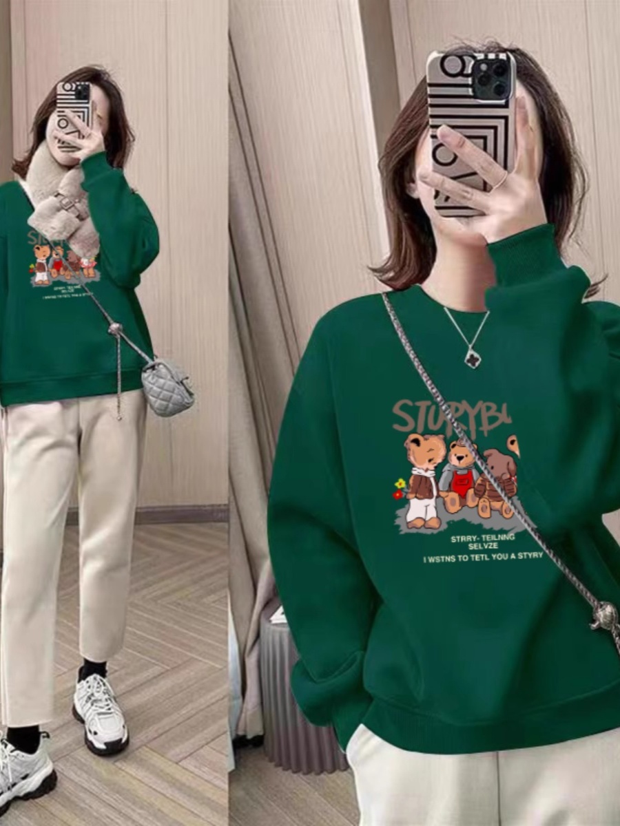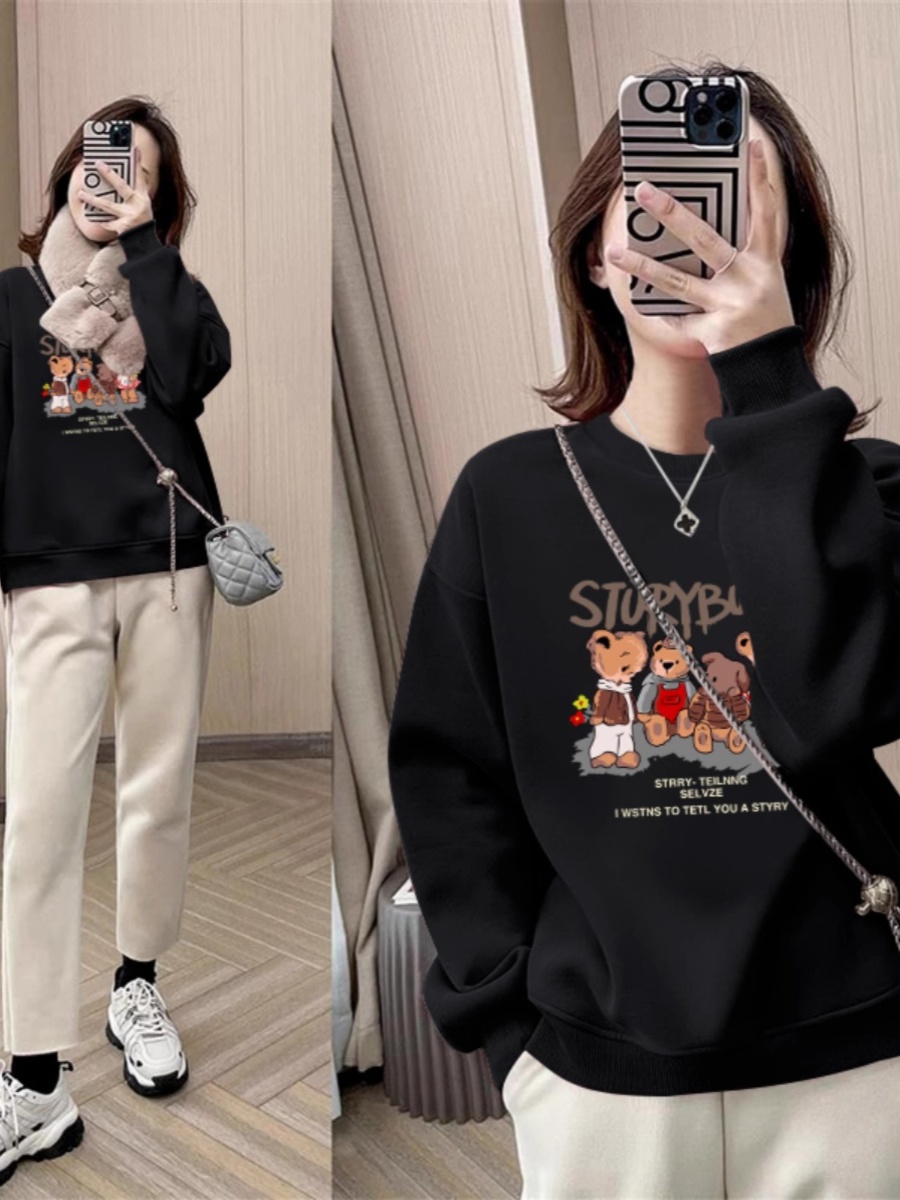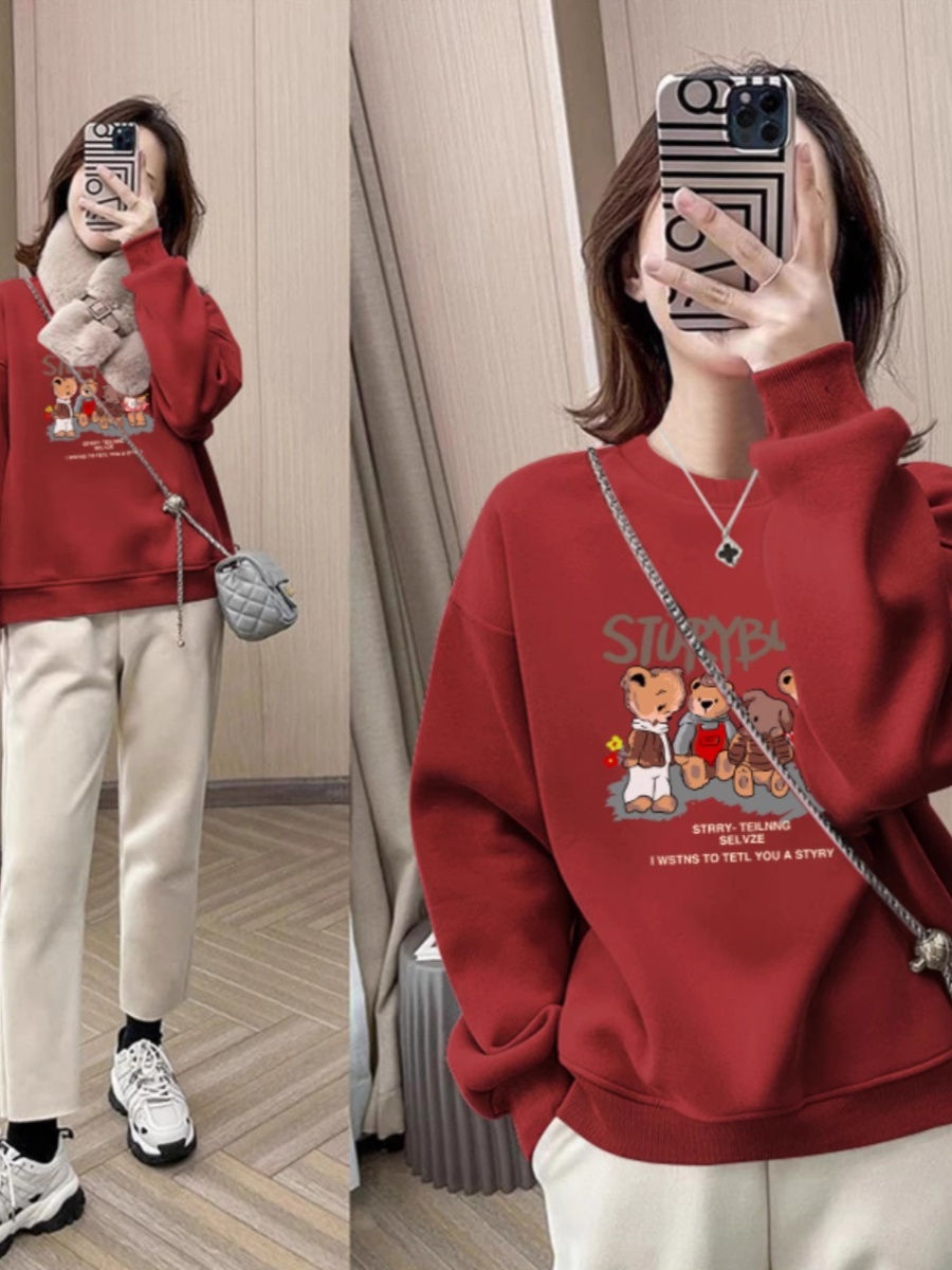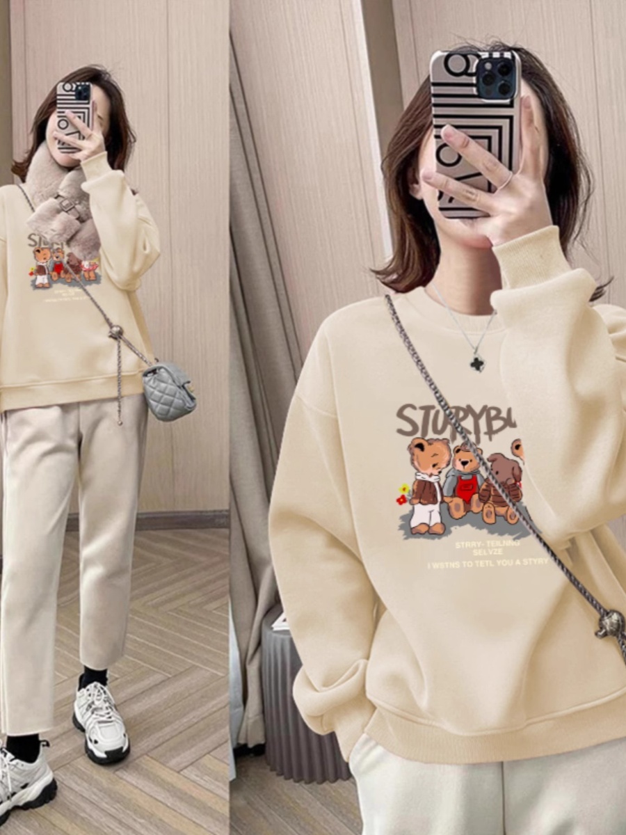 round Neck Sweatshirt Women's Spring and Autumn 2025 New Arrival Best Selling Small Wide Loose Shoulder Pullover Velvet Padded Thickened Top Spring