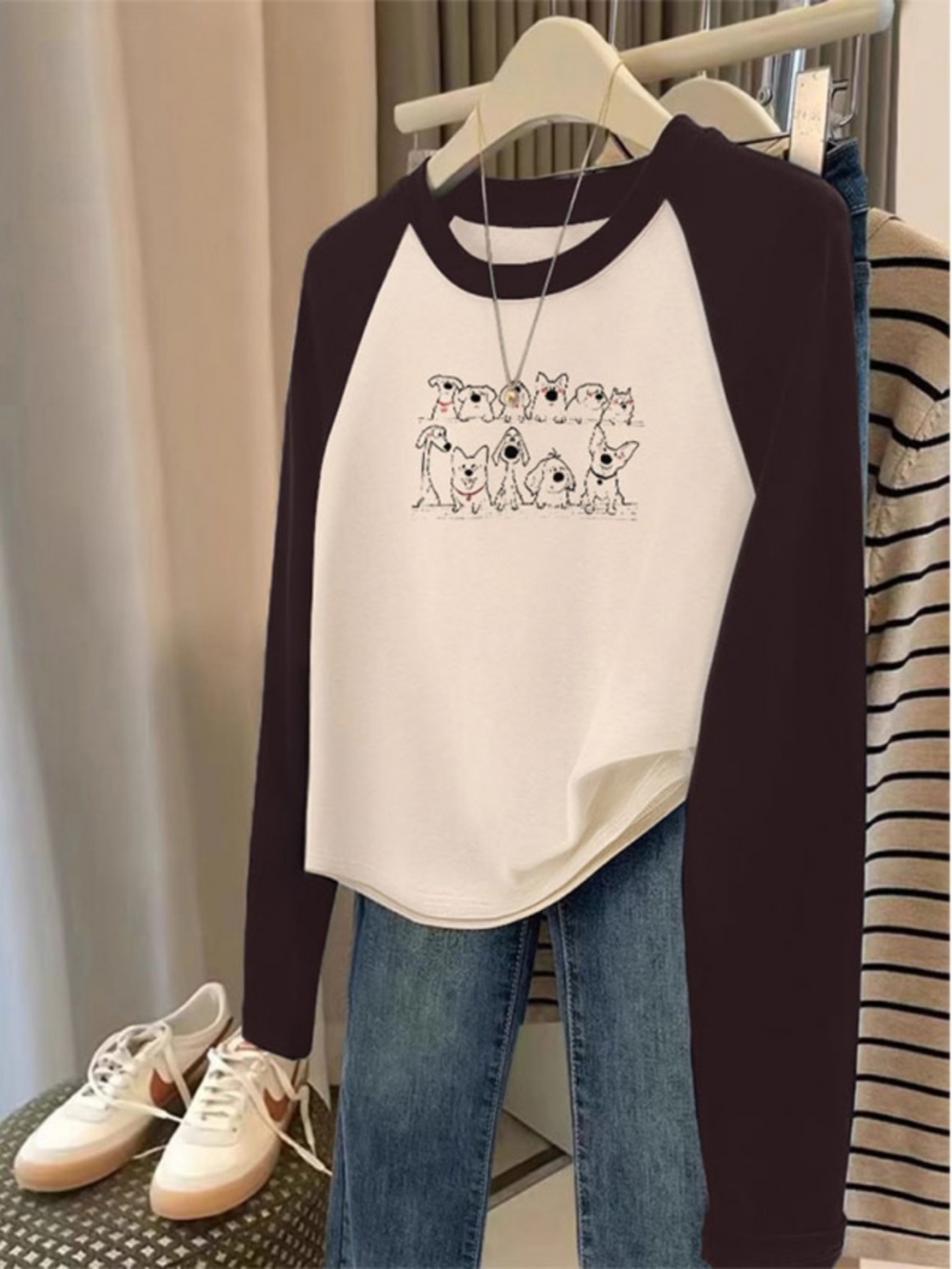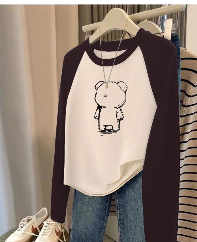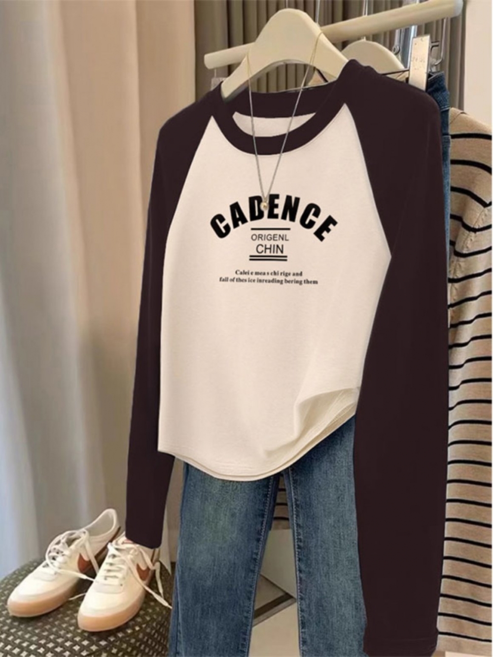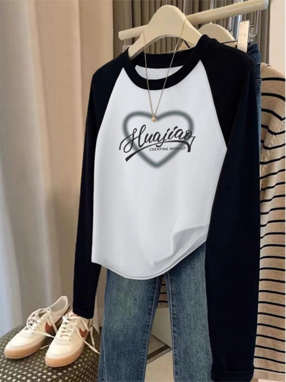 round Neck Tops Women's Spring and Autumn Irregular Design Raglan Pure Cotton Slim Looking Contrast Color Inner Wear Short-Sleeved T-shirt
