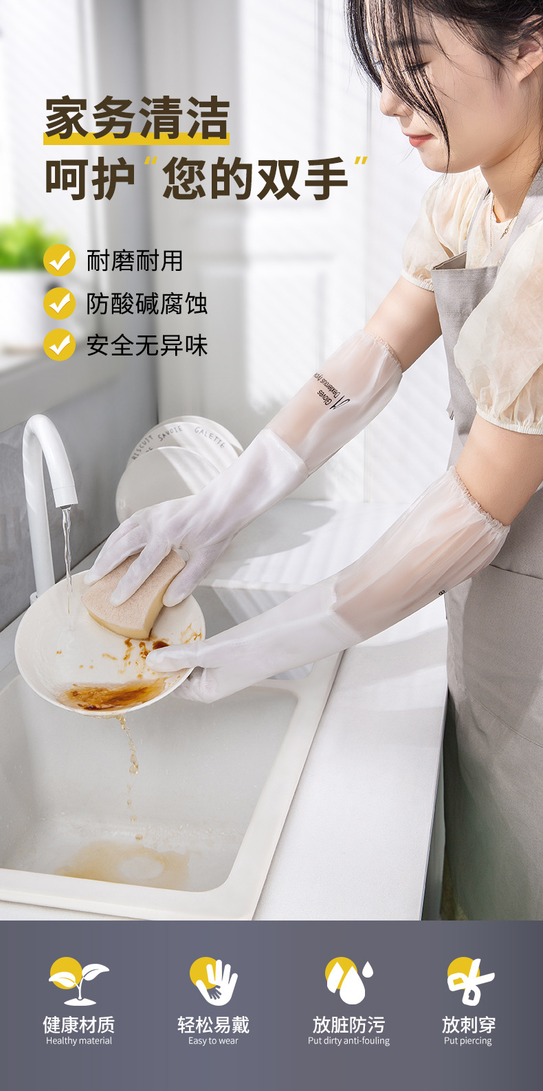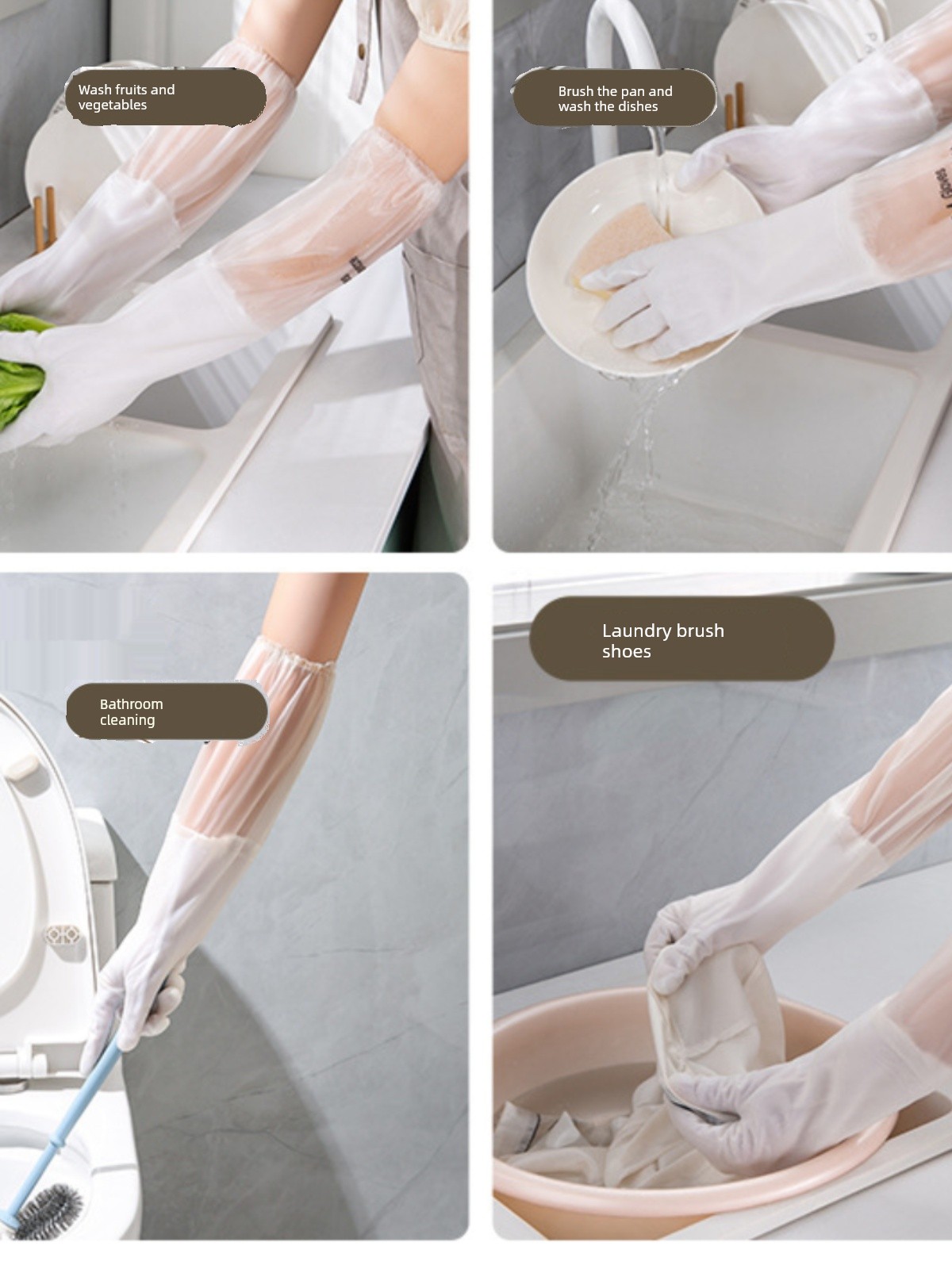 Rubber Dishwashing Gloves Women's Kitchen For Home Household Cleaning Brush Bowl Laundry Plastic Rubber Gloves Waterproof Durable