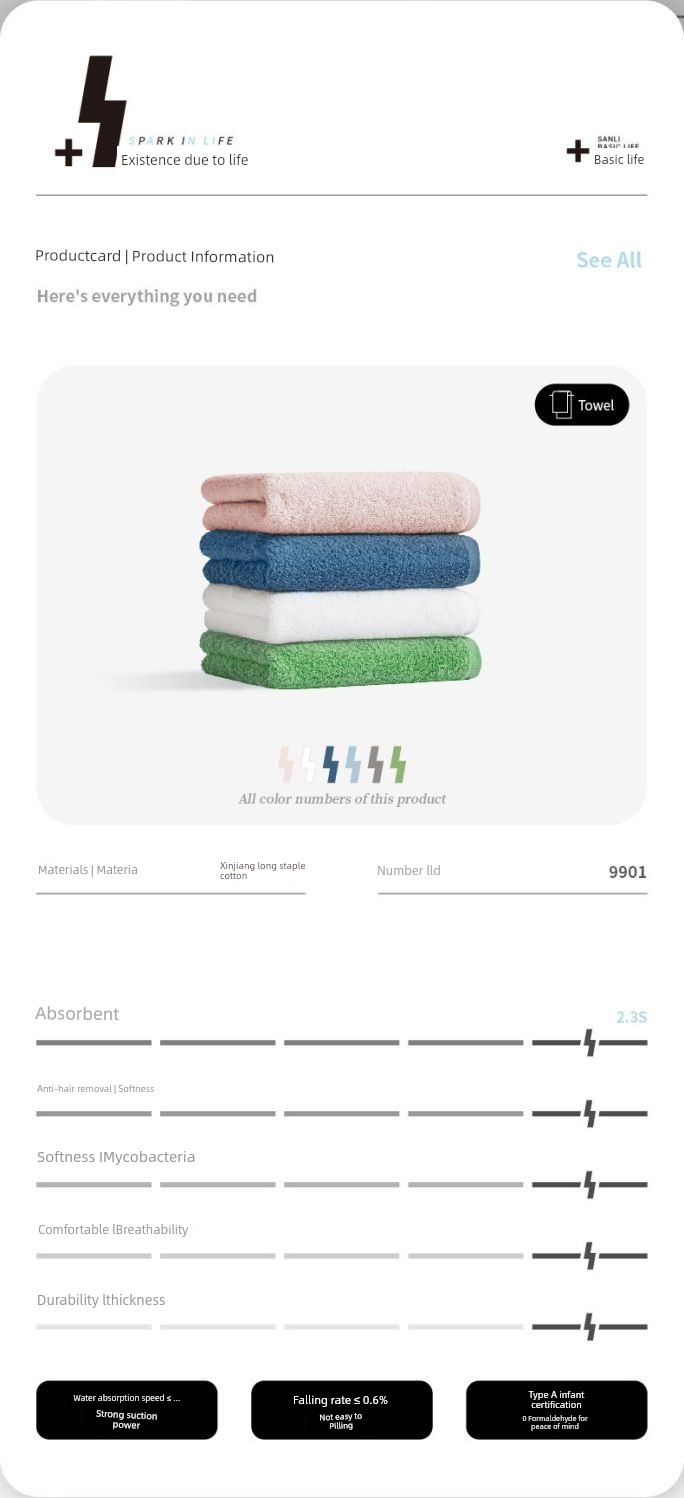 Sanli Hot Water-Absorbing Quick-Drying Class A 3 Pure Cotton Towels