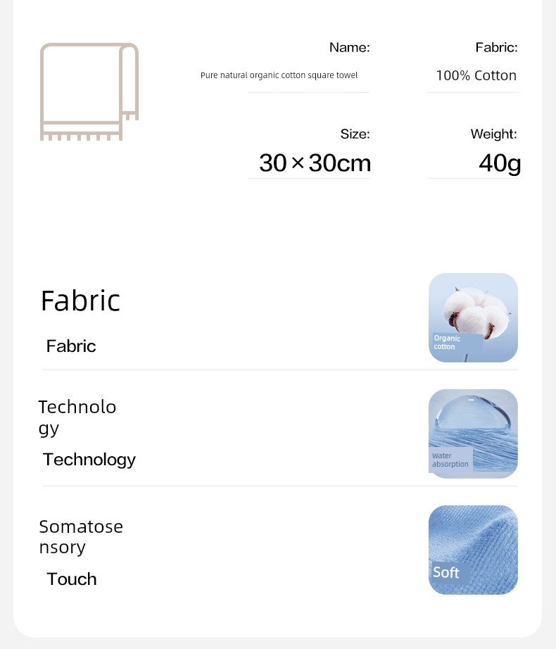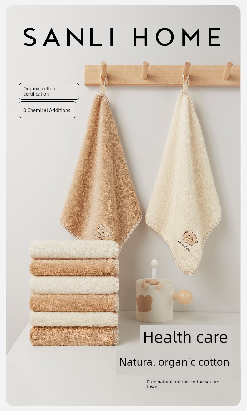 Sanli Organic Cotton Children's Square Towel Pure Cotton Household and Face Wash Water-Absorbing Quick-Drying Soft Handkerchief All Cotton Small Towel Women