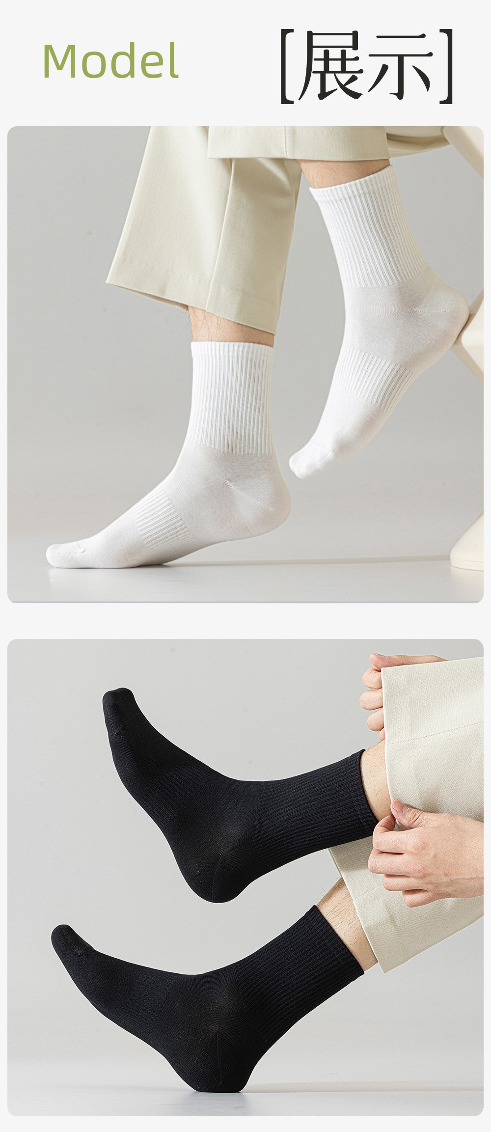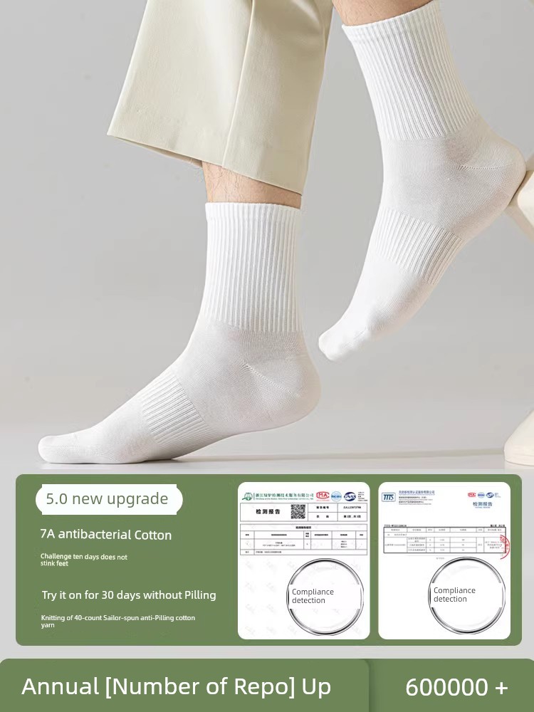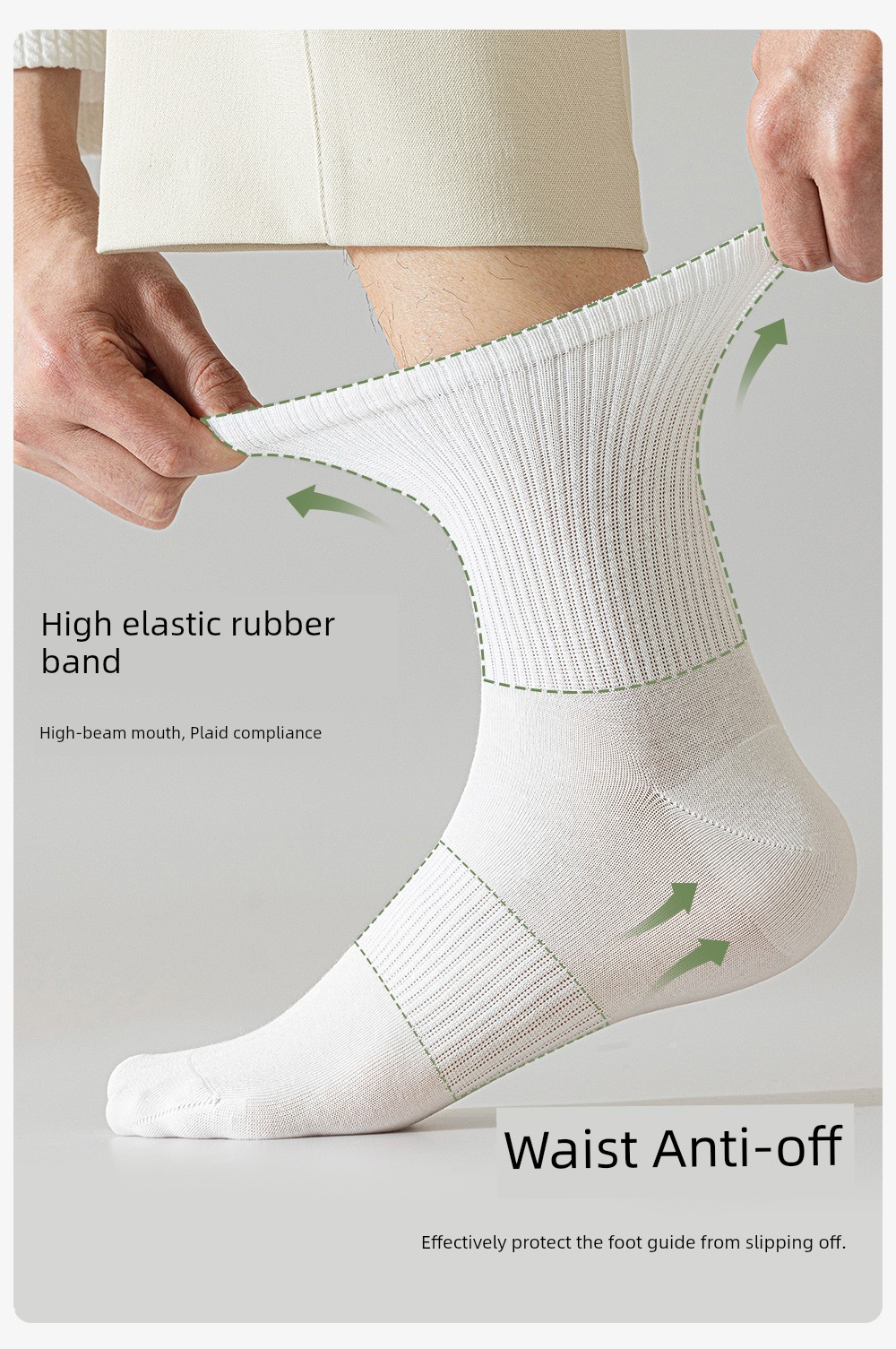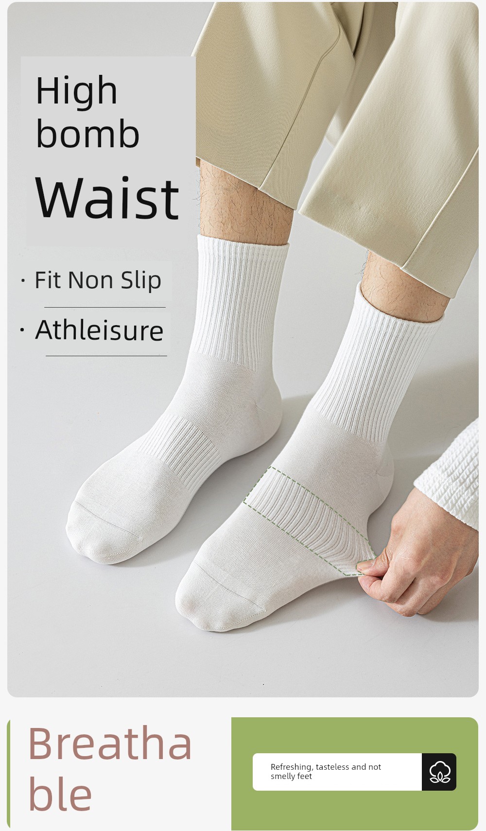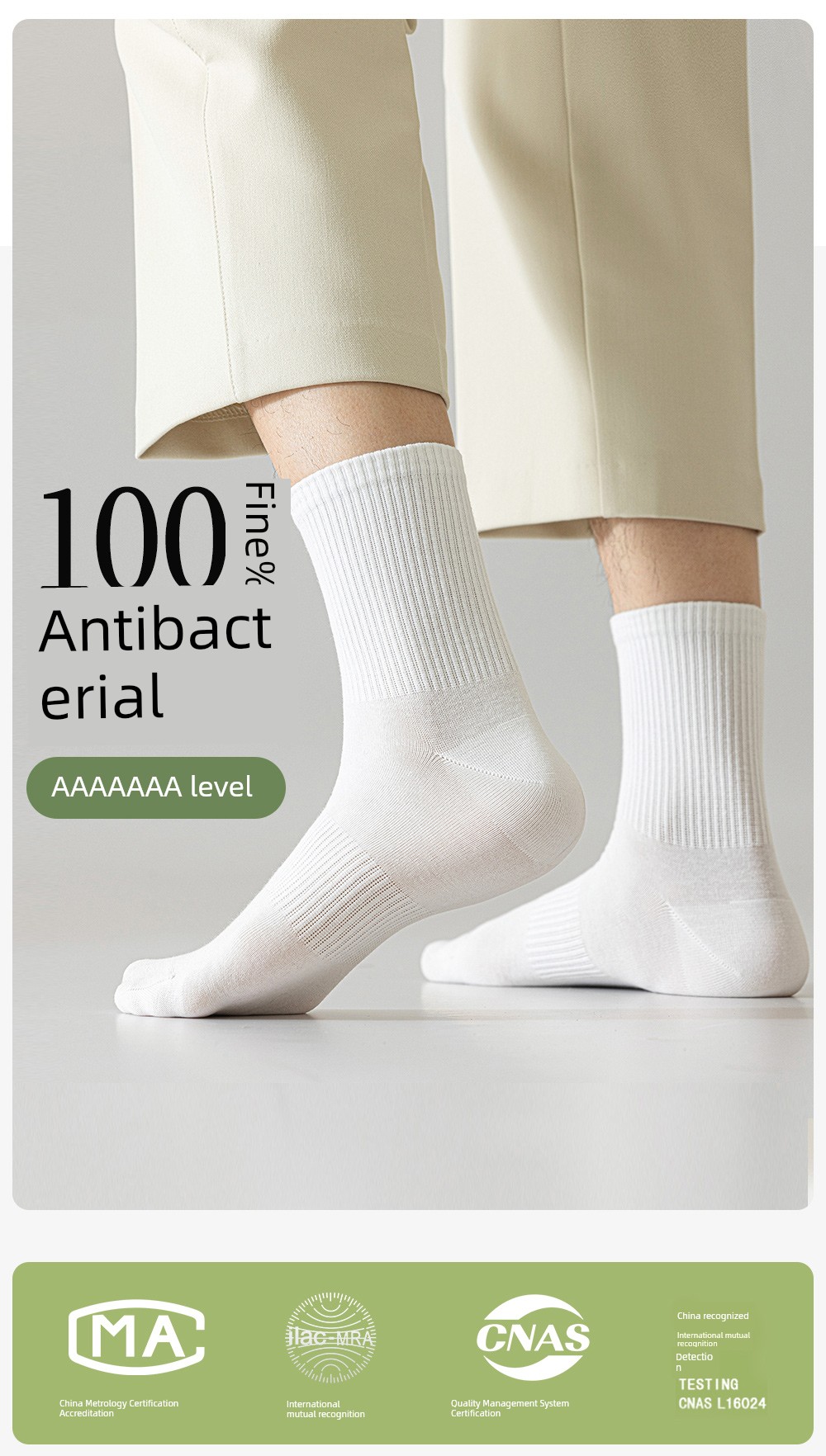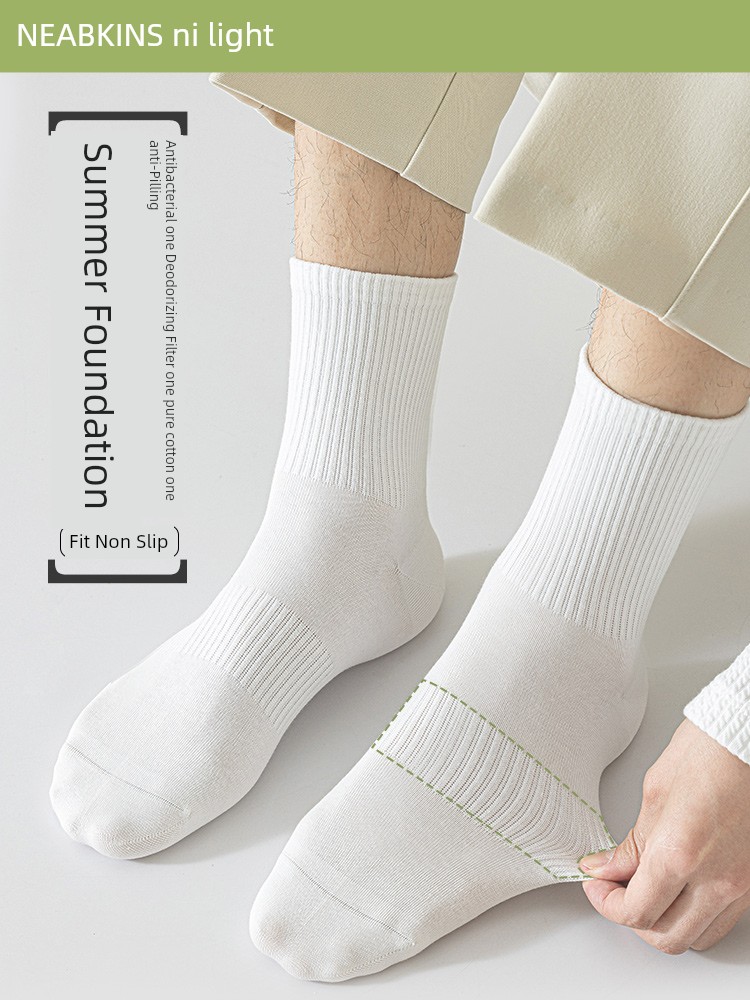 Seamless Socks Men's Mid-Calf Length Sock Spring and Autumn Cotton Antibacterial Deodorizing Filter Men's Summer White Zhuji Socks