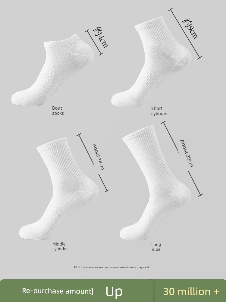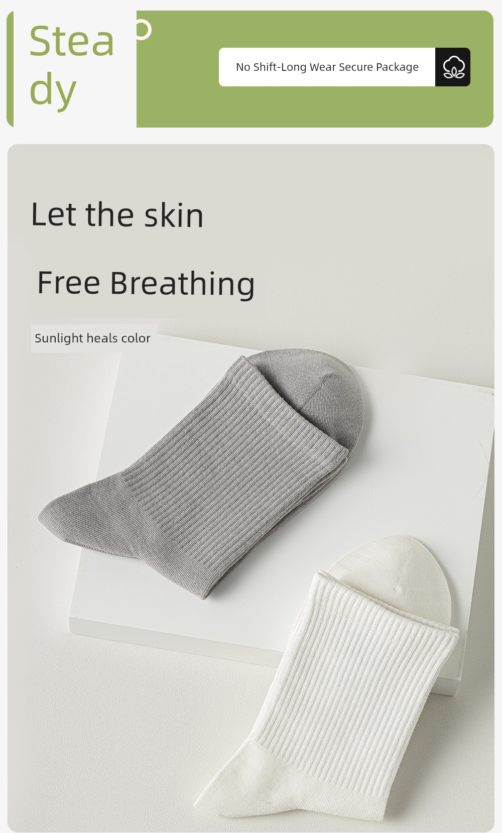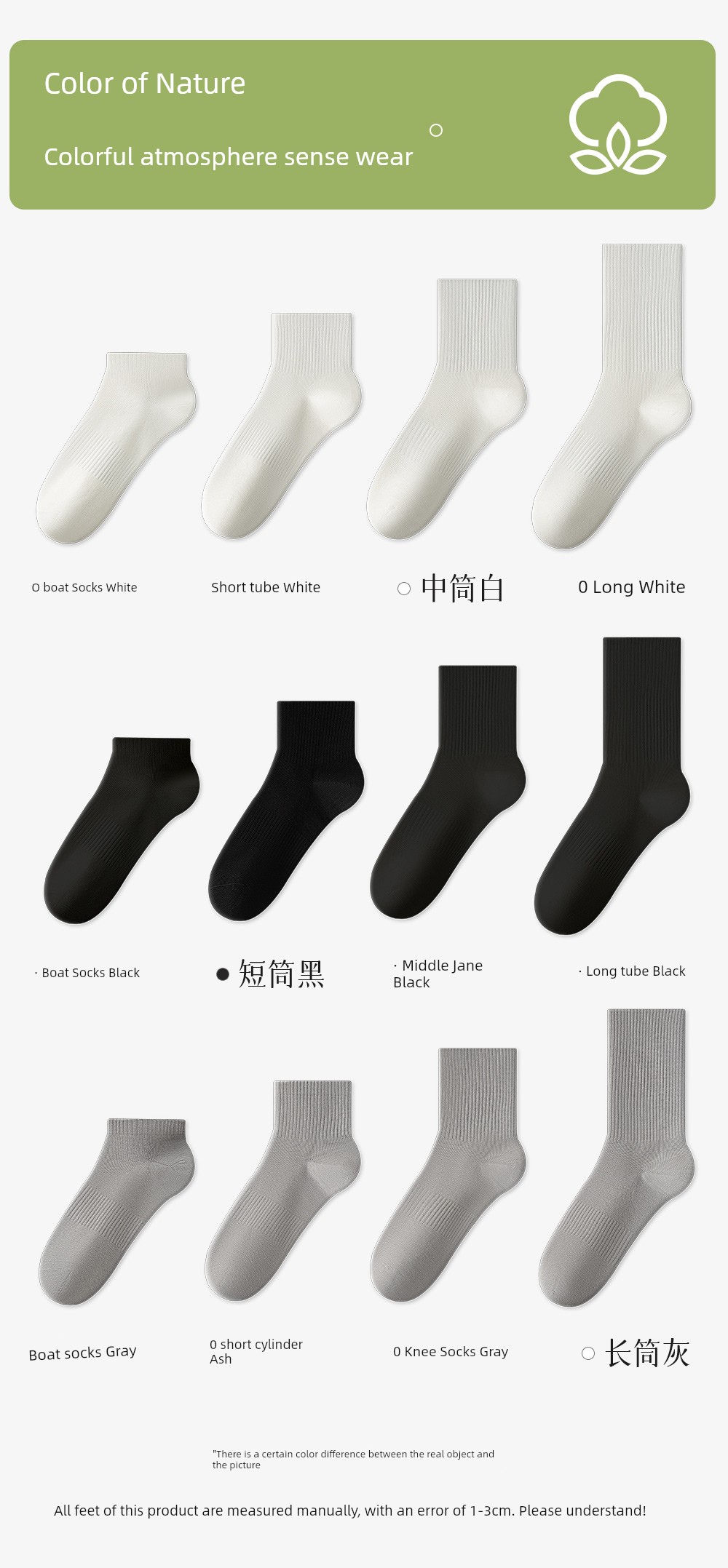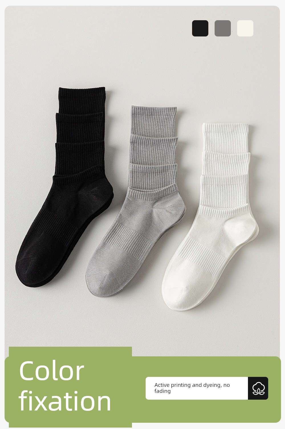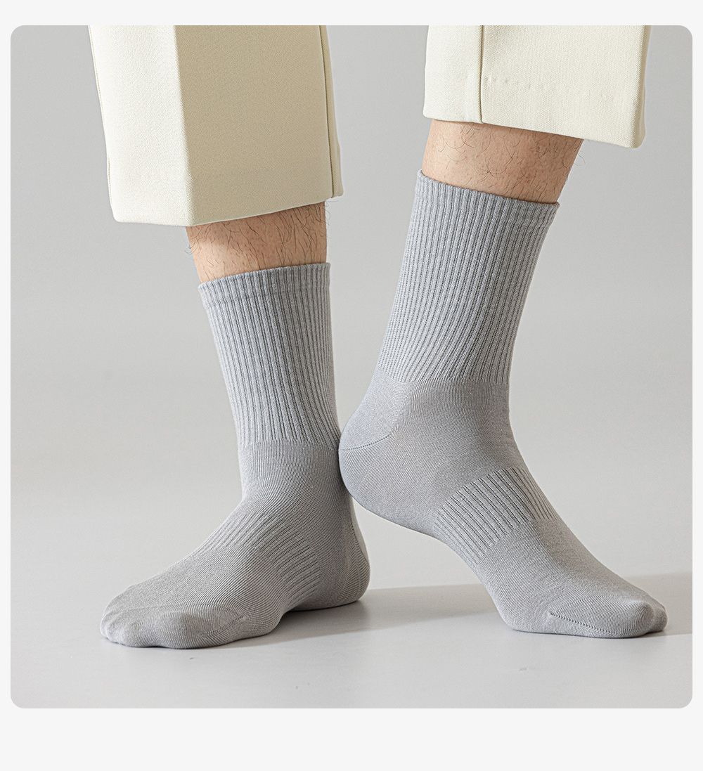 Seamless Socks Men's Mid-Calf Length Sock Spring and Autumn Cotton Antibacterial Deodorizing Filter Men's Summer White Zhuji Socks