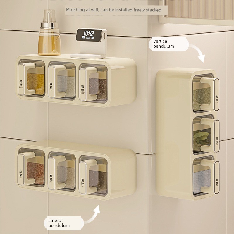 Seasoning Box Wall-Mounted Kitchen Salt MSG and Seasoning Condiment Storage Box For Home Classy Wall Hanging Decoration Seasoning Jar Suit