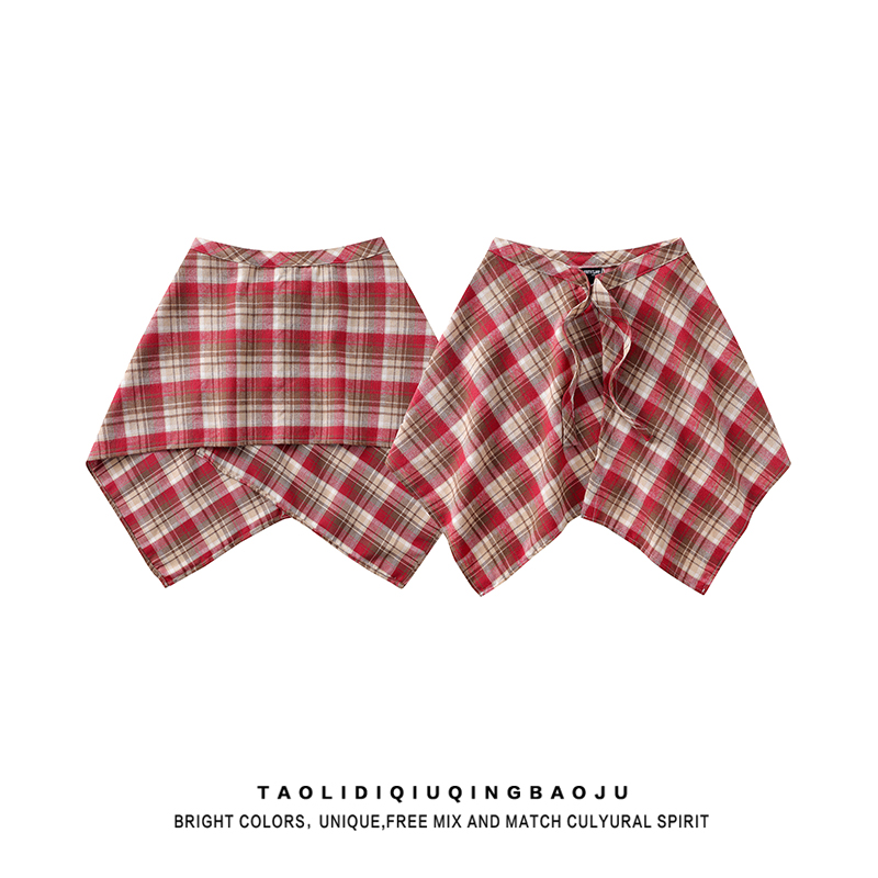 Sexy Style Red Gingham Fart-Covering Curtain Female 2025 New Arrival One-Piece Shoelace Hem Asymmetrical Bandage Dress Skirt