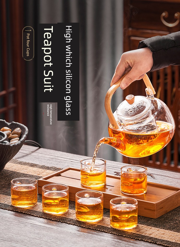 Shangbajia Tea Brewing Pot Cup Suit Glass Boiling Tea Caddy High Temperature Resistant Lifting Handle Kettle Stove Tea Brewing Pot