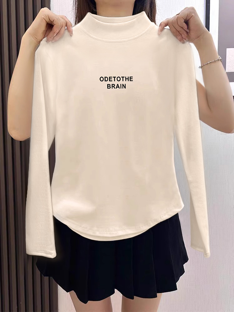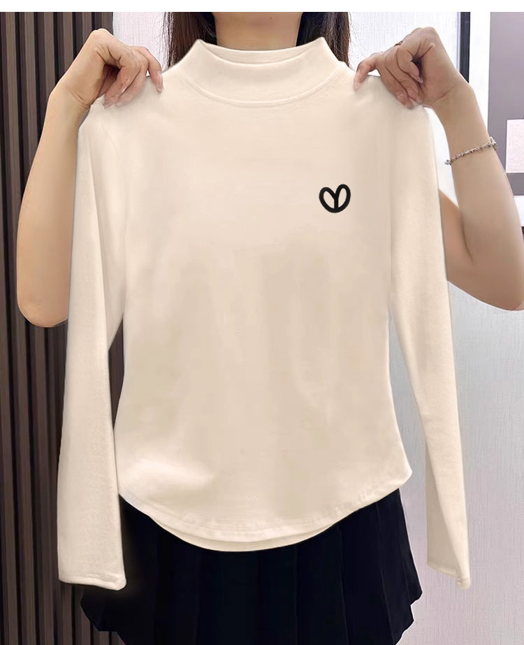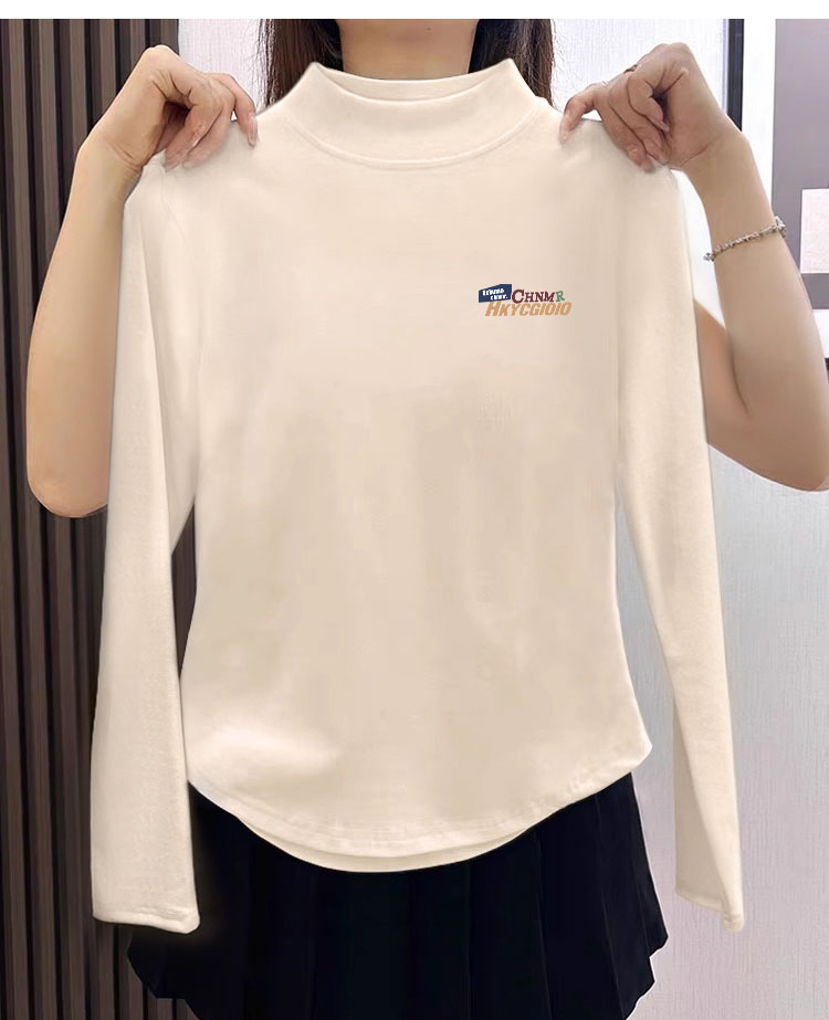 Shoulder Half Turtleneck Bottoming Shirt Female Fall and Winter New Arrival Asymmetrical Slim Fit Inner Wear Dralon Heattech Fashion Long Sleeve Top