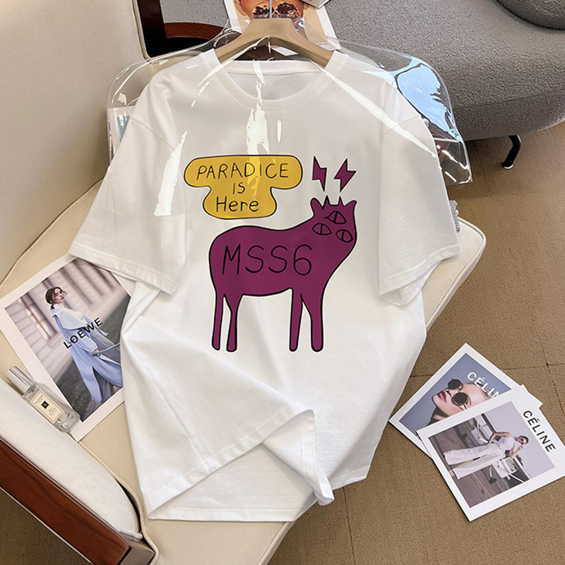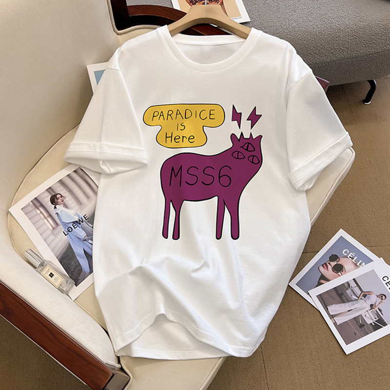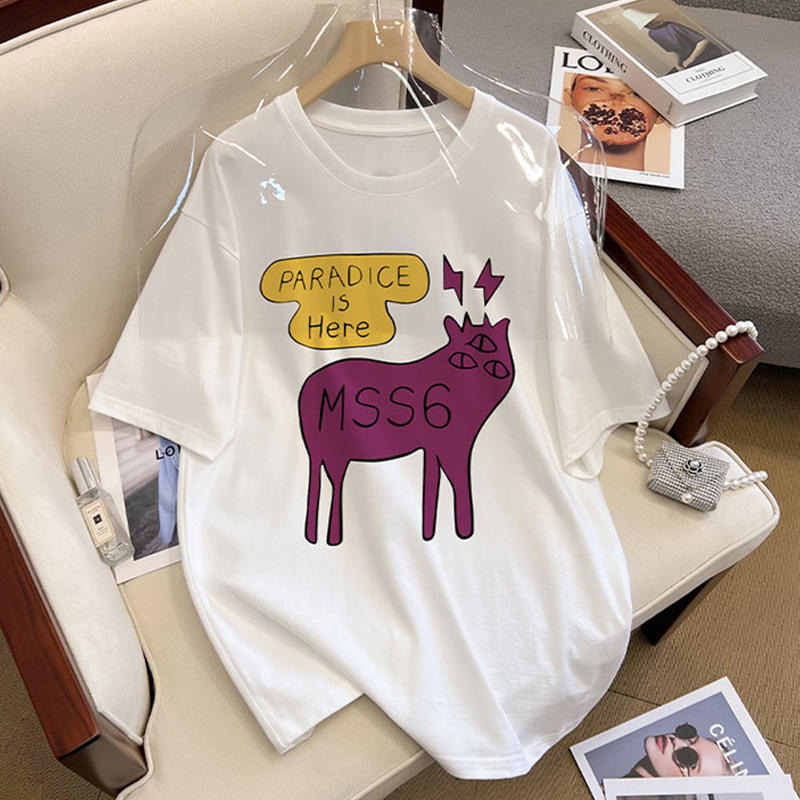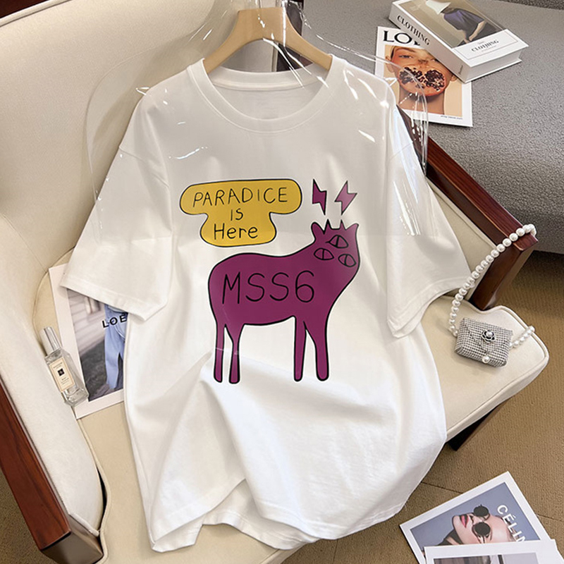 Shoulder Pure Cotton Short Sleeve T-Shirt Women's Spring and Summer 2024 New Arrival Loose White Plus Size Base Half Sleeve Tops Tide