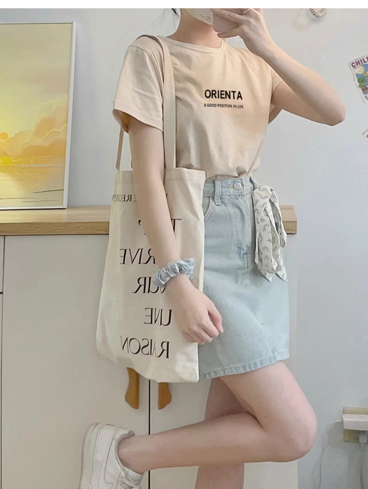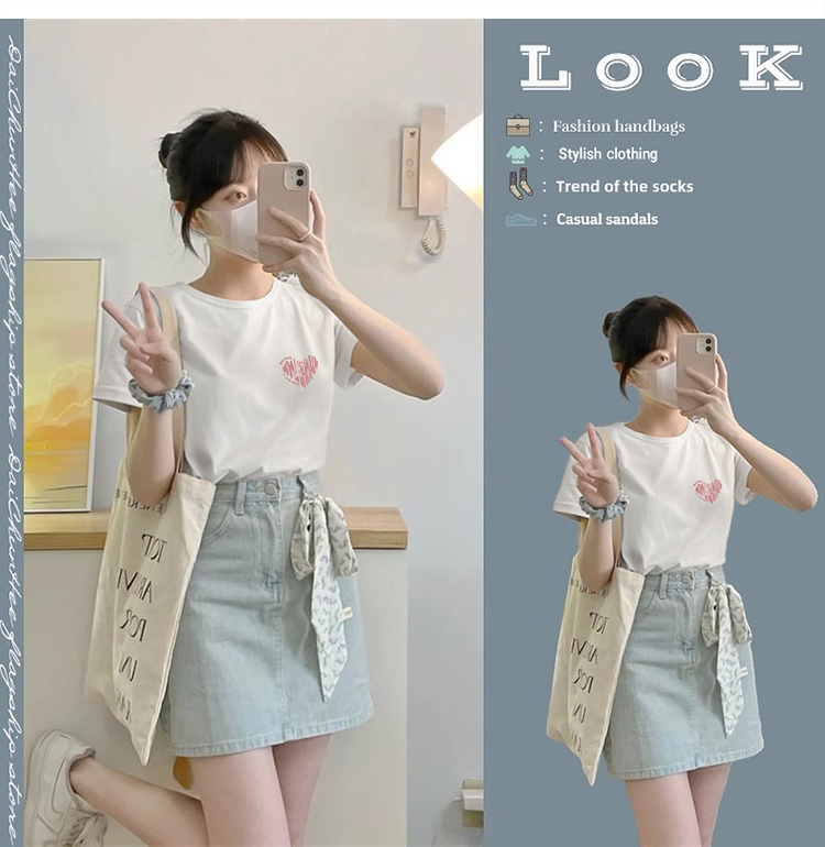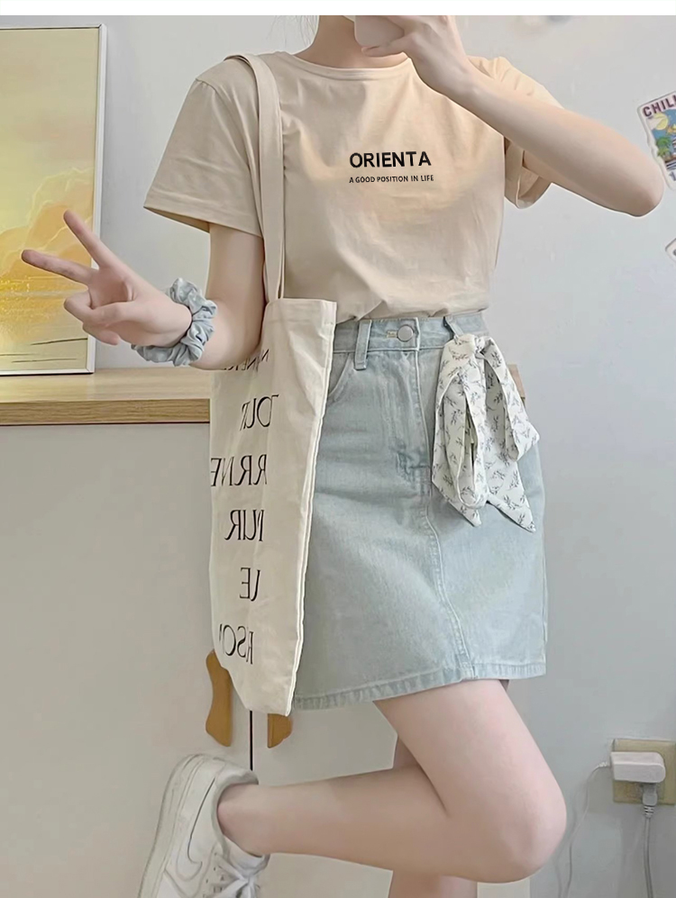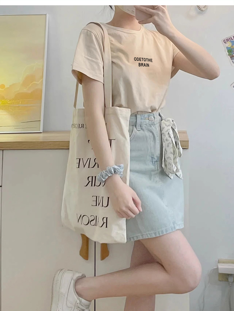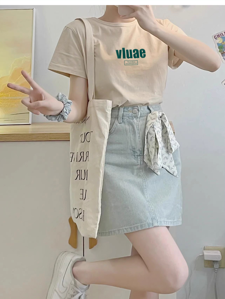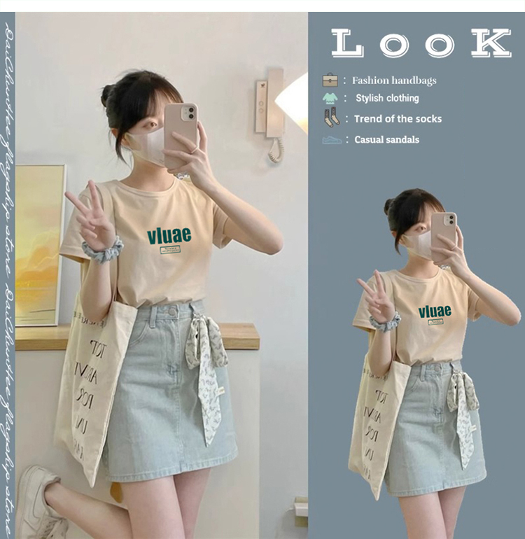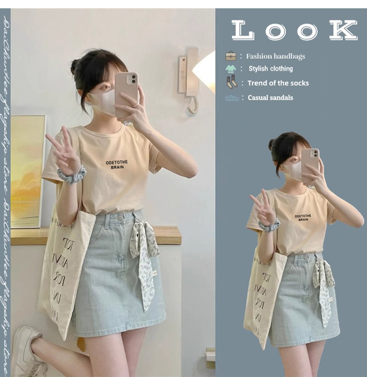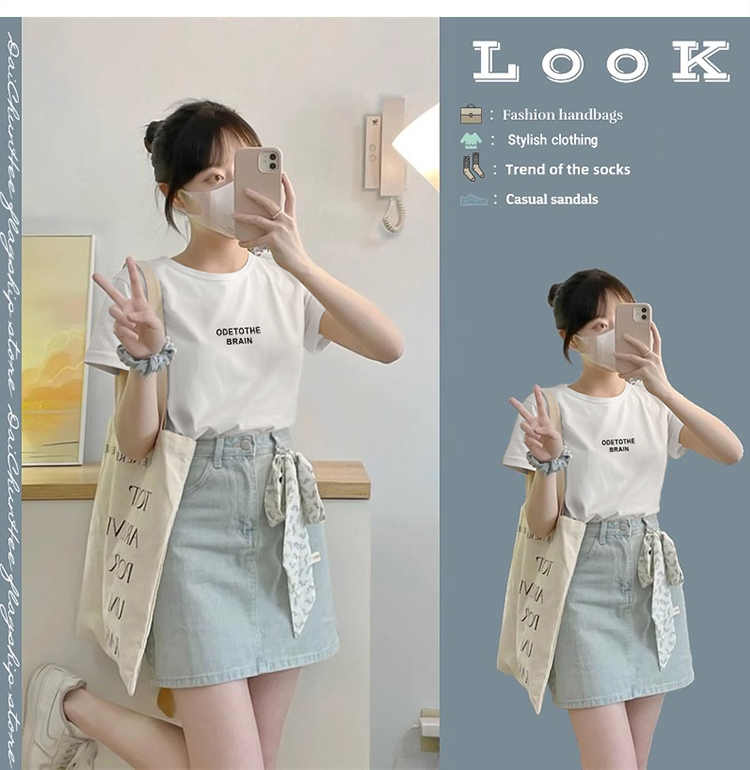 Shoulder Pure Cotton Short-Sleeved T-shirt Women's Summer 2025 New Arrival Fashion Letters Print round Neck White Tops Tide