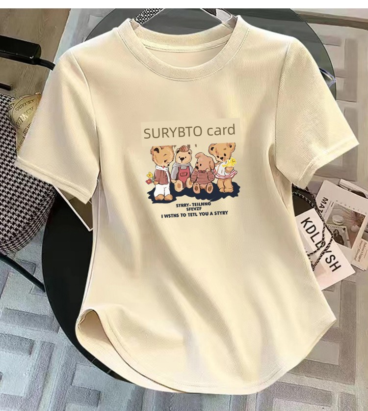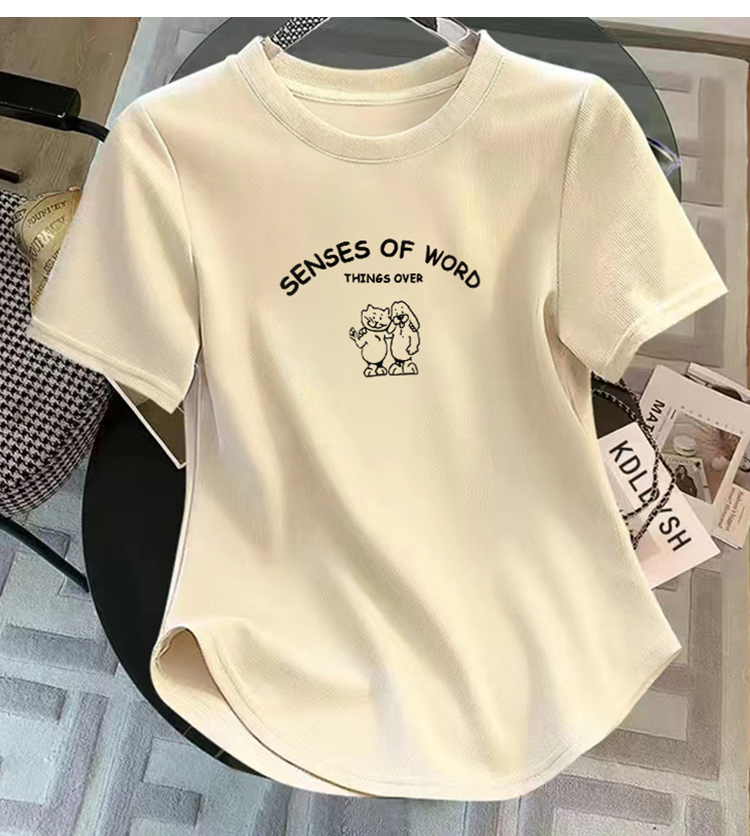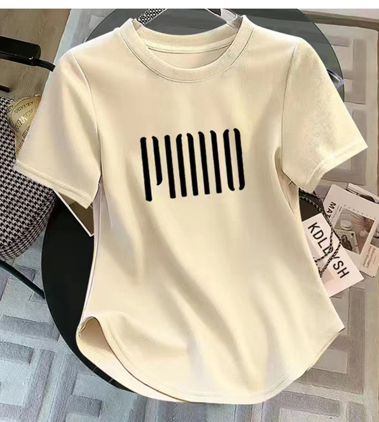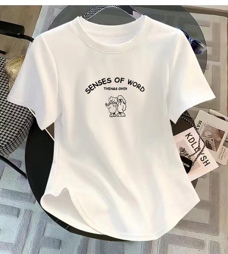 Shoulder Short Sleeve T-Shirt Women's New Arrival Summer Western Style Slimming Inner Wear Pure Cotton Curved Hem Stylish Short Tops