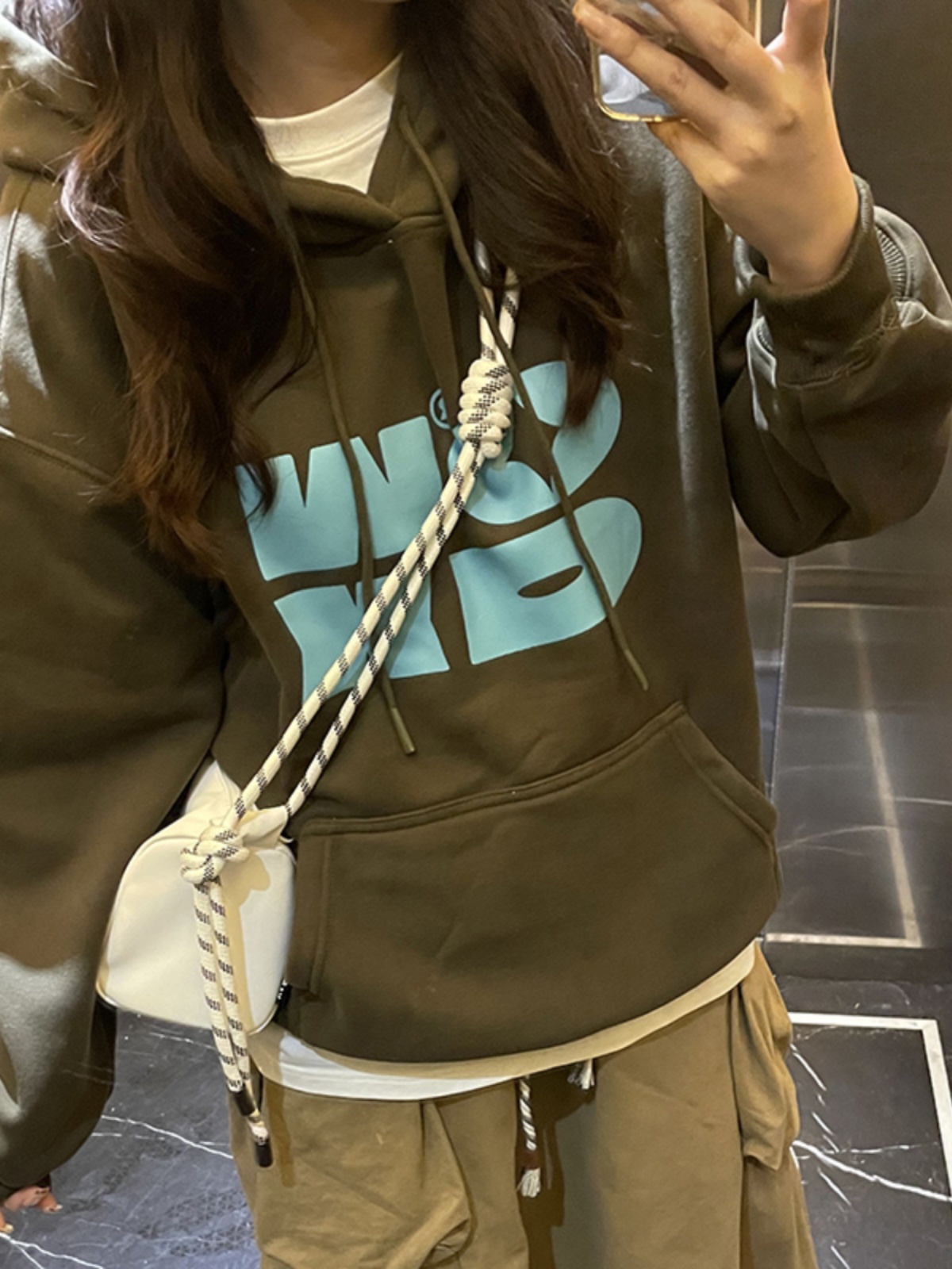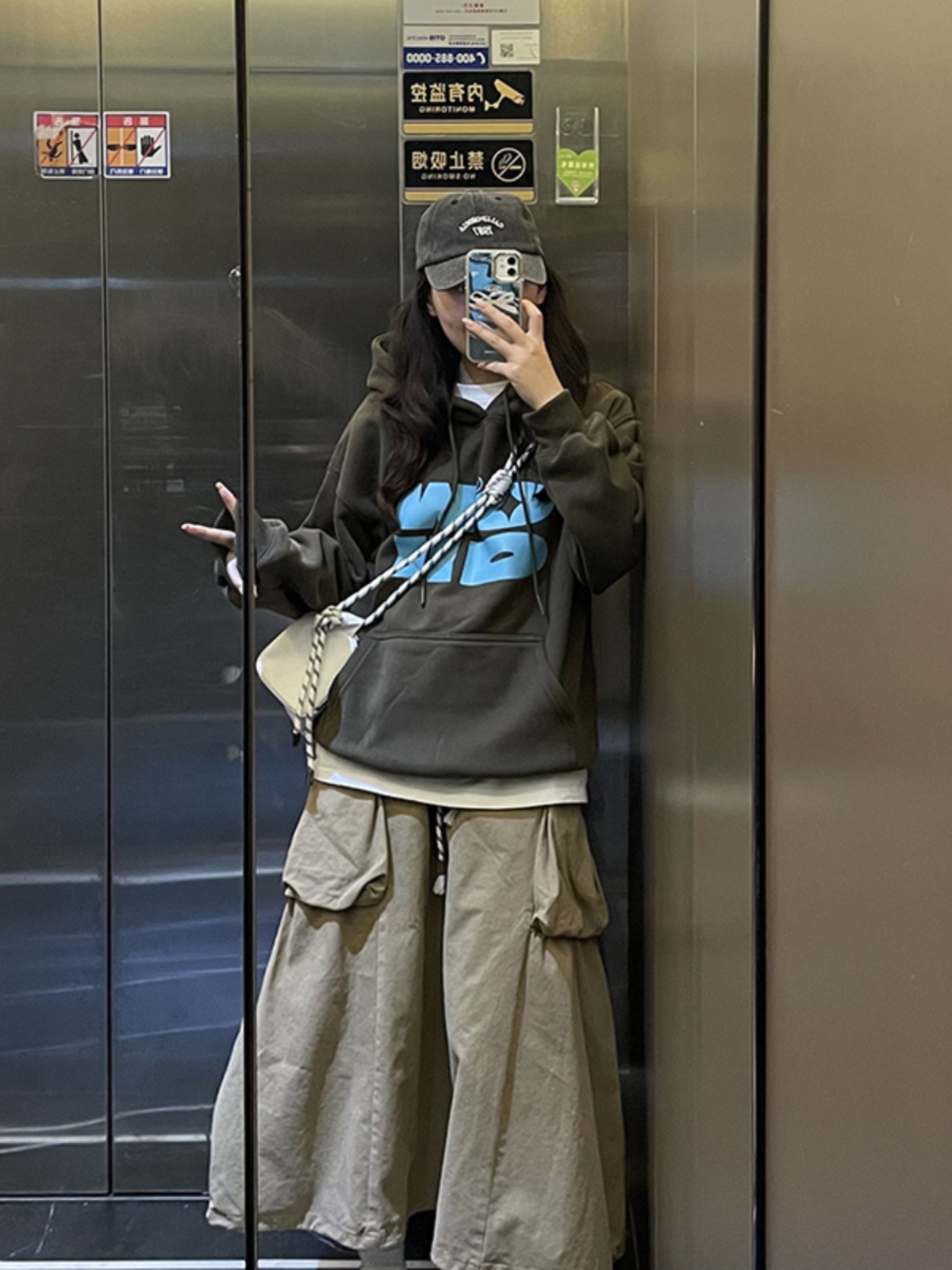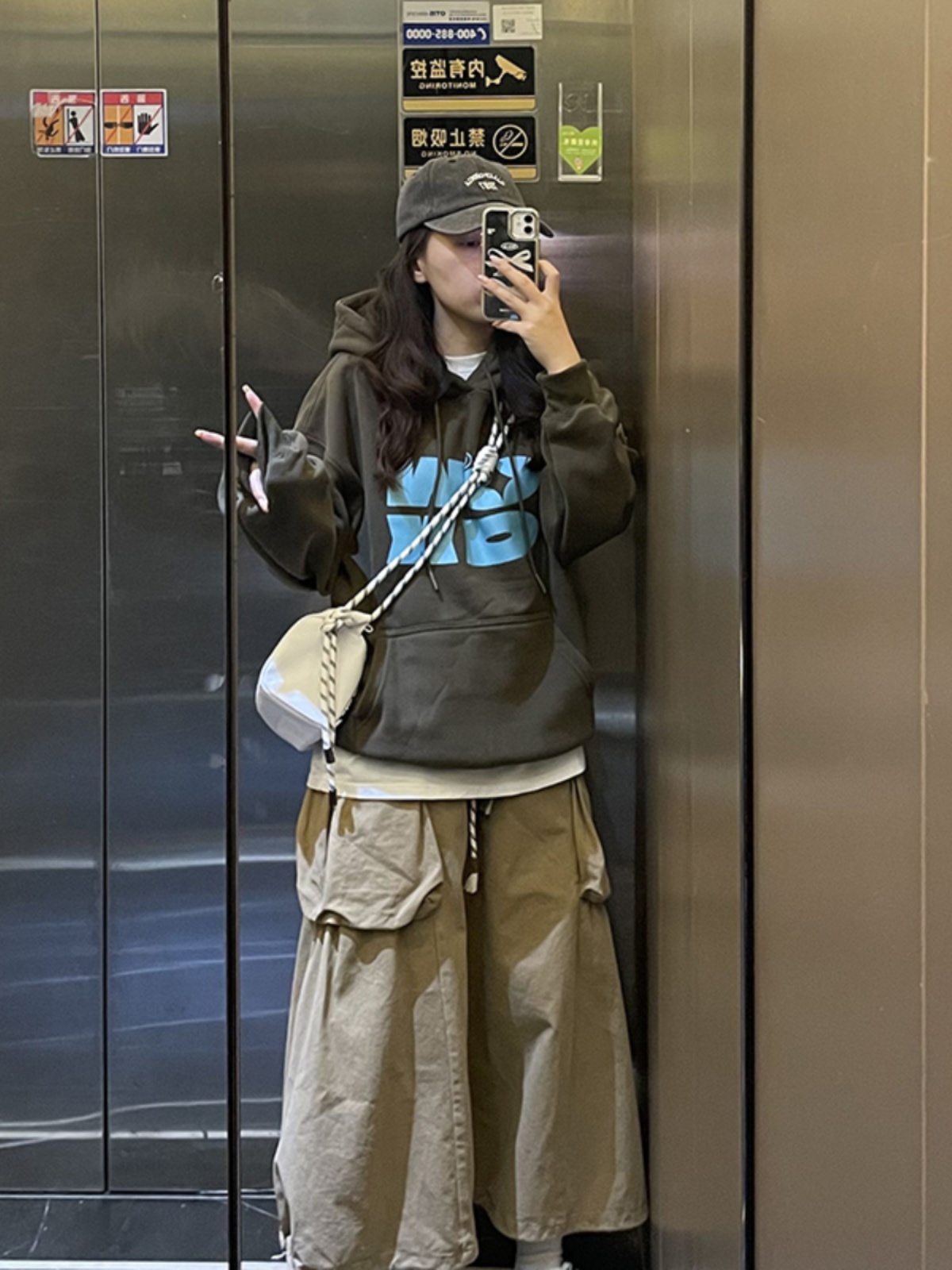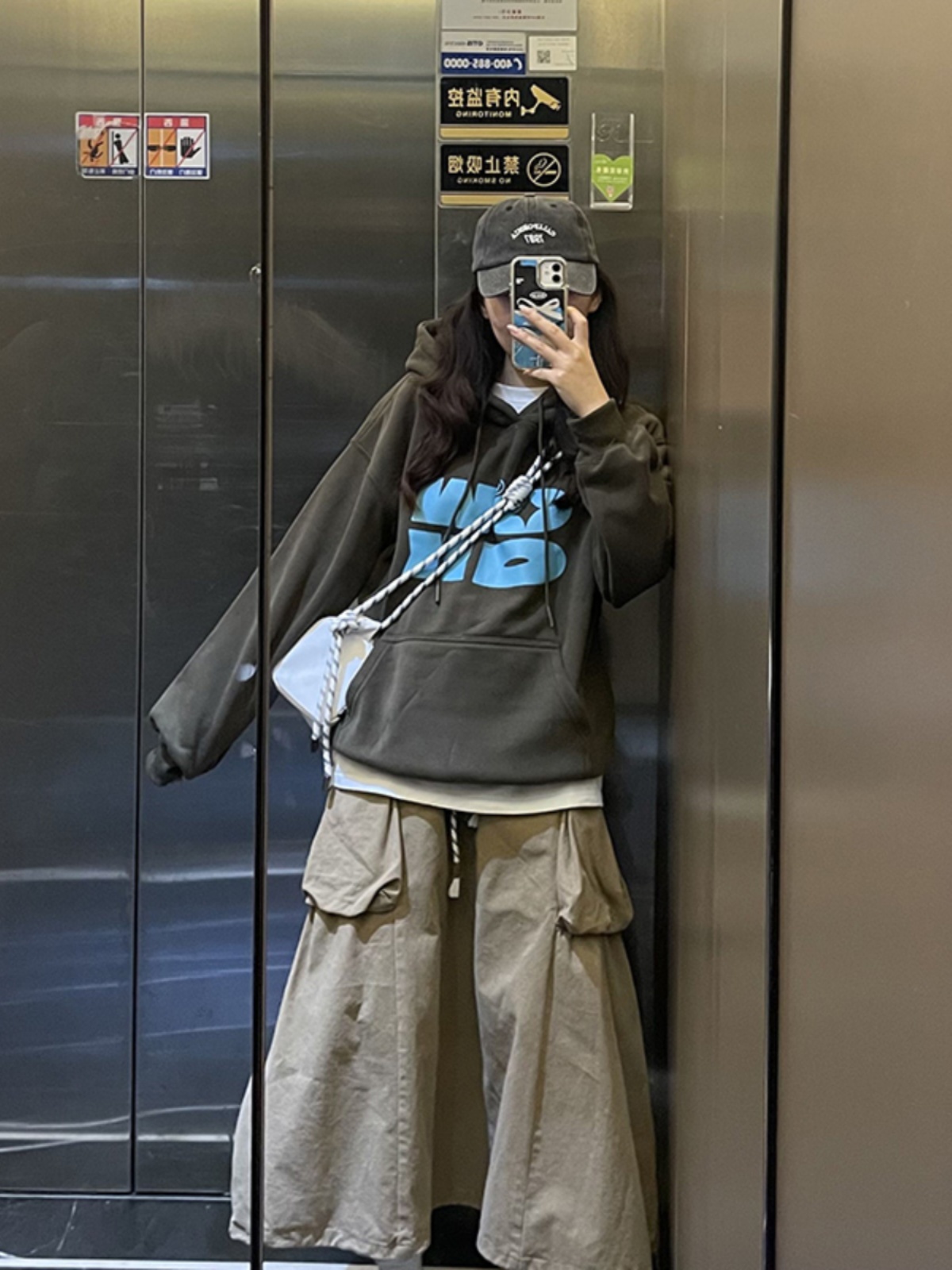 Silver Fox Velvet Hooded Sweatshirt Women's Spring and Autumn Loose and Lazy Style Casual Fashion All-Matching Slimming Youthful-Looking round Neck Tops