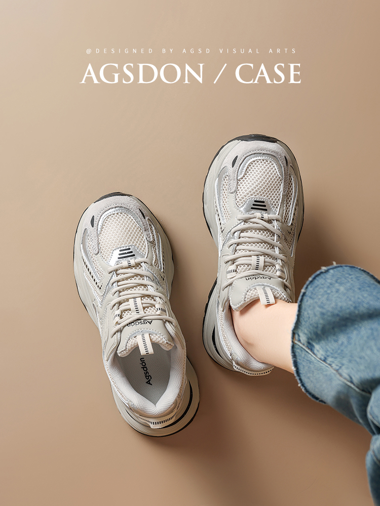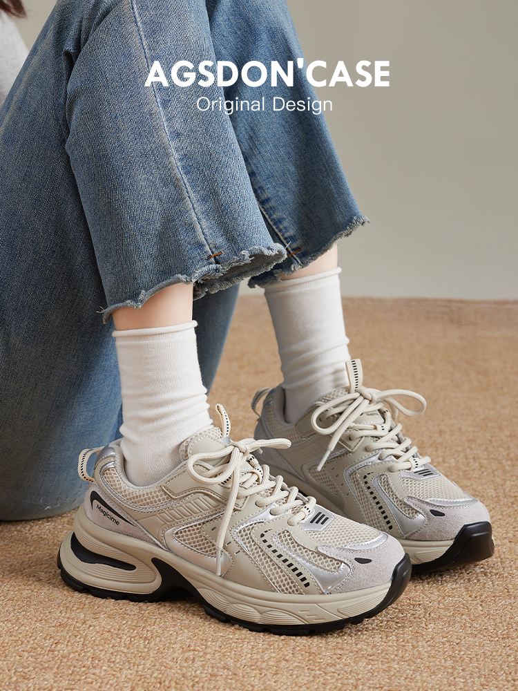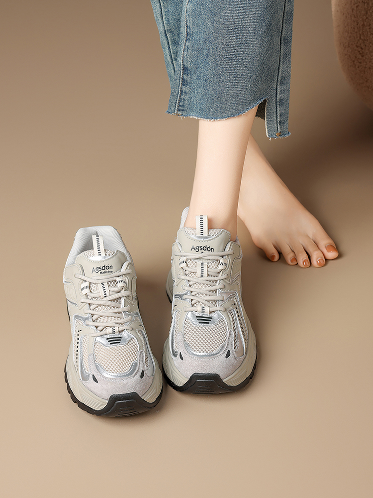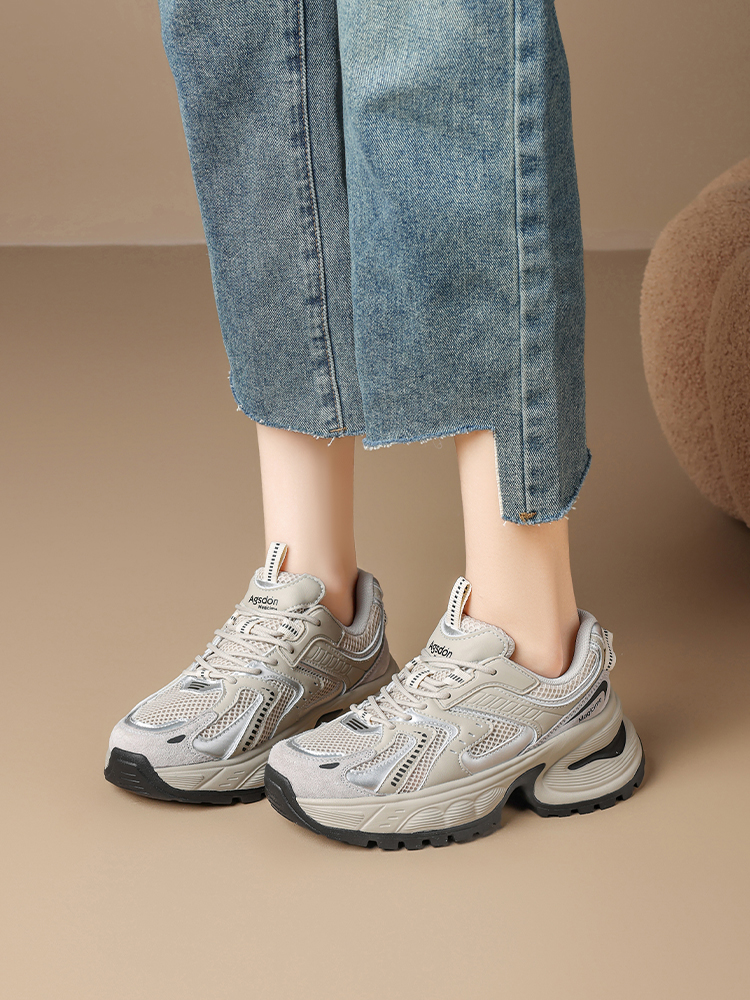 Silver Gray Dad Shoes Women's 2024 New Arrival Summer and Autumn Thick Sole Height Increasing Hiking Hiking Running Leisure Sneaker