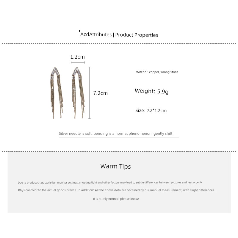 Silver Zircon Triangle Long Tassel Earrings Female Accessible Luxury Fancy Elegant Earrings 2025 New Arrival Best Selling Earrings