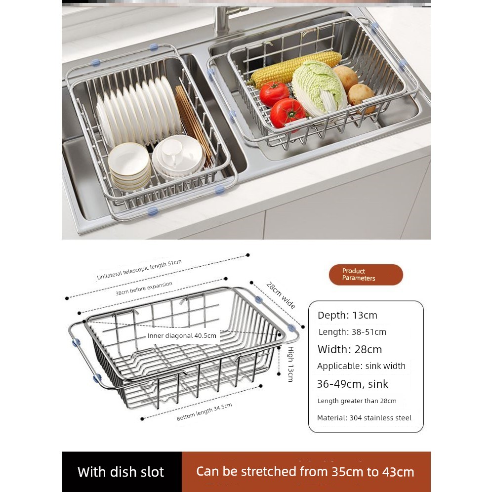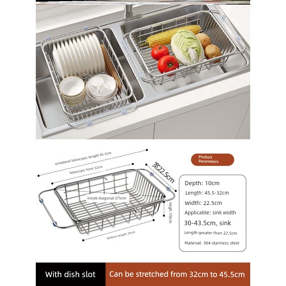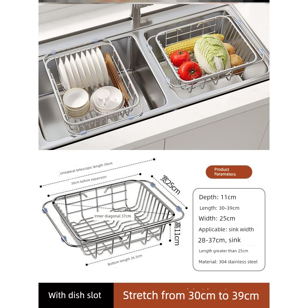 Sink Drainage Basket Stainless Steel Sink Washing Basin Retractable Kitchen Storage Rack Bowl Dish Storage Rack Kitchen Supplies