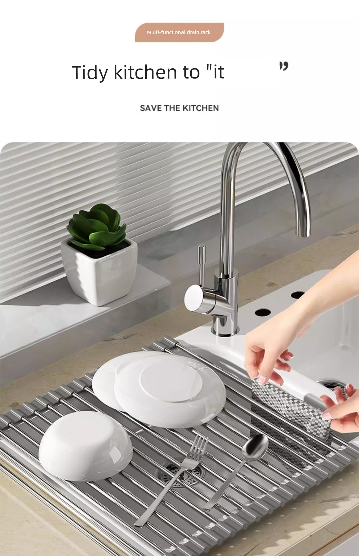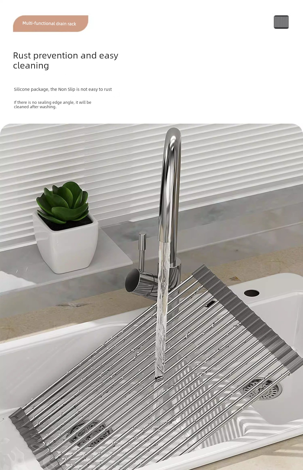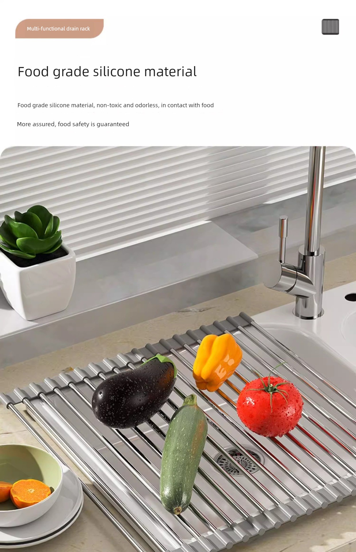Sink Draining Shelf Foldable Silicone Shutter Pad Kitchen Sink Storage Rack Tableware Rack Holder Mesh Basket