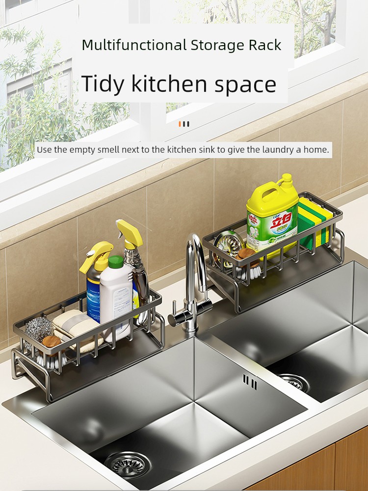 Sink Fabulous Draining Gadget Sink Side Sponge Rack Rag Rack Storage Rack Kitchen Storage Rack Punch-Free For Home Table Top