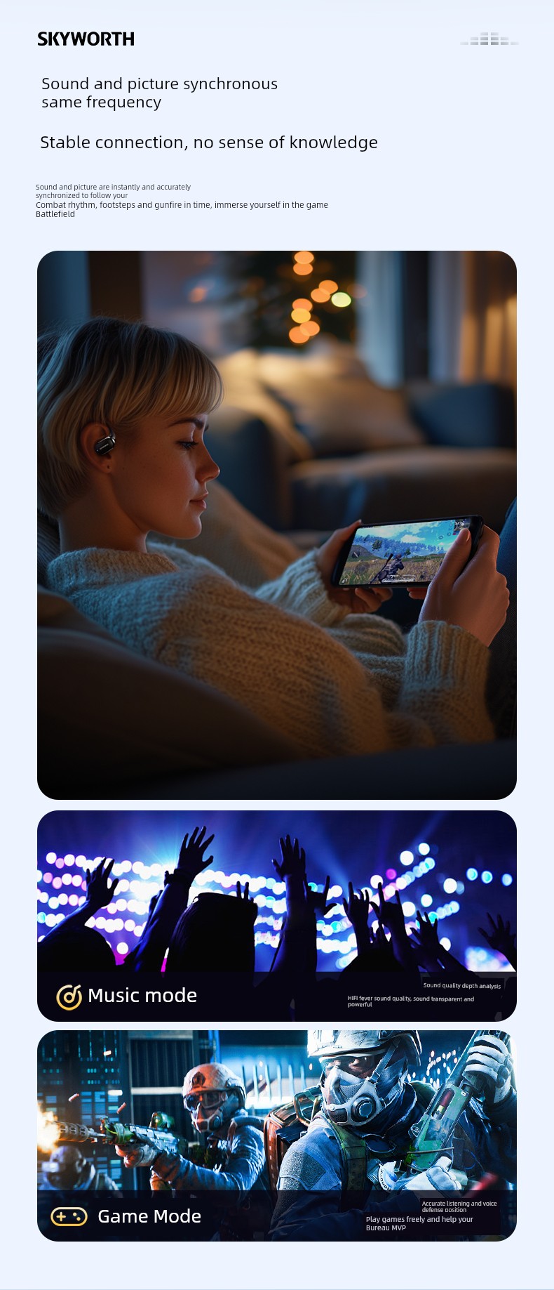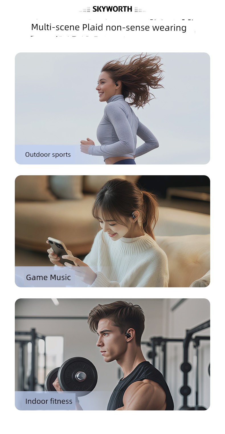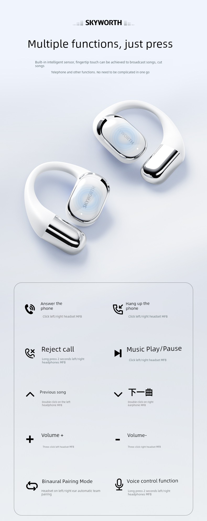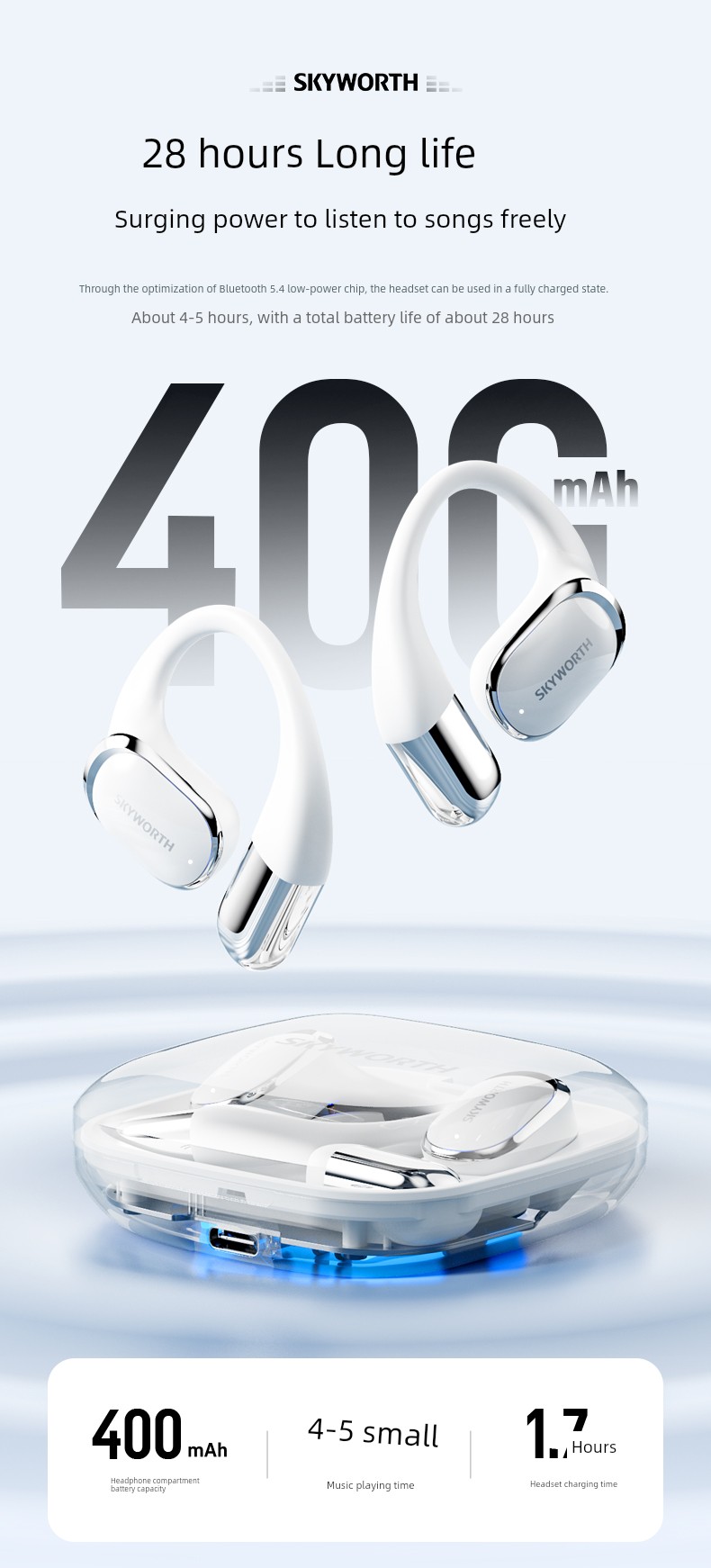 Skyworth Bluetooth Headset Wireless Ear Hook Gas Bone Conduction 2025 New Arrival High Sound Quality Sports Noise-Canceling HD Call