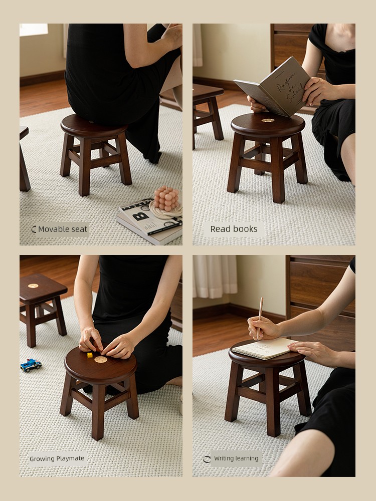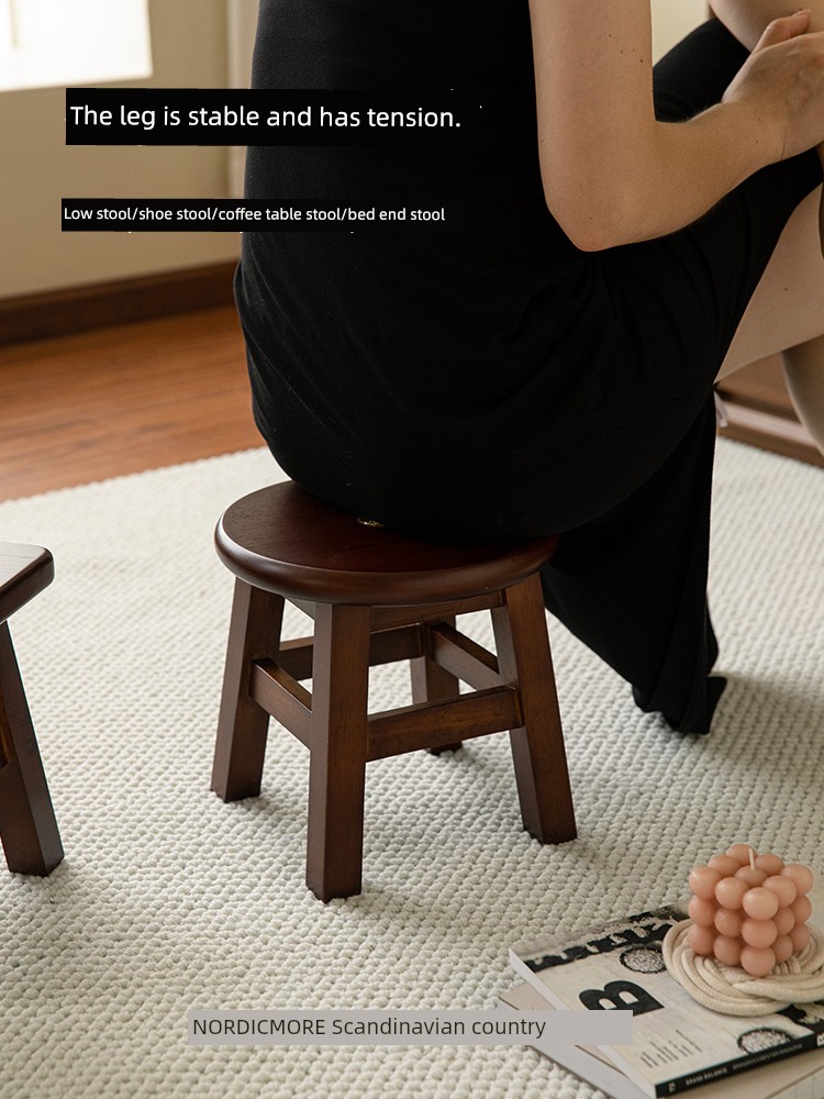 Small Stool For Home Bench Kids Low Stool Solid Wood Retro Square Stool Living Room Coffee Table Stool Plastic Footpad Shoe Changing Stool Fancy
