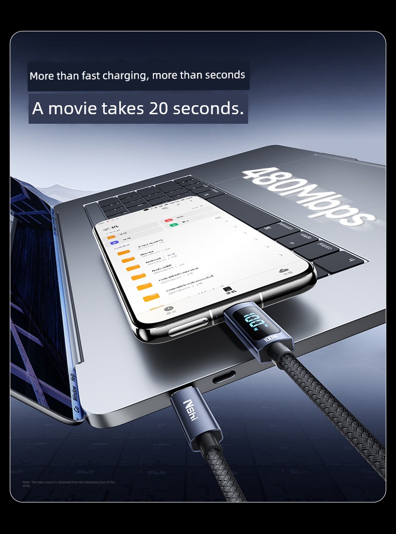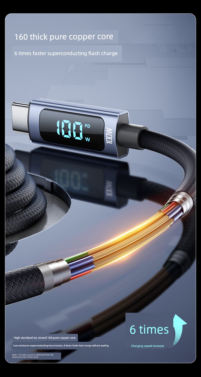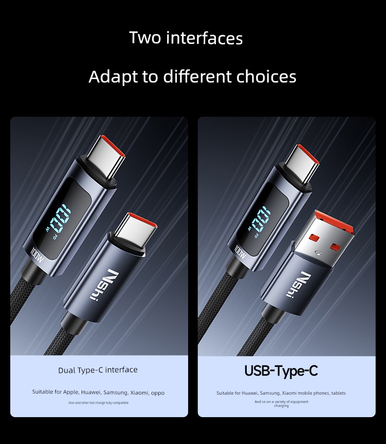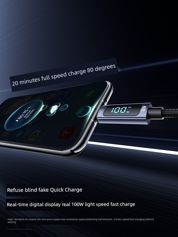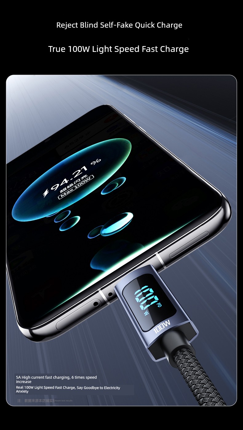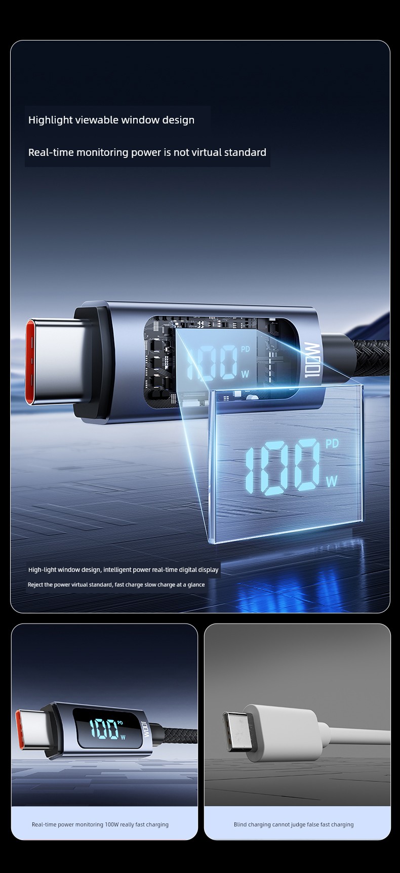 [Smart Digital Display] Suitable for 100W Super Fast Charge Double Typec Data Cable for Apple Huawei Oppo Xiaomi Vivo Android TC Charging Cable Laptop iPad Car Charging Cable