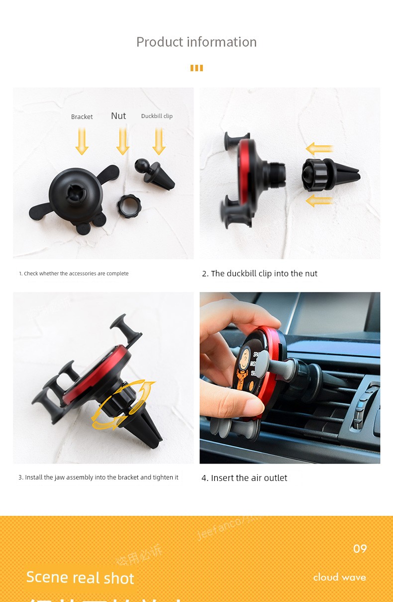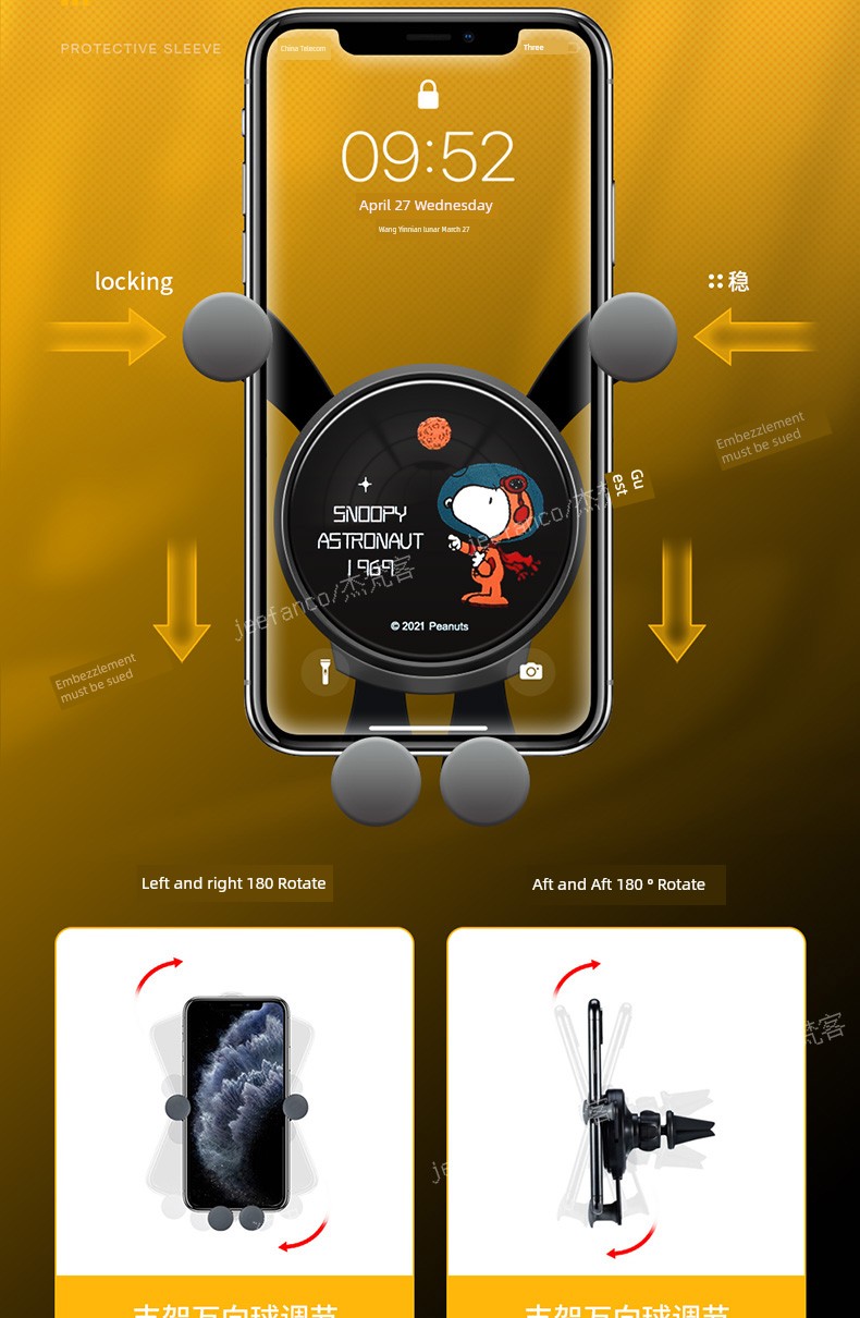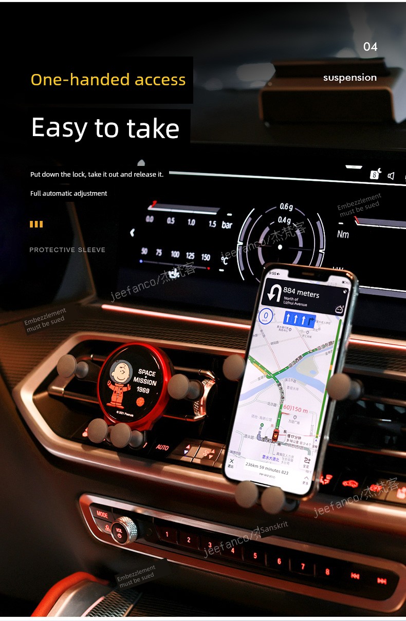 Snoopy Automatic Car Phone Holder Creative Cartoon Car Interior Support Frame Navigation Holder Car Air Outlet
