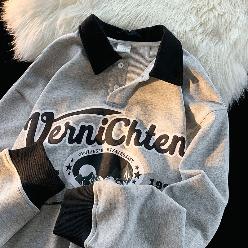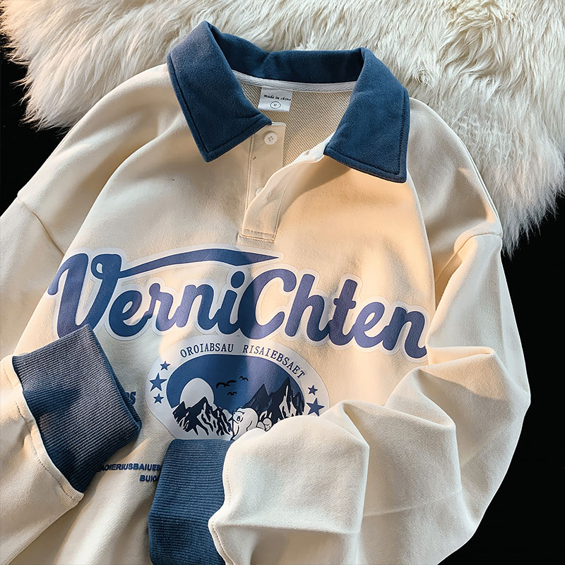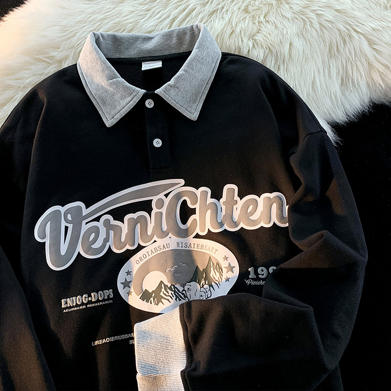 Snow Mountain Multicolor Printing Long-Sleeved Ins Polo Shirt
