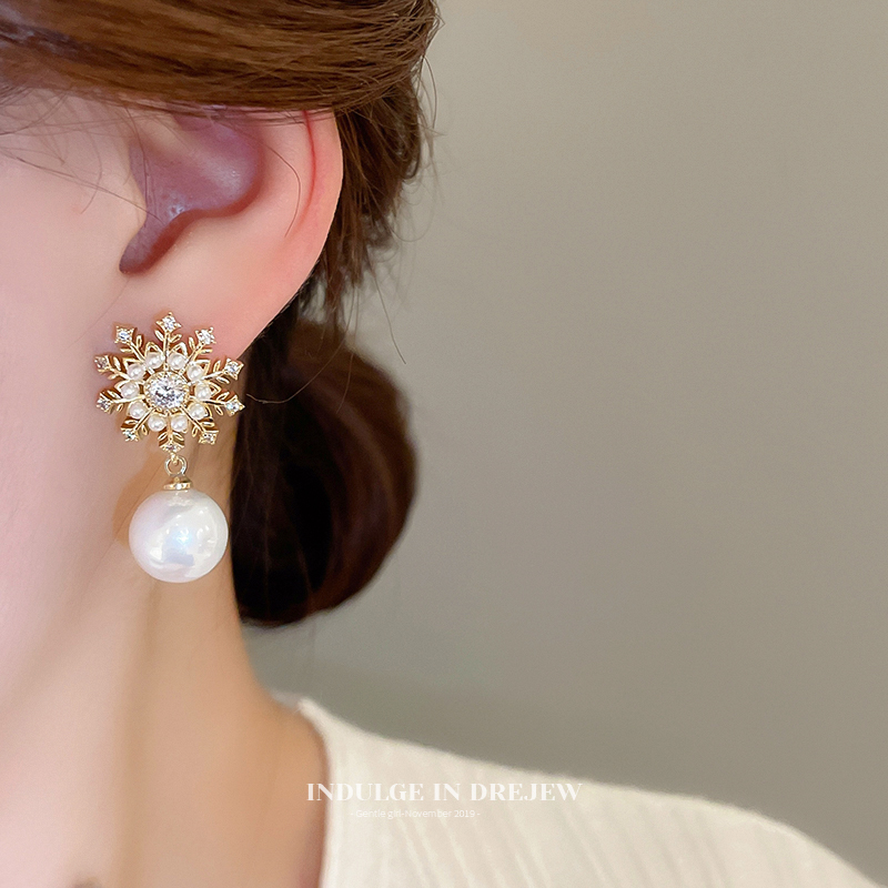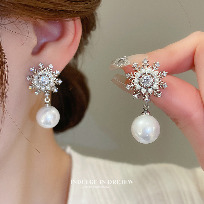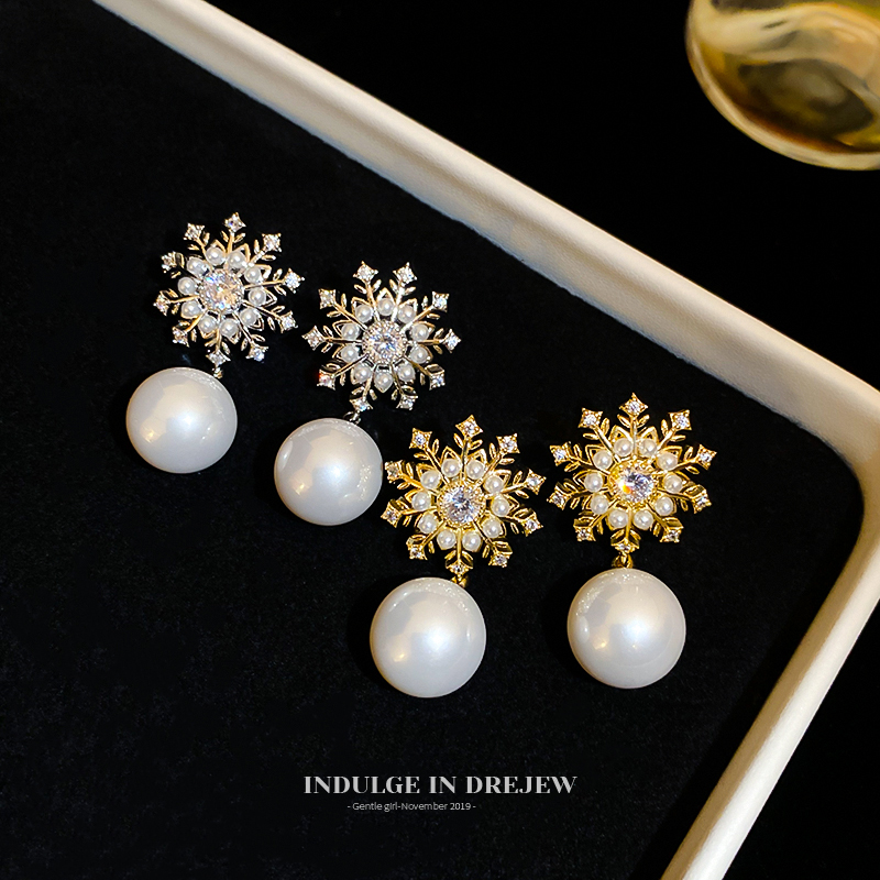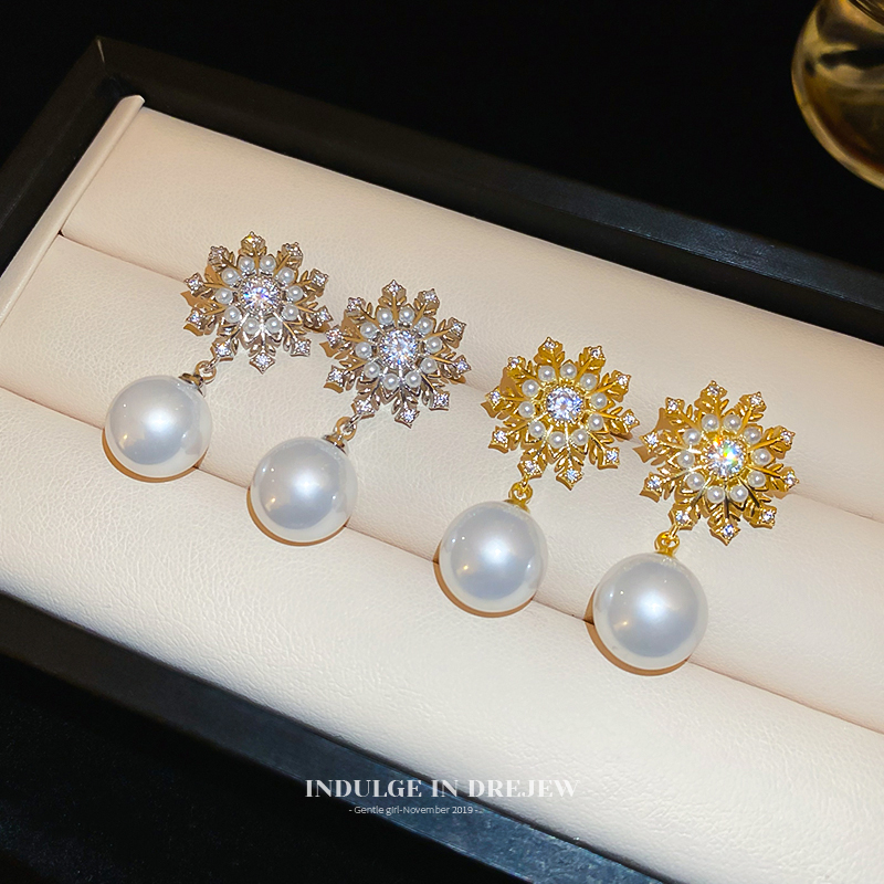 Snowflake Pearl Eardrops Stud Earrings Accessible Luxury Fancy Elegant Generous Earrings 2025 New Arrival Best Selling Exaggerated Earrings Women