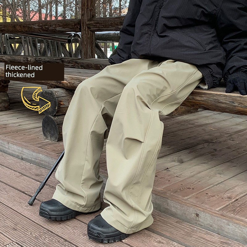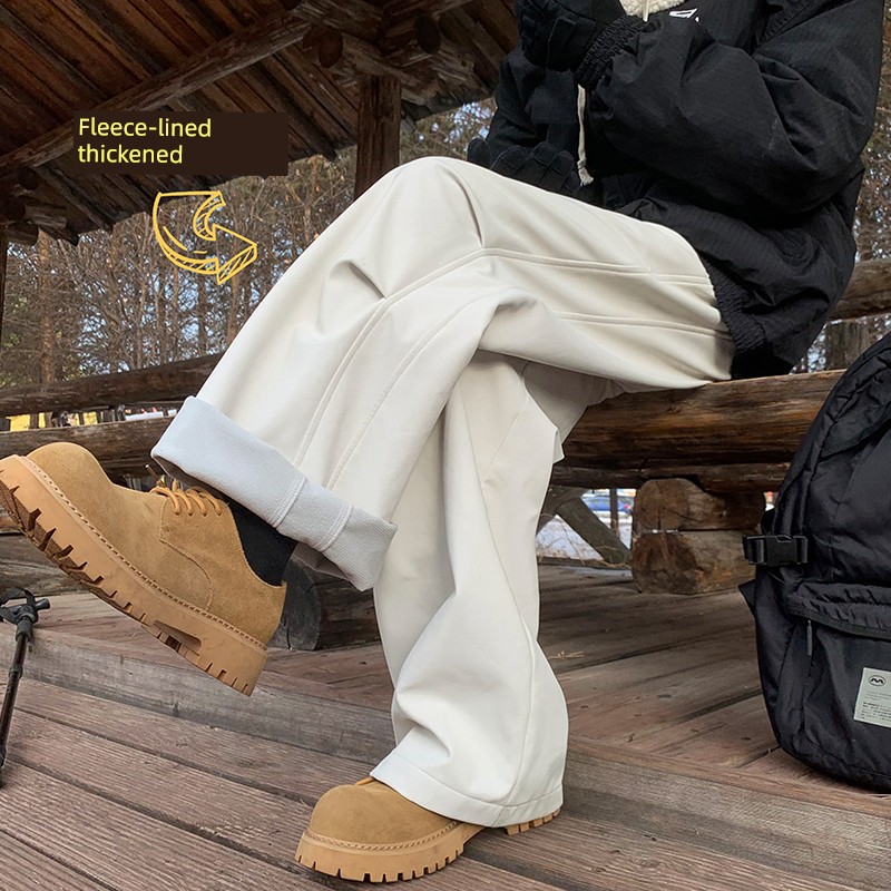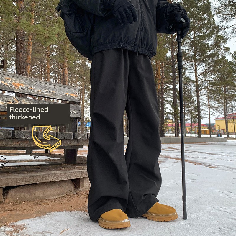 Solid Color BASIC Ruched Workwear Casual Pants Female 2025 Winter Loose Outdoor Casual Fleece-lined Thickened Long Pants