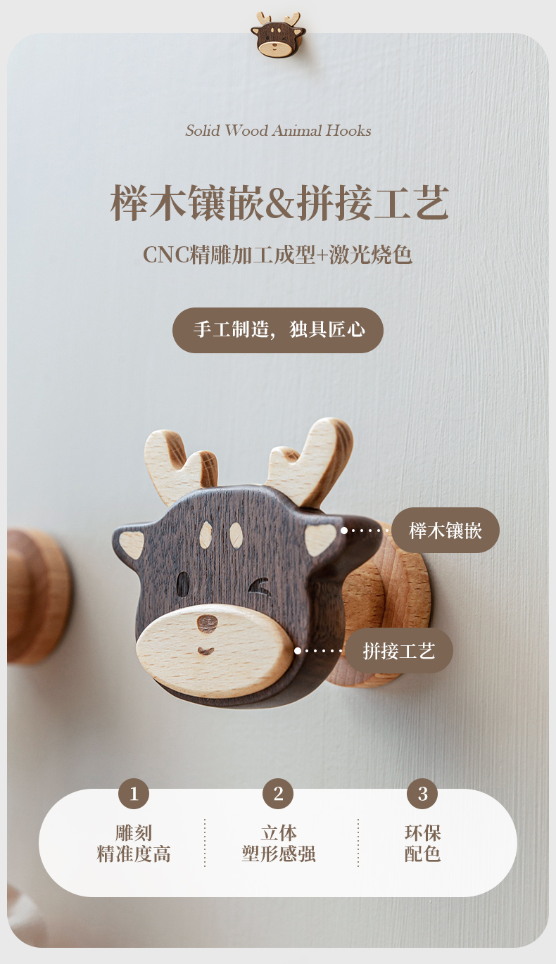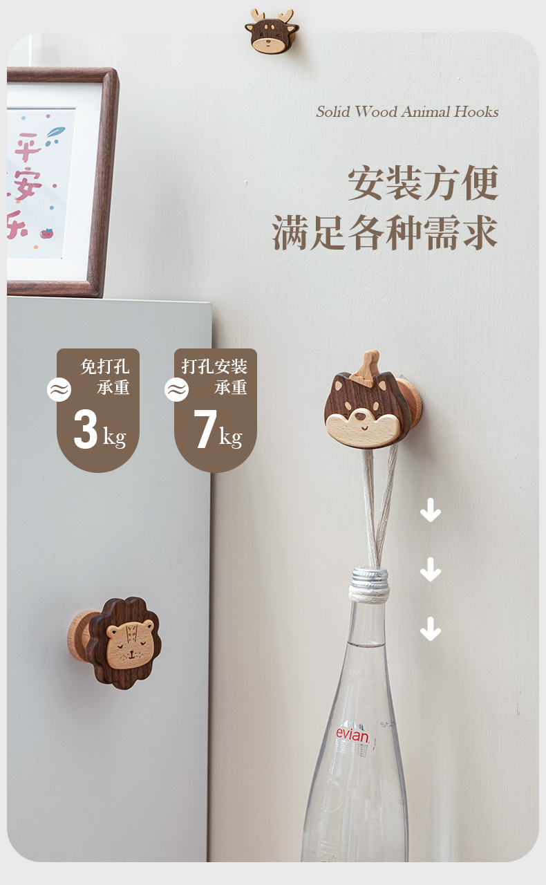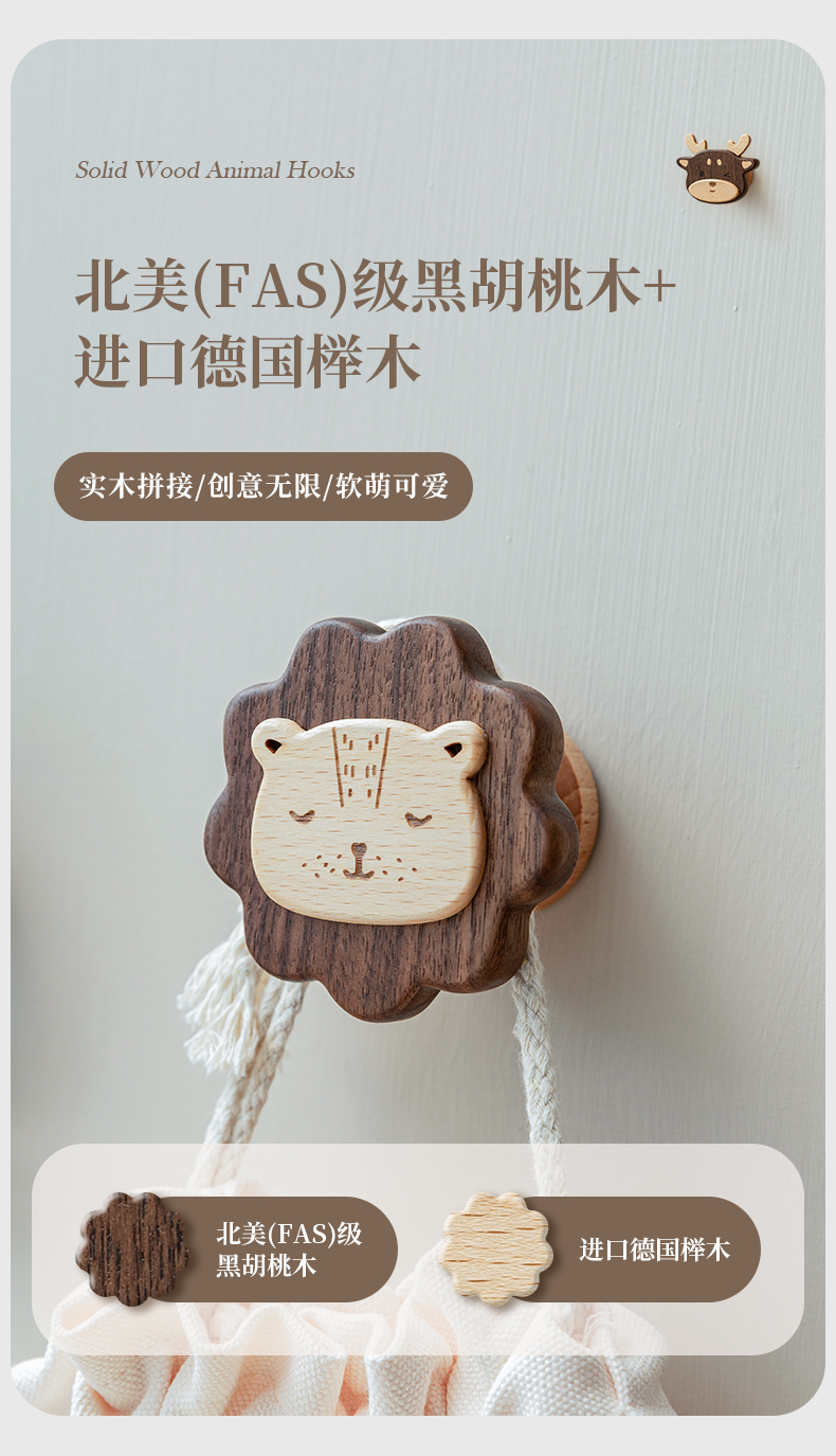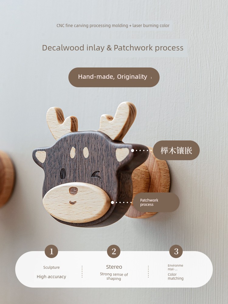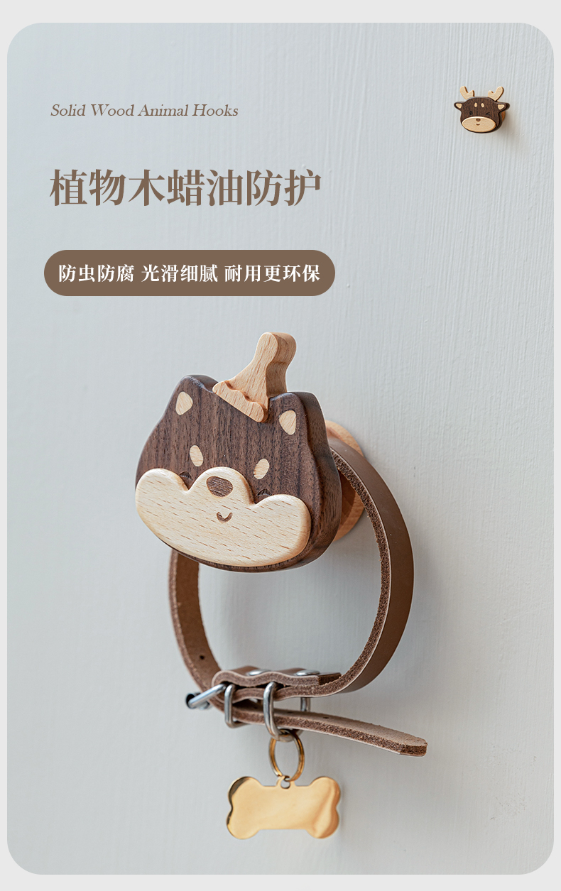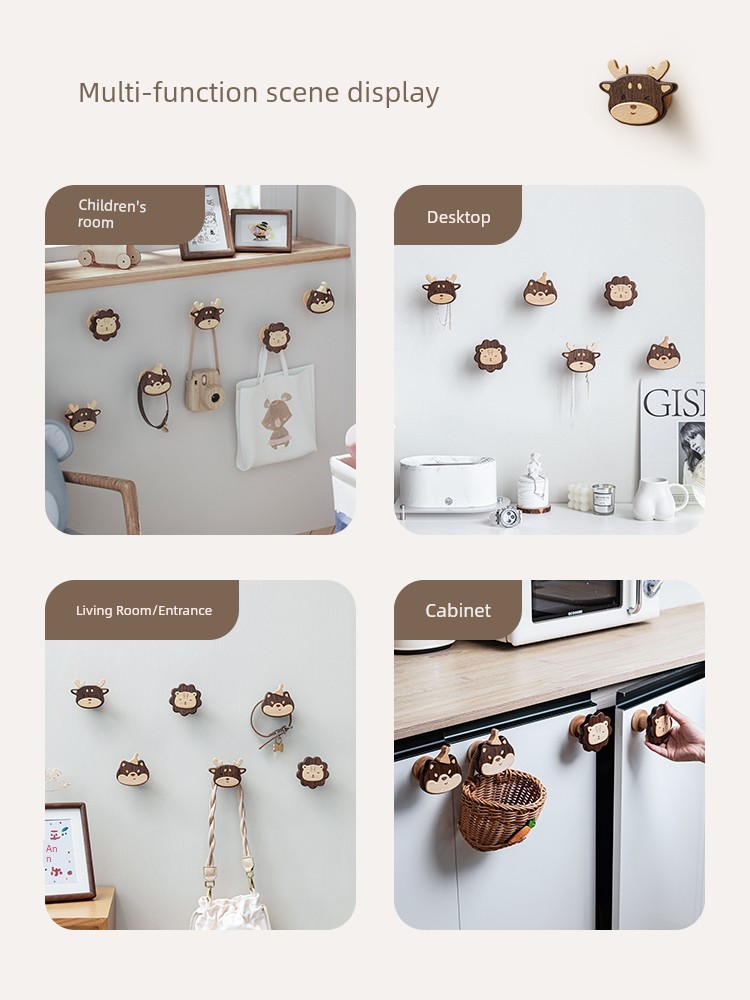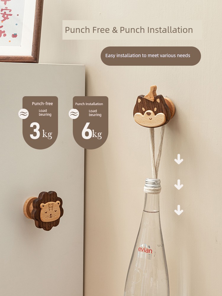 Solid Wood Coat Hook Doorway Hallway Hanger behind the Door, on the Wall Wall Hanging Creative Coat and Hat Hook Punch-Free Hook