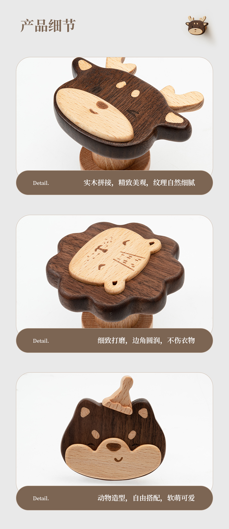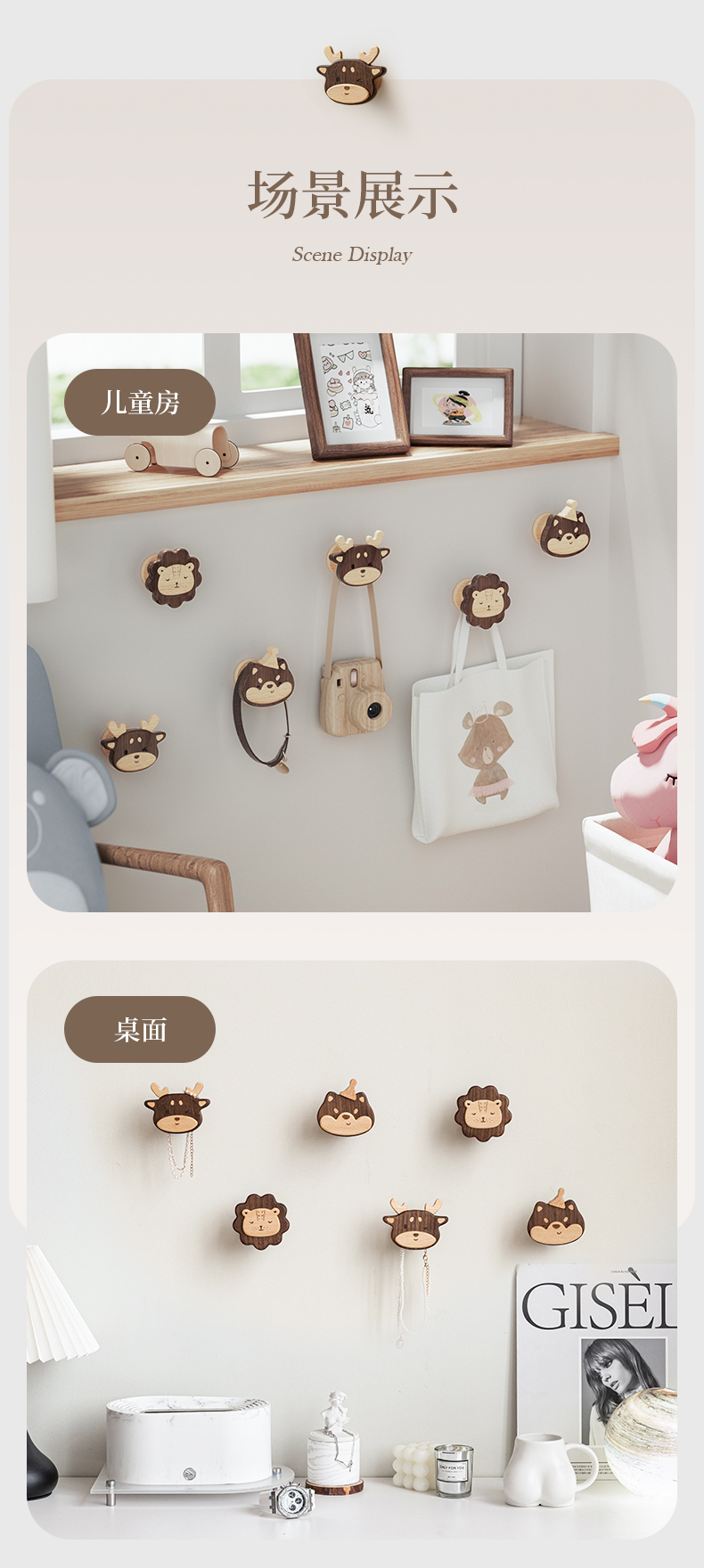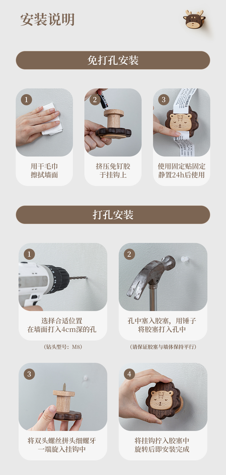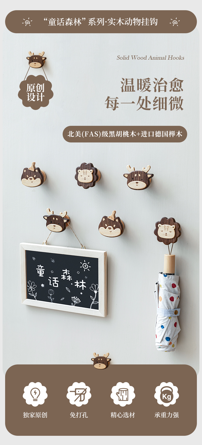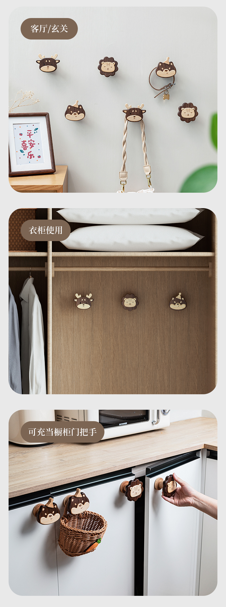 Solid Wood Coat Hook Doorway Hallway Hanger behind the Door, on the Wall Wall Hanging Creative Coat and Hat Hook Punch-Free Hook