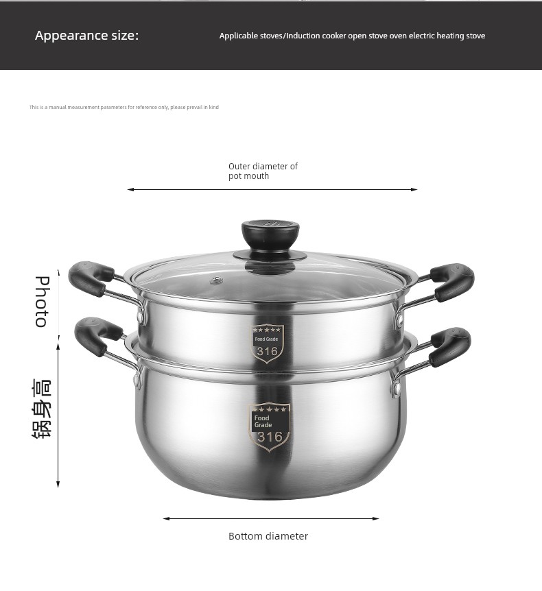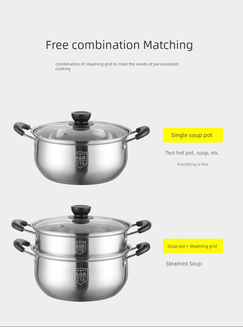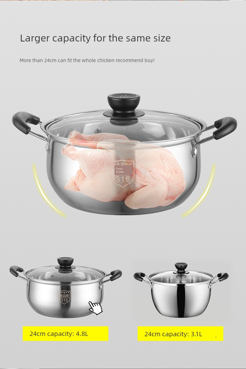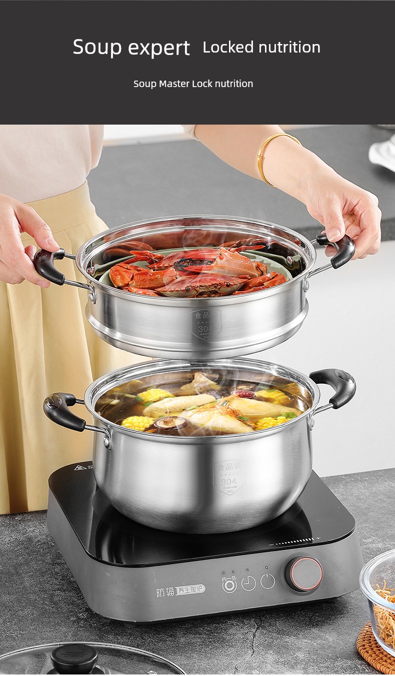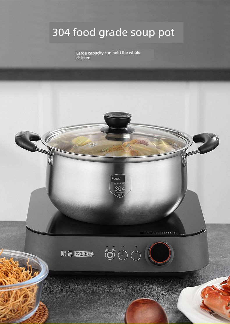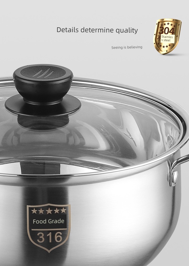 Soup Pot 304 Stainless Steel Thickened Binaural For Home Cooking Instant Noodles Small Pot Steamer Special Gas Induction Cooker Stew-Pan