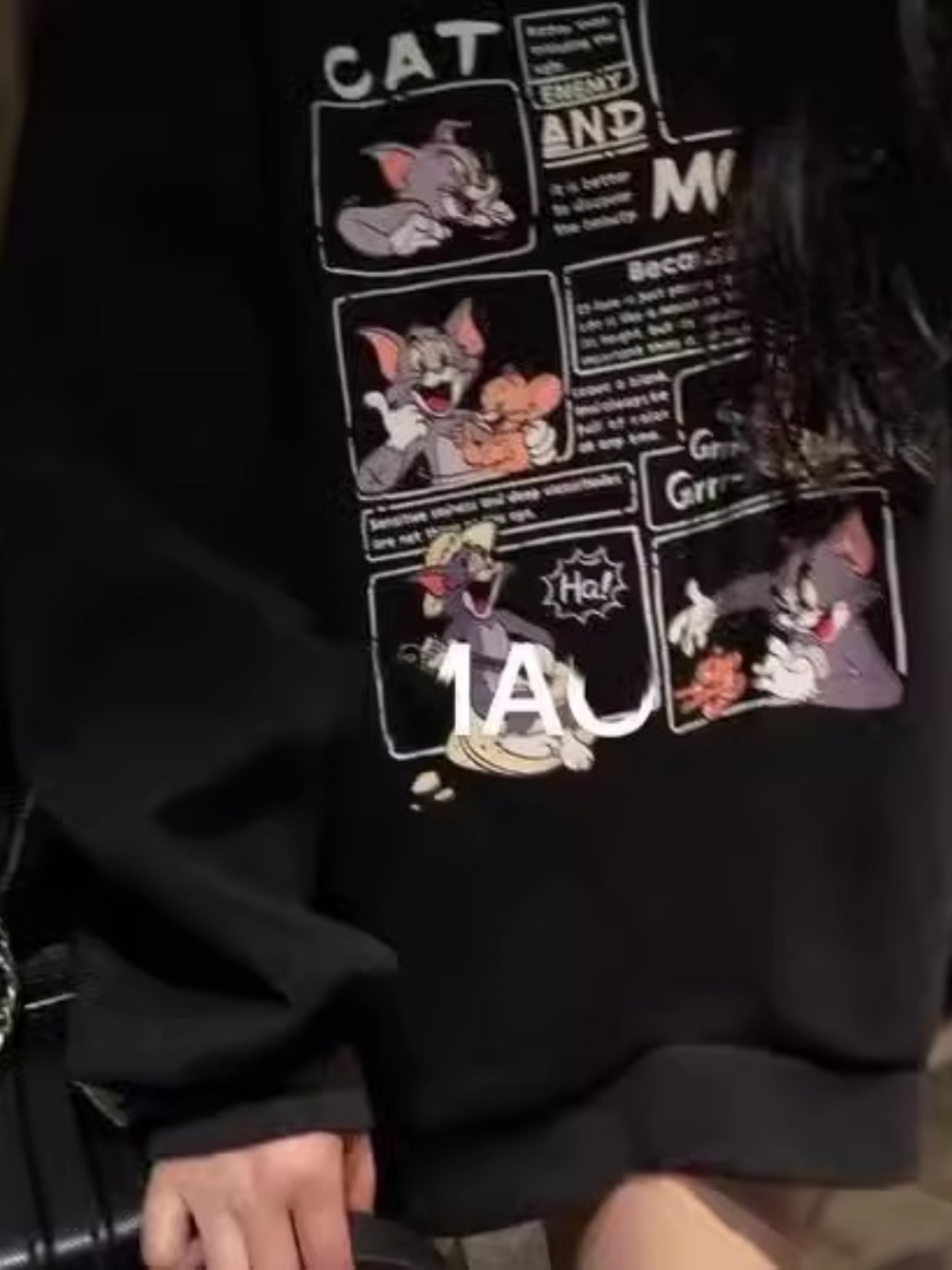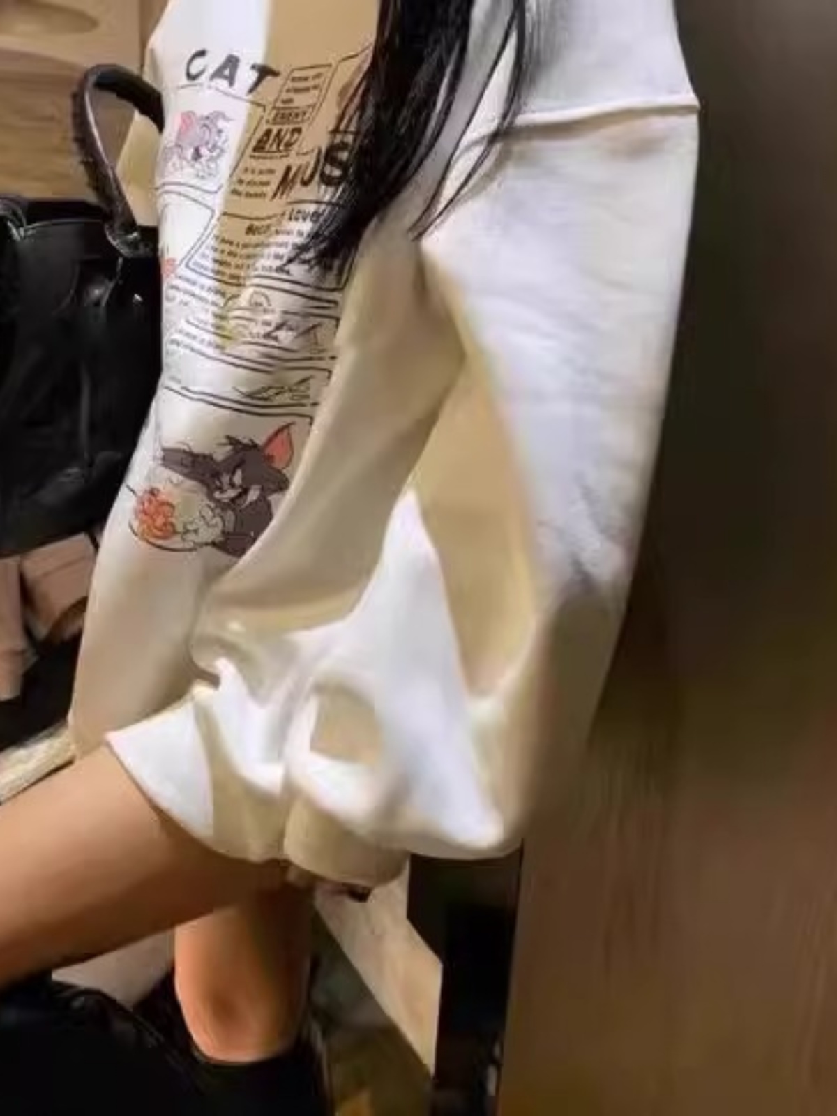 South Korea Dongdaemun 2025 Fall New Arrival Younger Fashion Cartoon Pattern Loose-Fitting Casual round-Neck Long Sleeves Sweatshirt Female