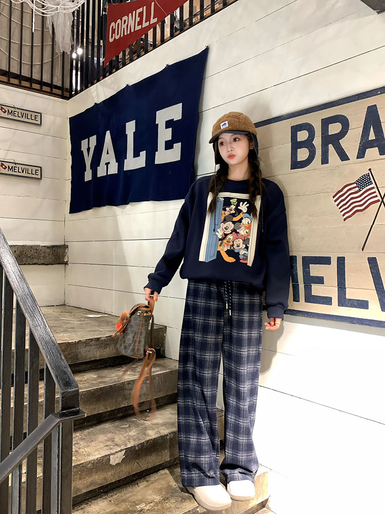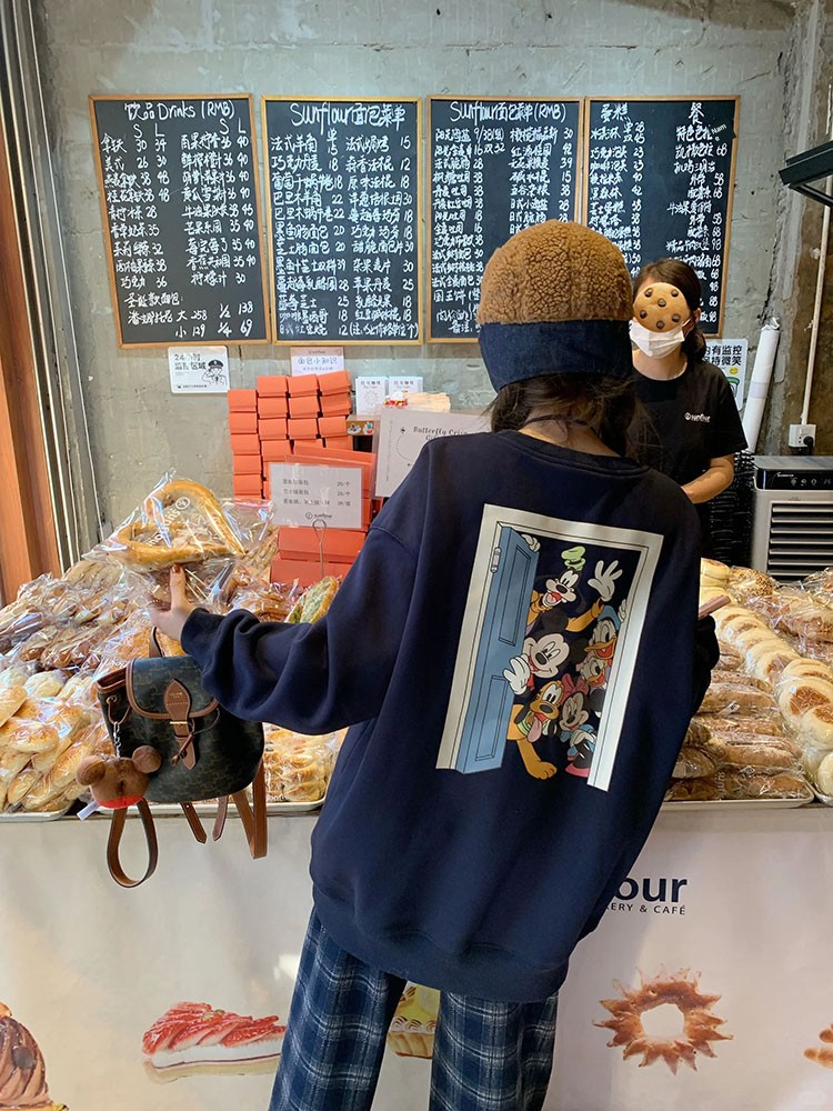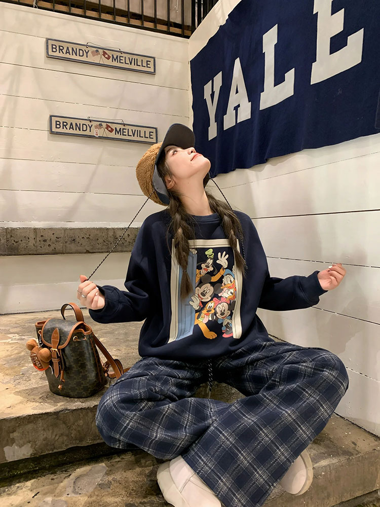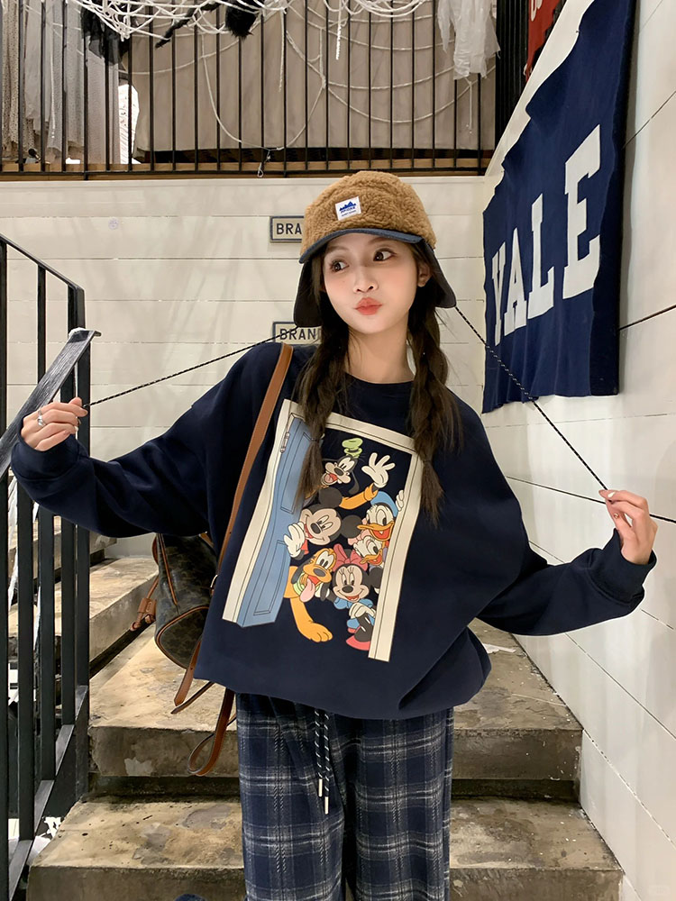 South Korea Dongdaemun Early Autumn Sweatshirt M Mouse Free Door Print round Neck Long Sleeves Leisure Anti-Aging Preppy Style Versatile Tops