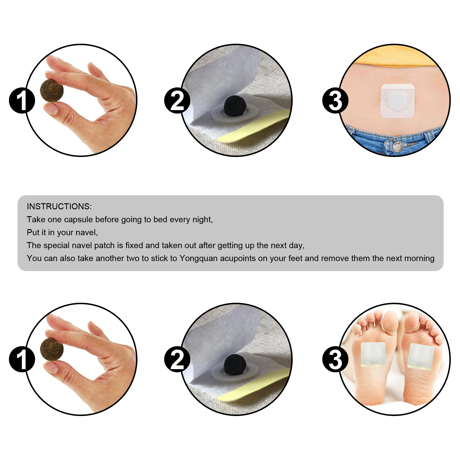 我们的生姜塑身贴含有艾、生姜。它可以促进血液循环,脂肪吸收,优化新陈代谢系统,身体塑身塑形。它的使用方法很简单:每天晚上睡前取用一粒胶囊,把它放在肚脐里,特制的脐带修好后第二天起床就取出来,你也可以再拿两个贴在脚上的永泉穴上,第二天早上取出。并且可以增强肠道活力并加速胎防吸收,让您从内面外拥有美丽的皮肤。