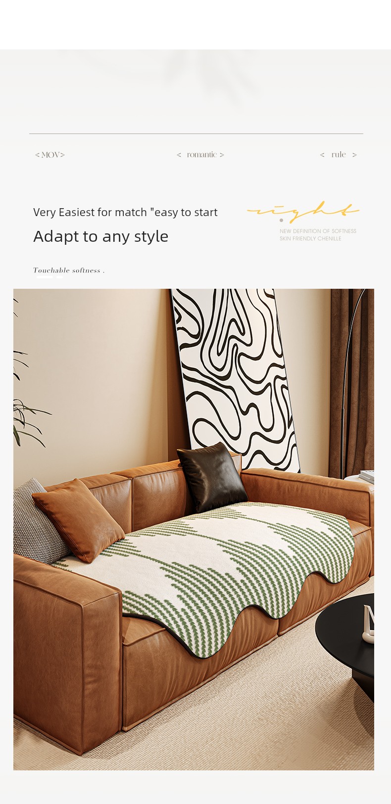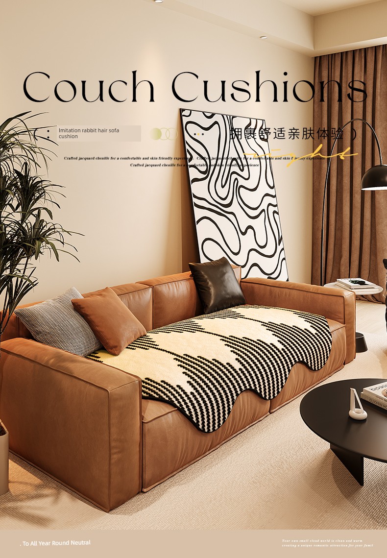 Special-Shaped Straight Row Leather Sofa Cushion Nordic Simple All Year Round Neutral Asymmetrical Special-Shaped Sofa Cushion Sofa Cover Towel
