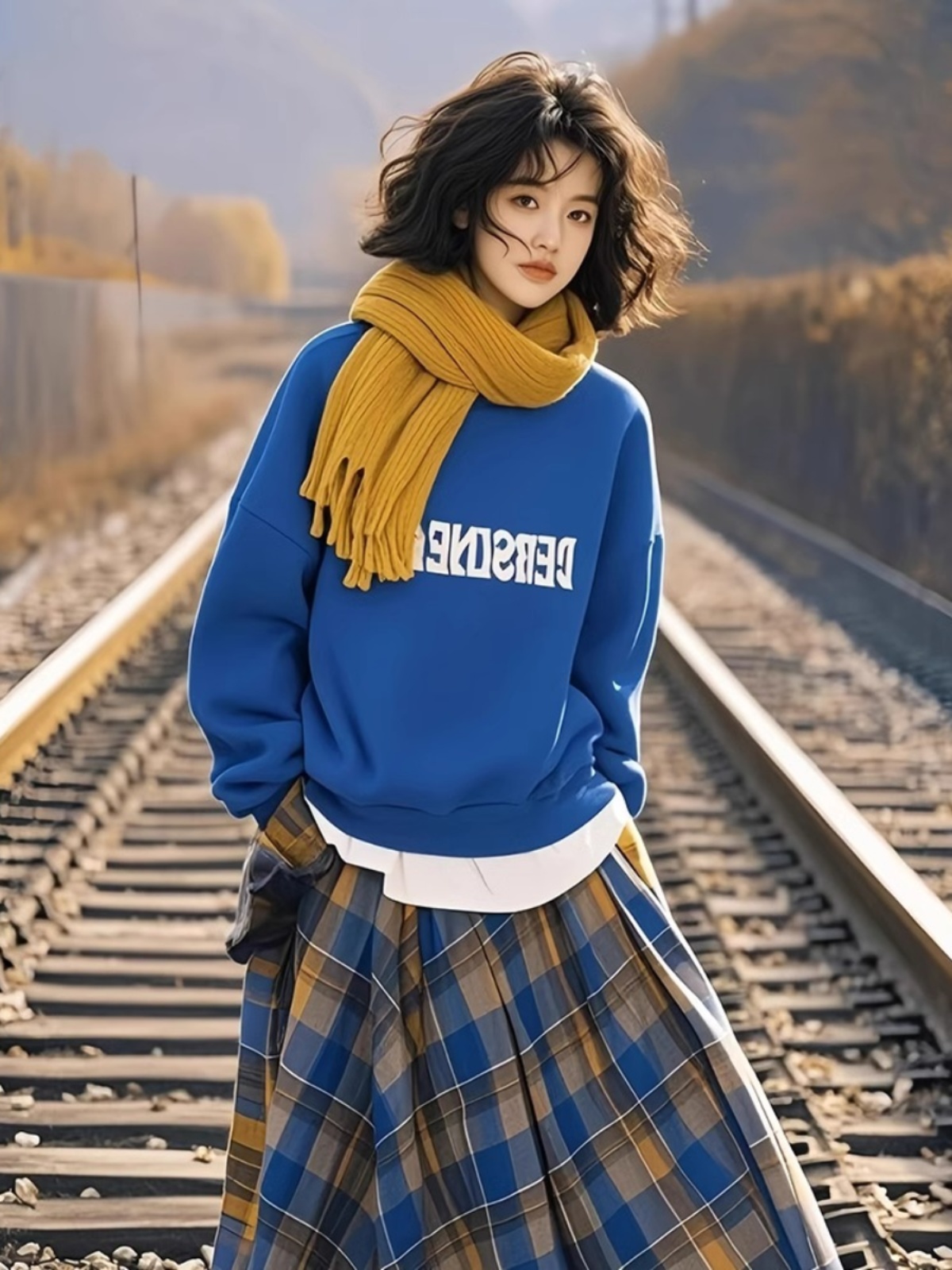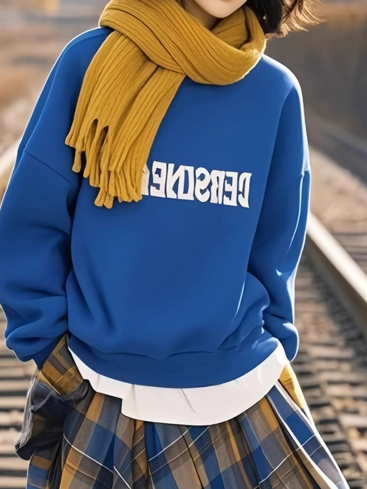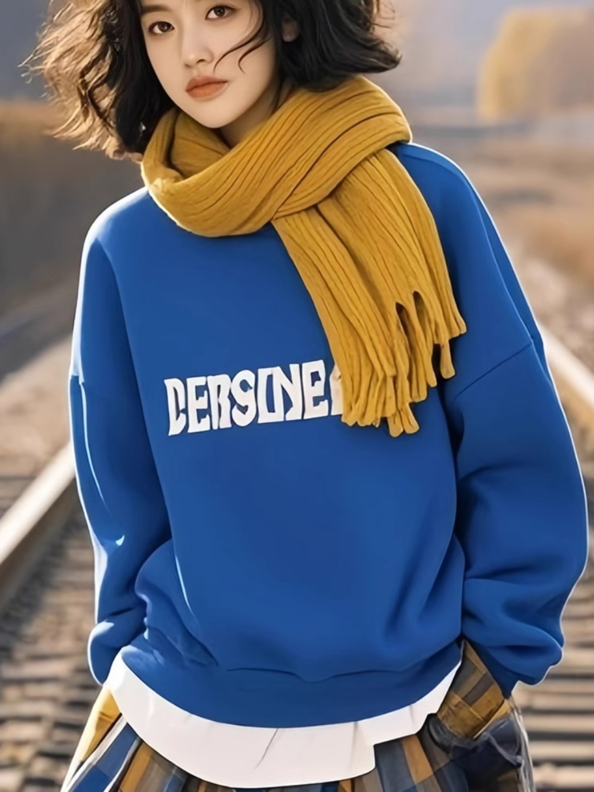 Spring and Autumn All-Match round Neck Klein Blue Sweatshirt Female Junior High School Student New Arrival 2025 Best Selling Fashionable Stylish Top without Hood
