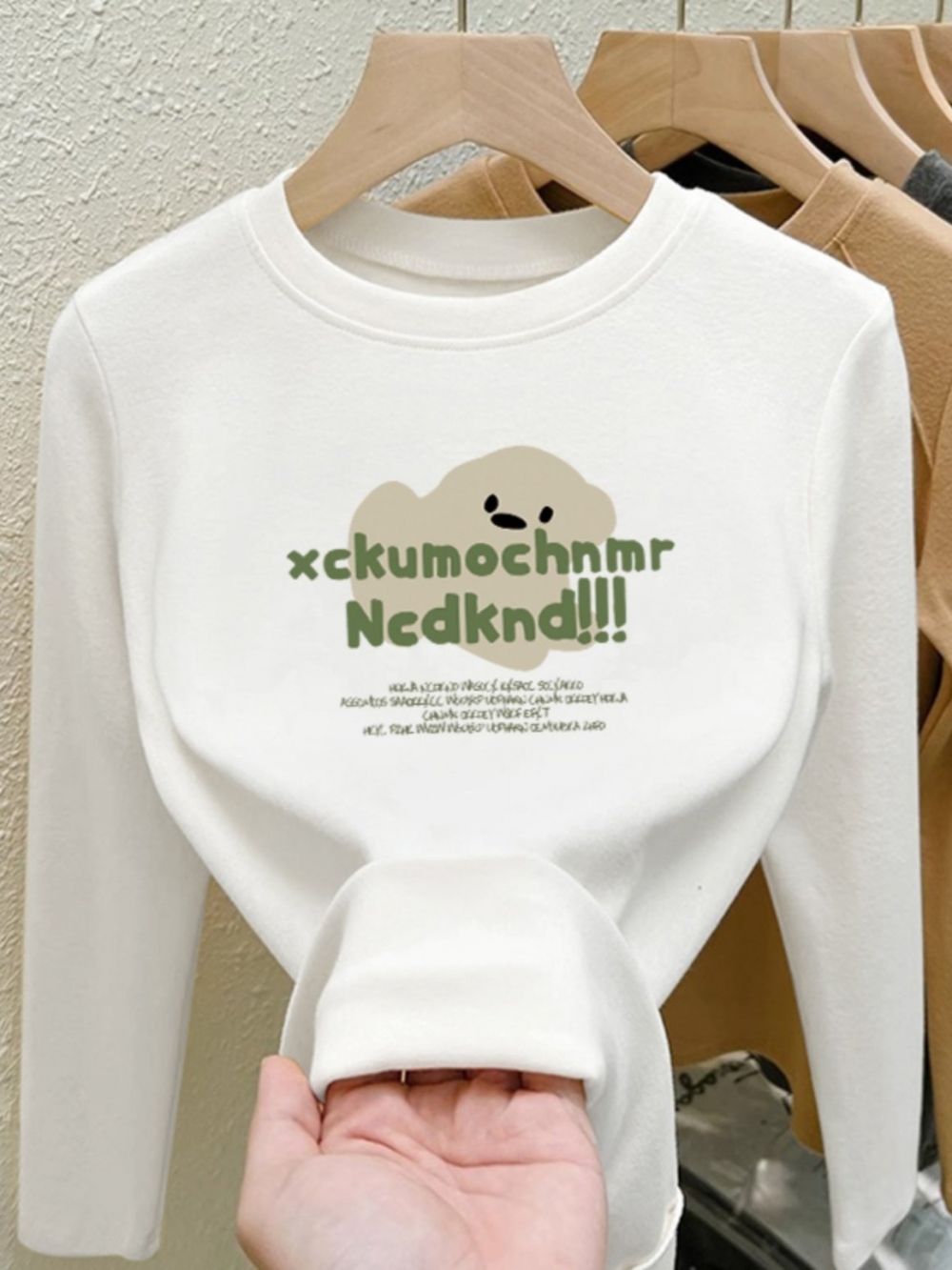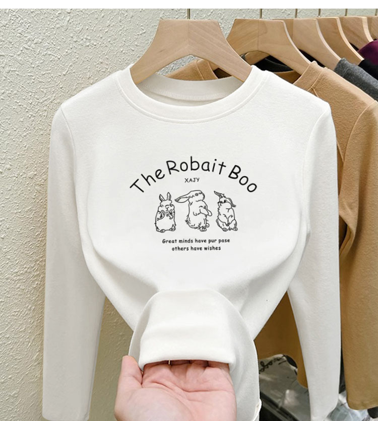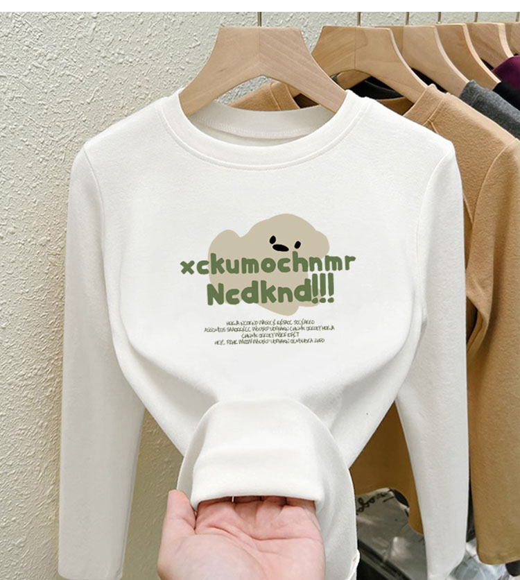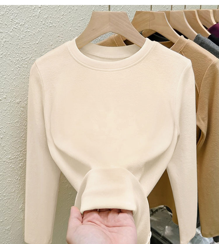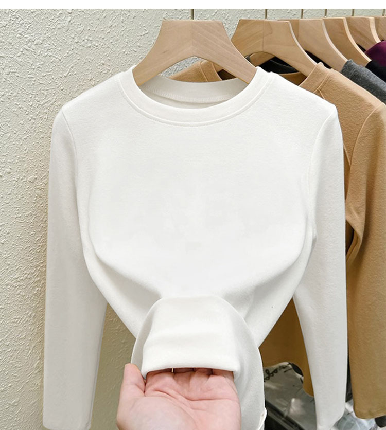 Spring and Autumn Pure Cotton Shoulder Bottoming Shirt Female Suit Inner Wear Fancy Slimming round Neck Long Sleeves T-shirt Women's Short Tops