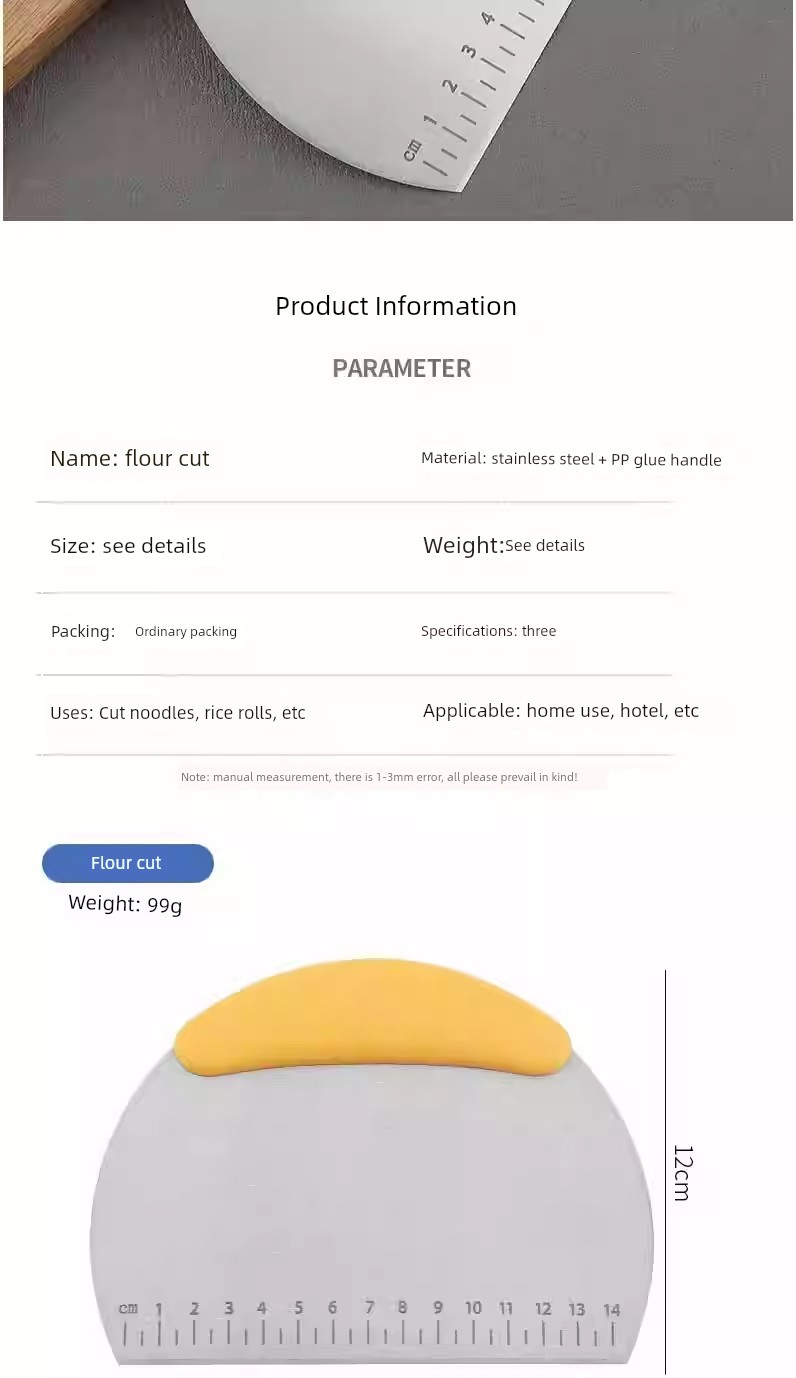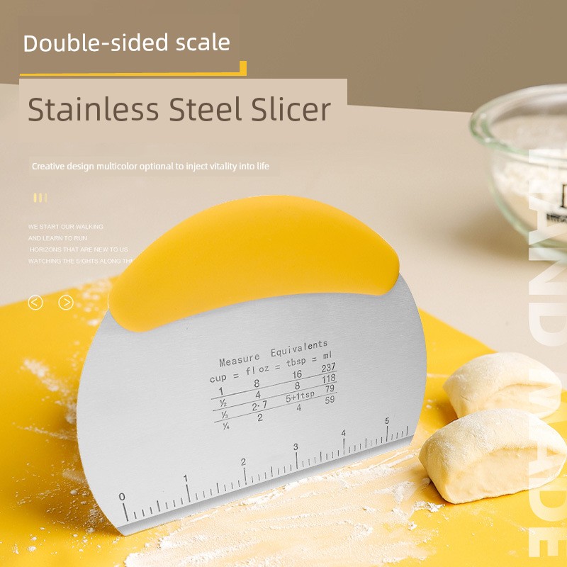 Stainless Steel Dough Scraper Scraper Non-Stick Scraper with Scale Flour Home Cake Steamed Bread Hand-Made Noodles Baking Tool