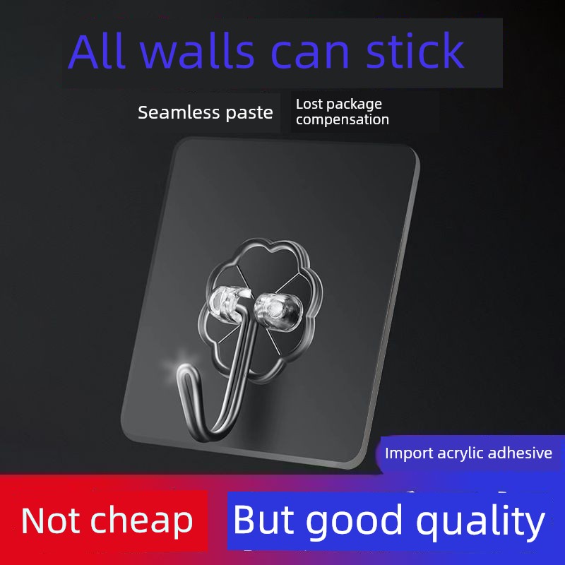 Stainless Steel Hook Strong Adhesive Wall Wall Hanging Load-Bearing Kitchen Hook Seamless No Punching behind the Door Bacon Hook