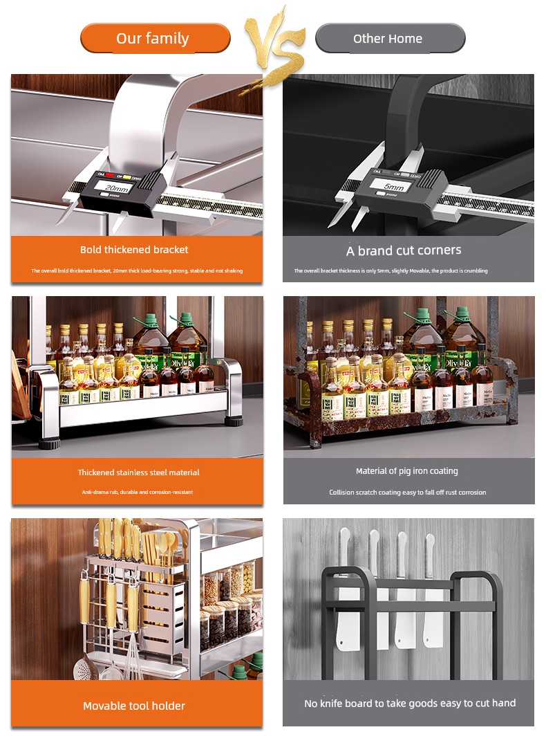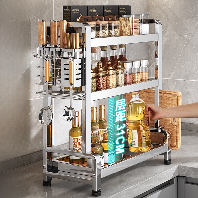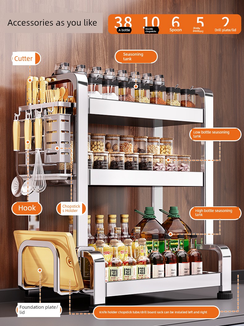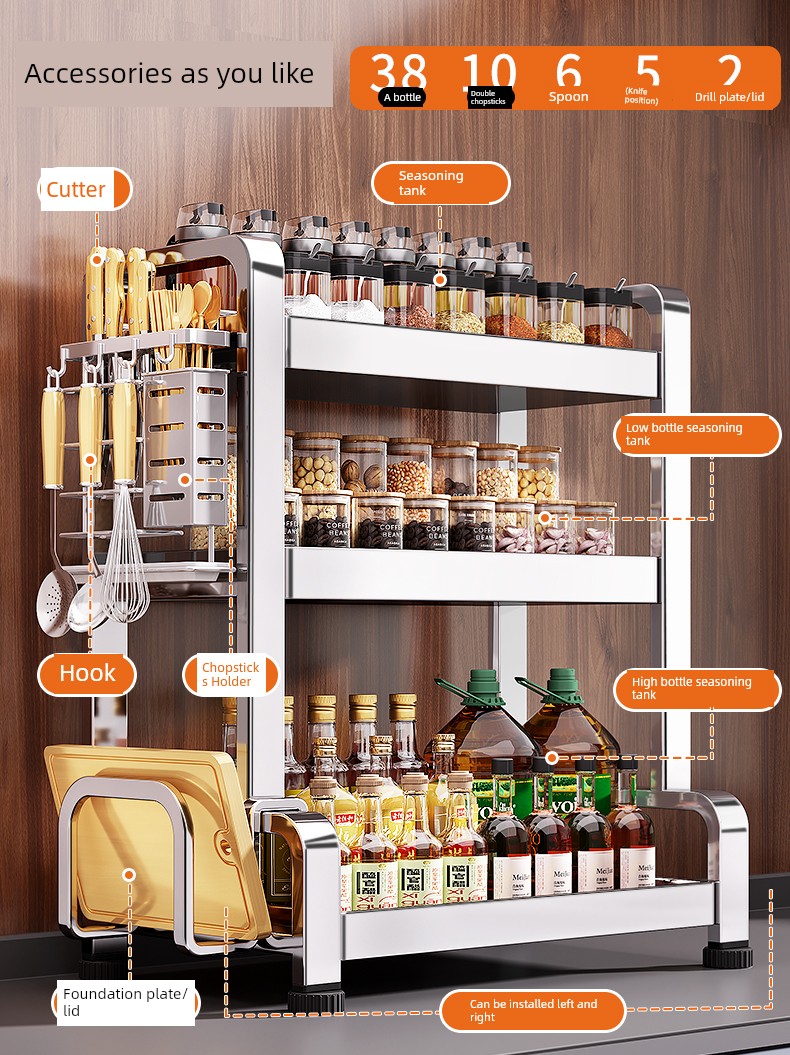 Stainless Steel Kitchen Seasoning Product Storage Rack Multifunctional Chopsticks Knife Rack Salt Seasoning Jar Storage Box Table Seasoning Rack