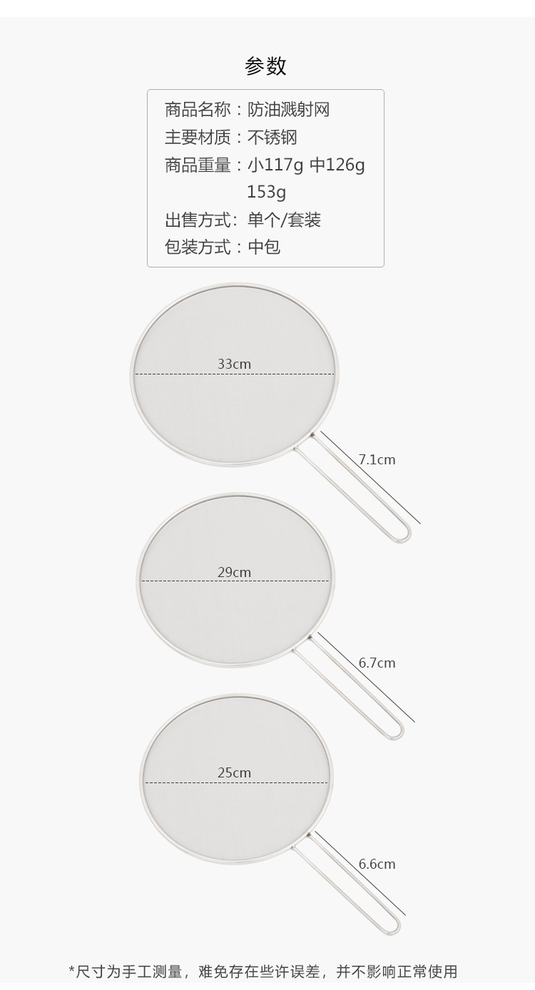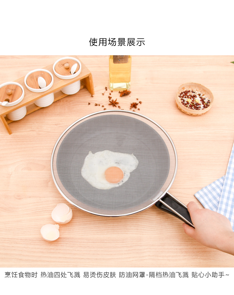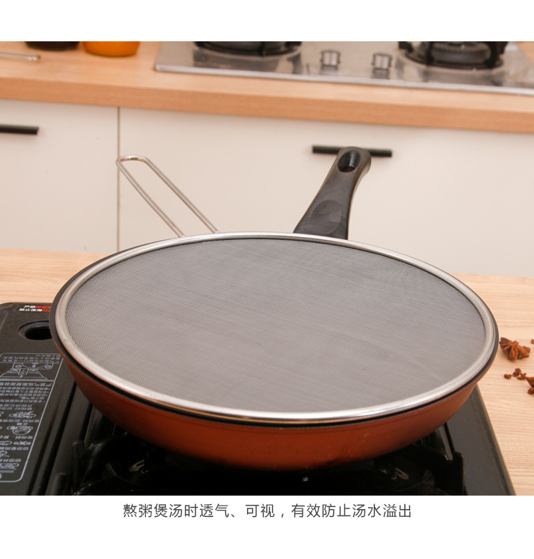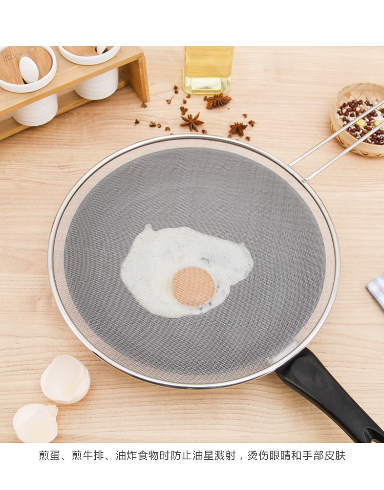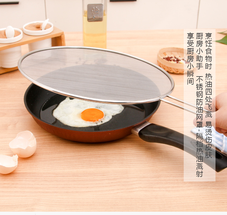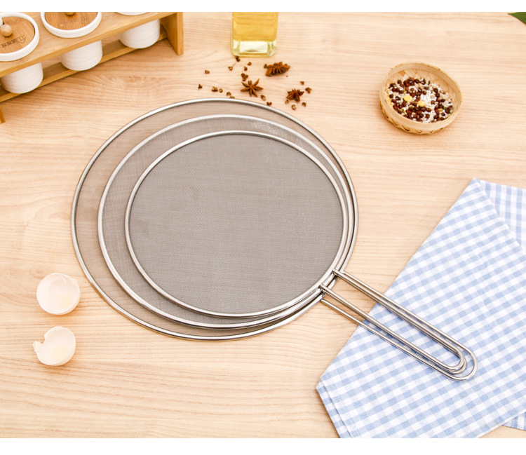 Stainless Steel Oil Splatter Screen with Handle Anti-Exposure Net Fried Fish Cooking Splash-Proof Sink Tidy Oil Net Pizza Tray Oil Strainer Pot