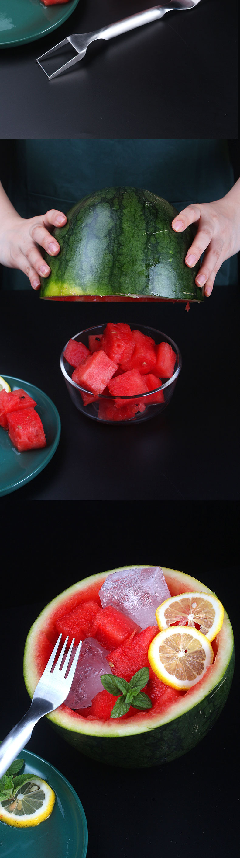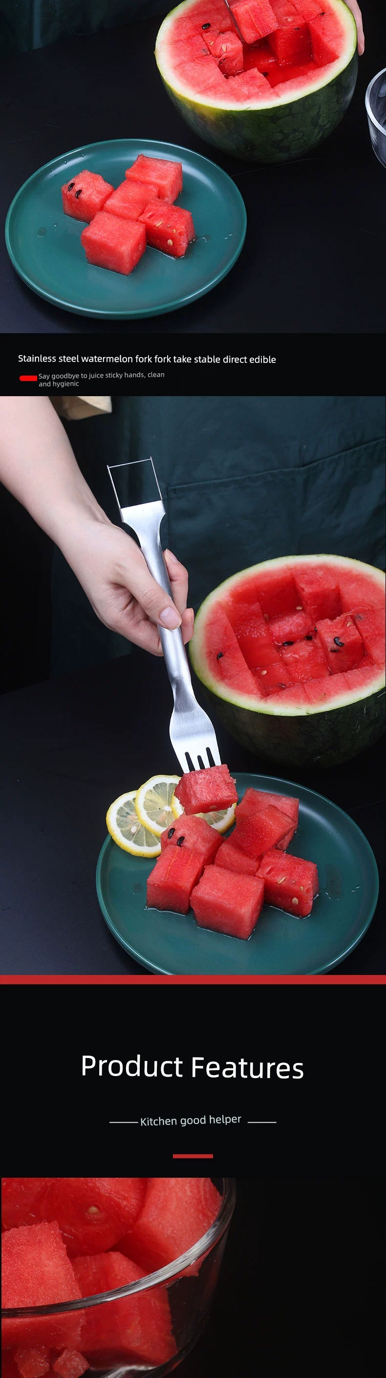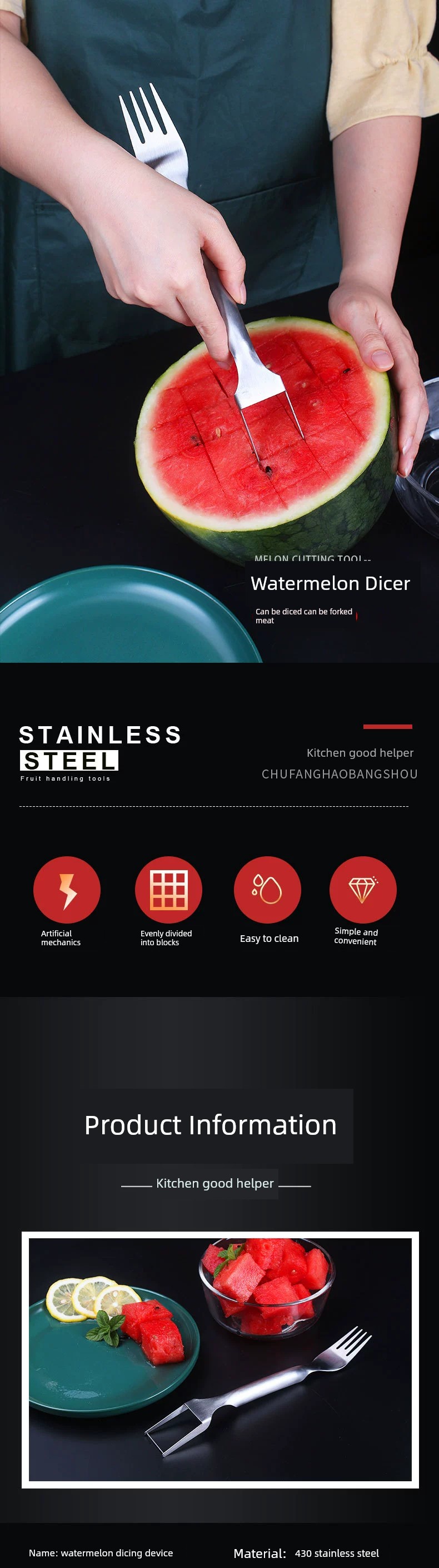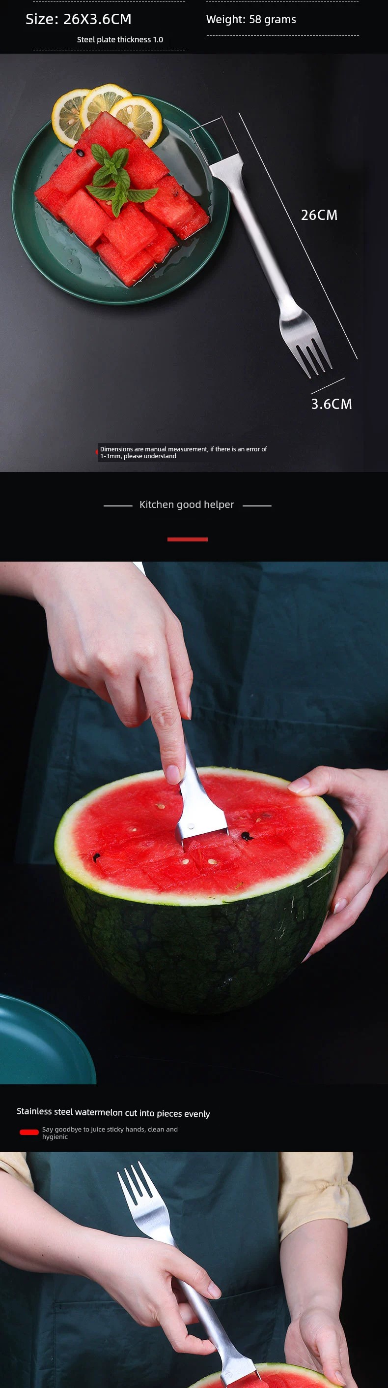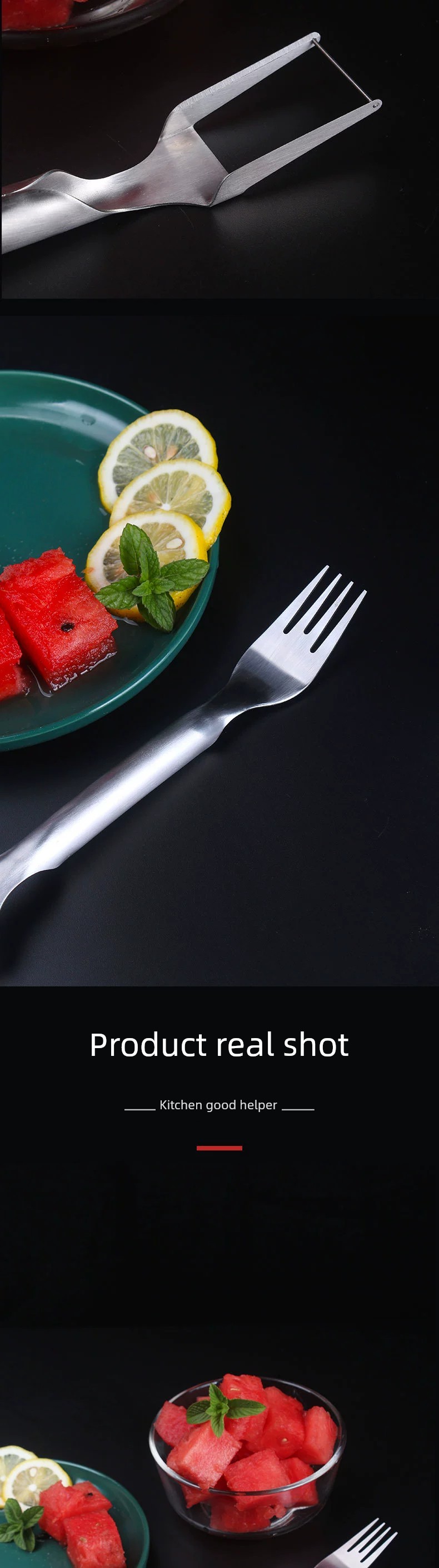 Stainless Steel Watermelon Cutting Block Handy Gadget Cutting Block Dicing Splitter Eating Watermelon Fork Melon Cutting Spoon Tool Slicer